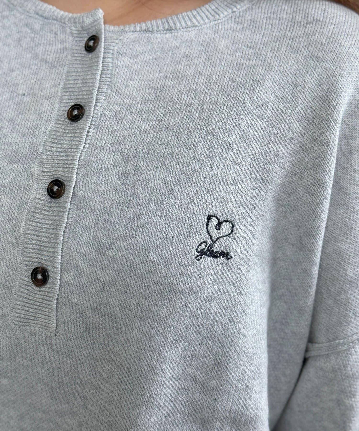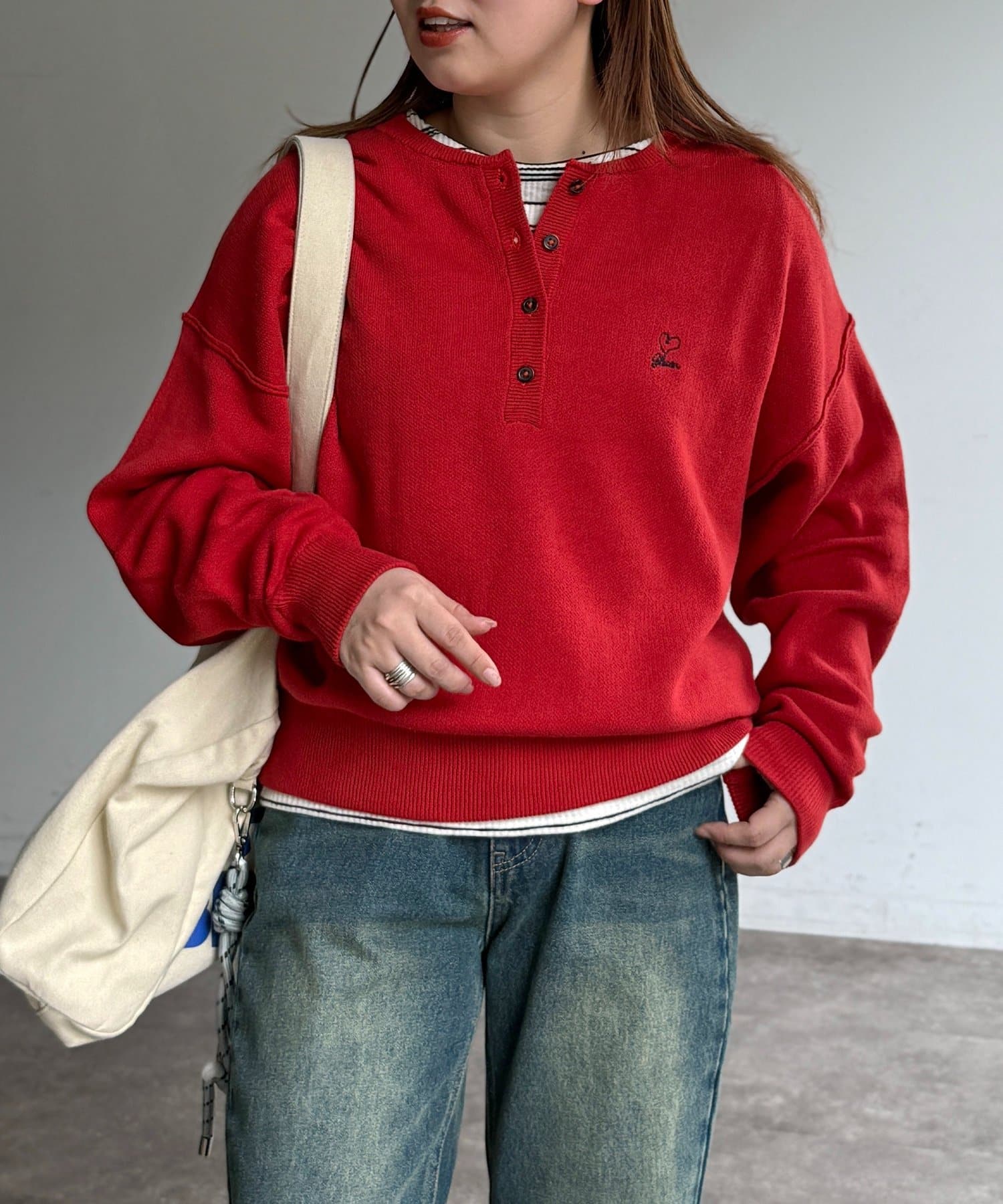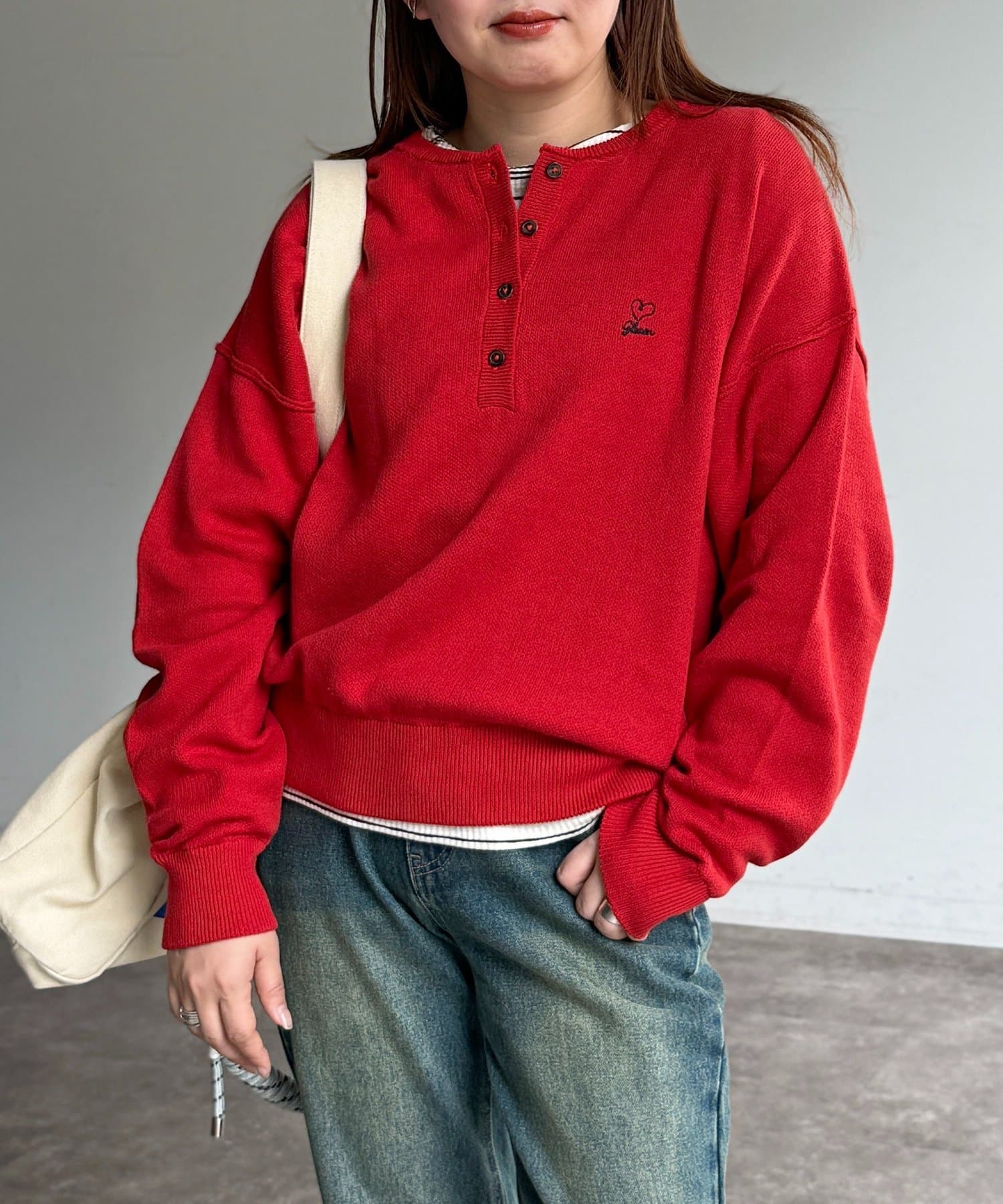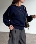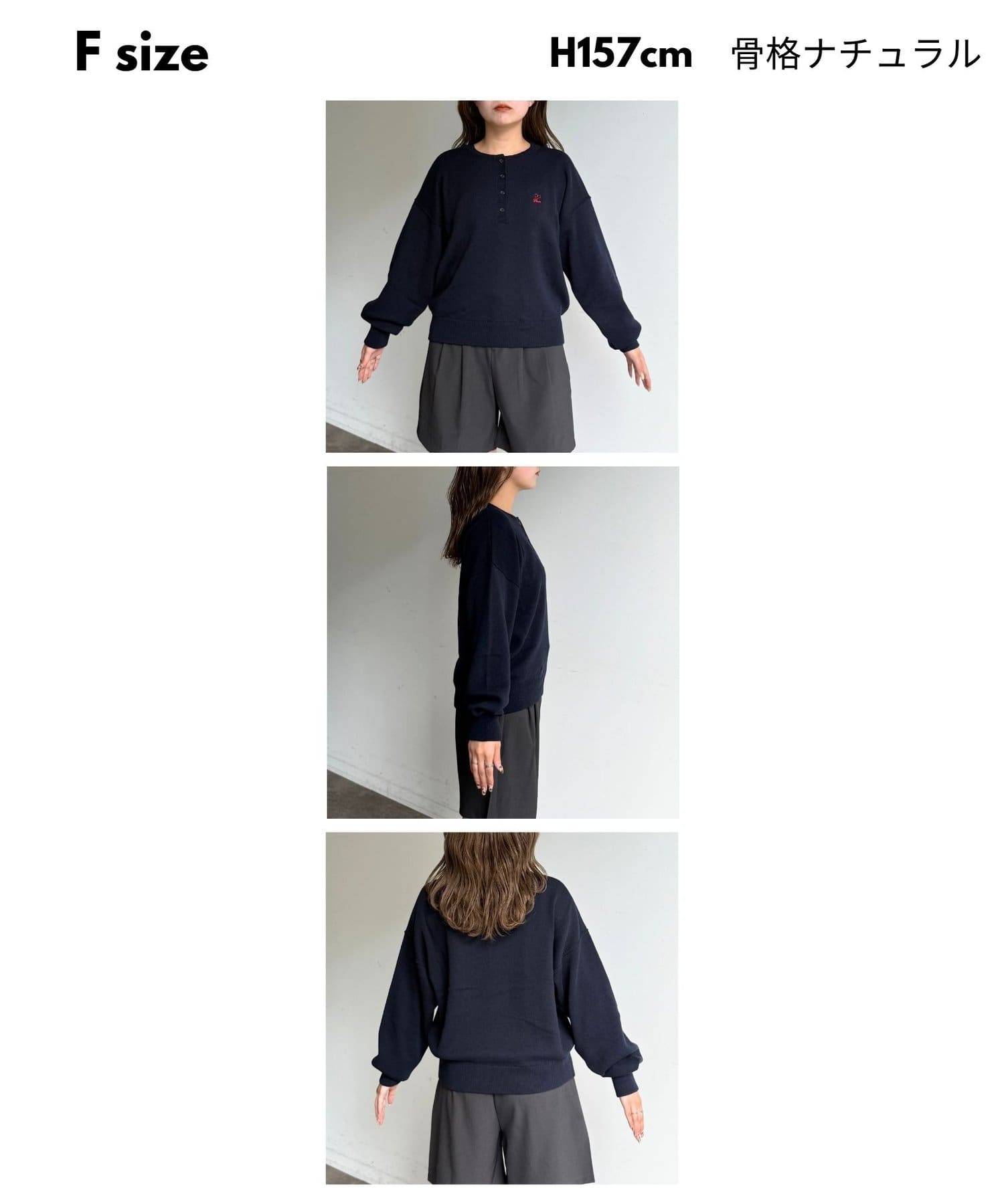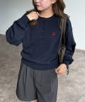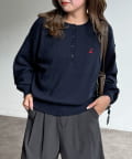 胸元のワンポイント刺繍が、さりげないアクセントをプラス!ヘンリーネックプルオーバー