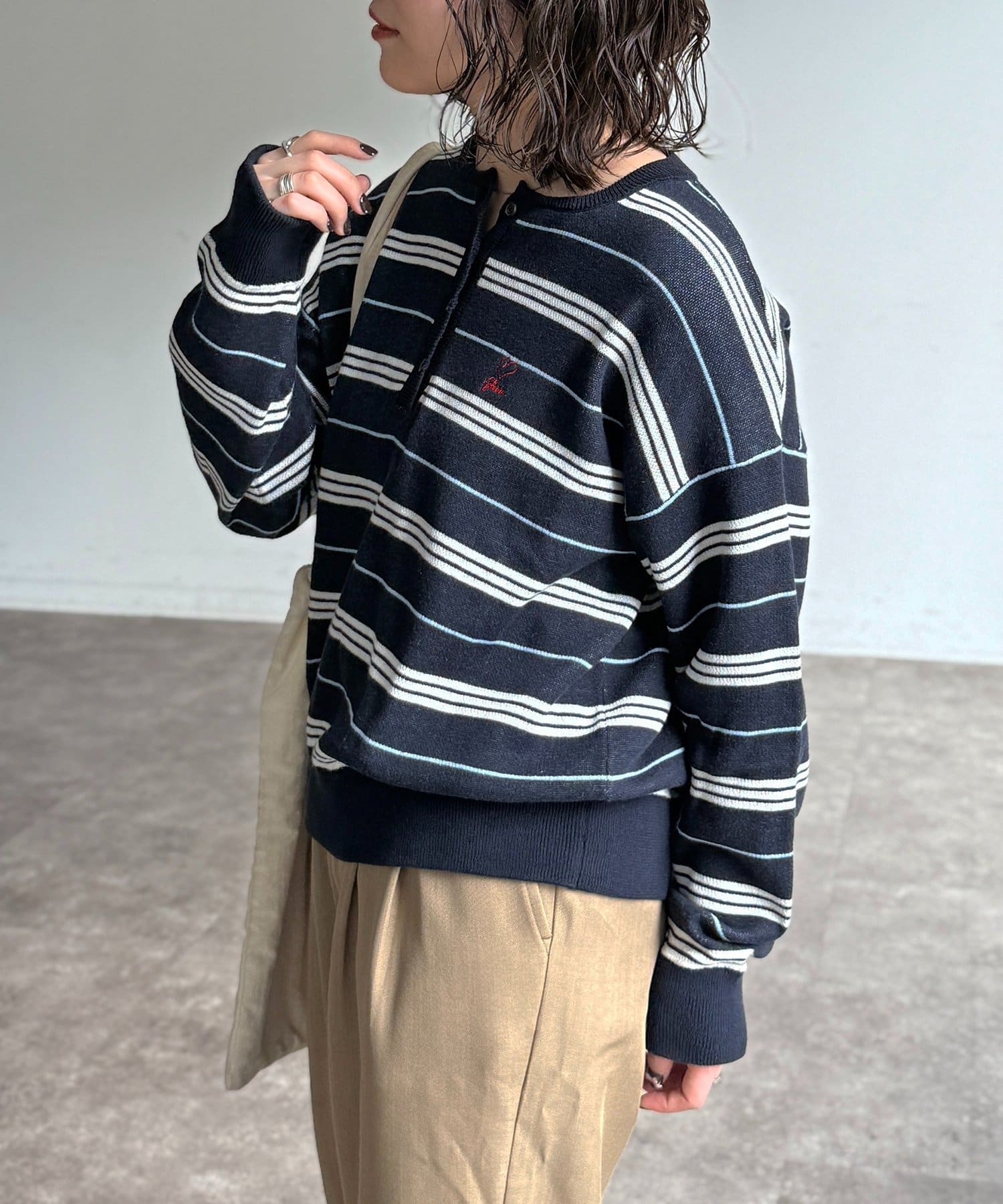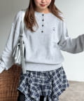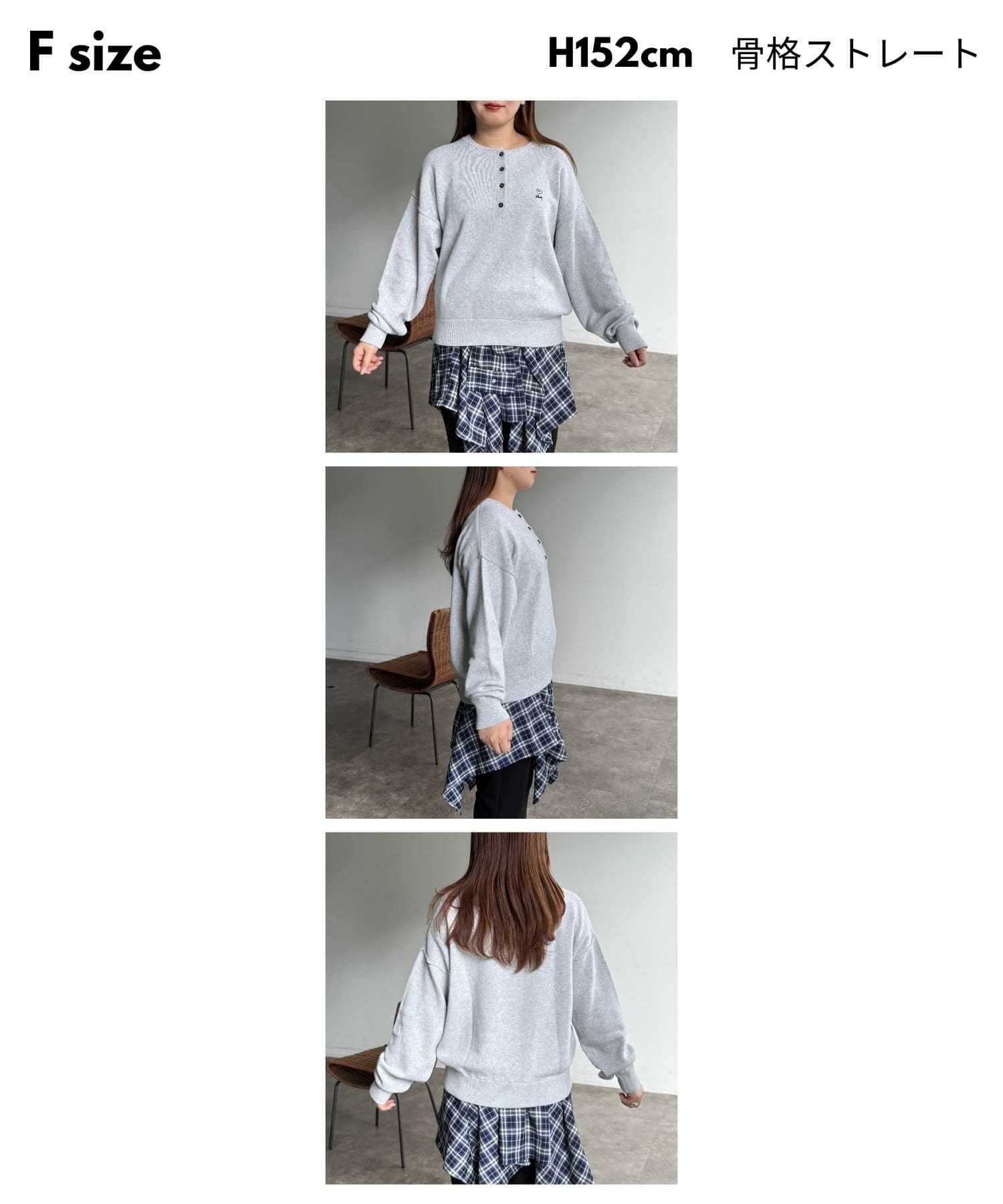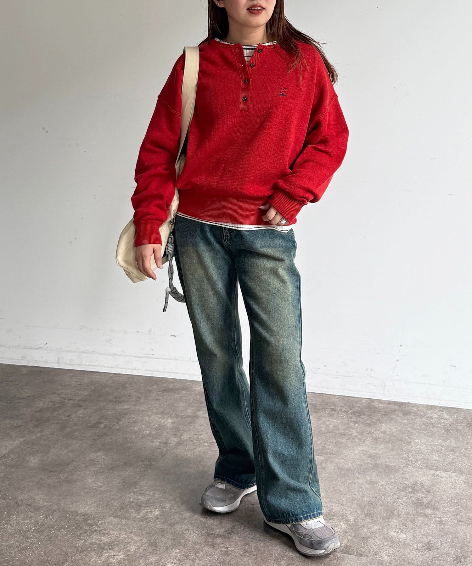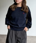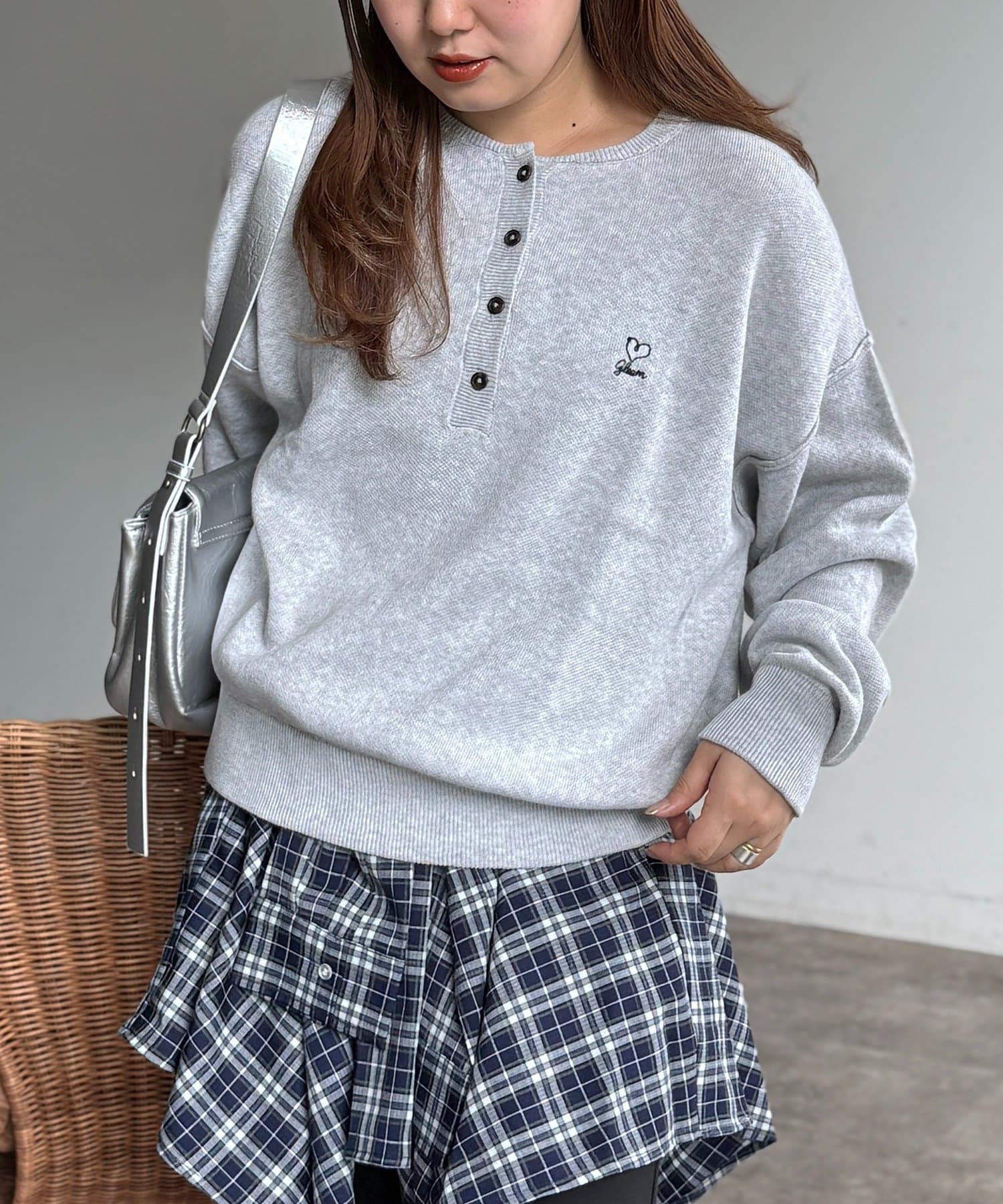 胸元のワンポイント刺繍が、さりげないアクセントをプラス!ヘンリーネックプルオーバー