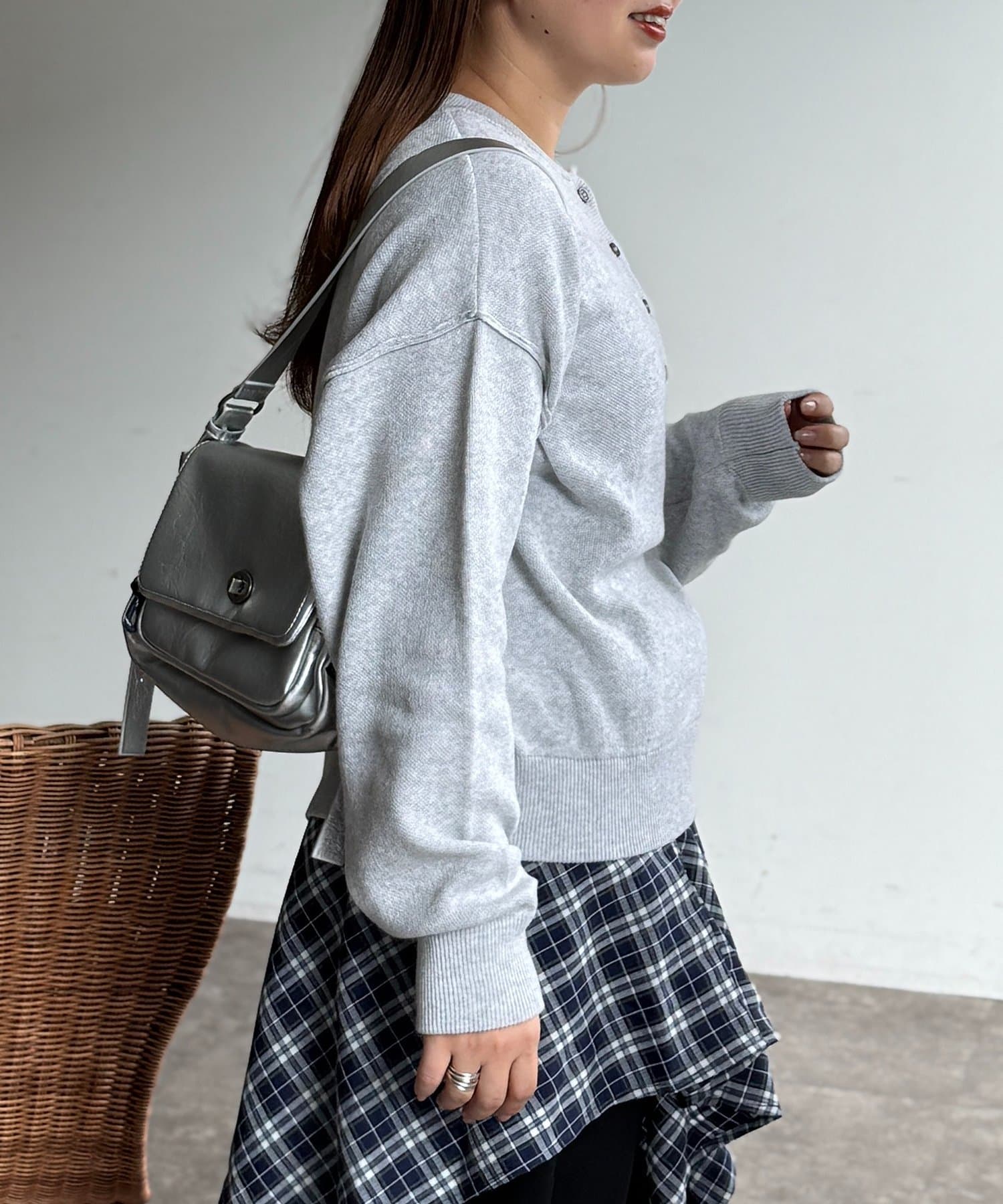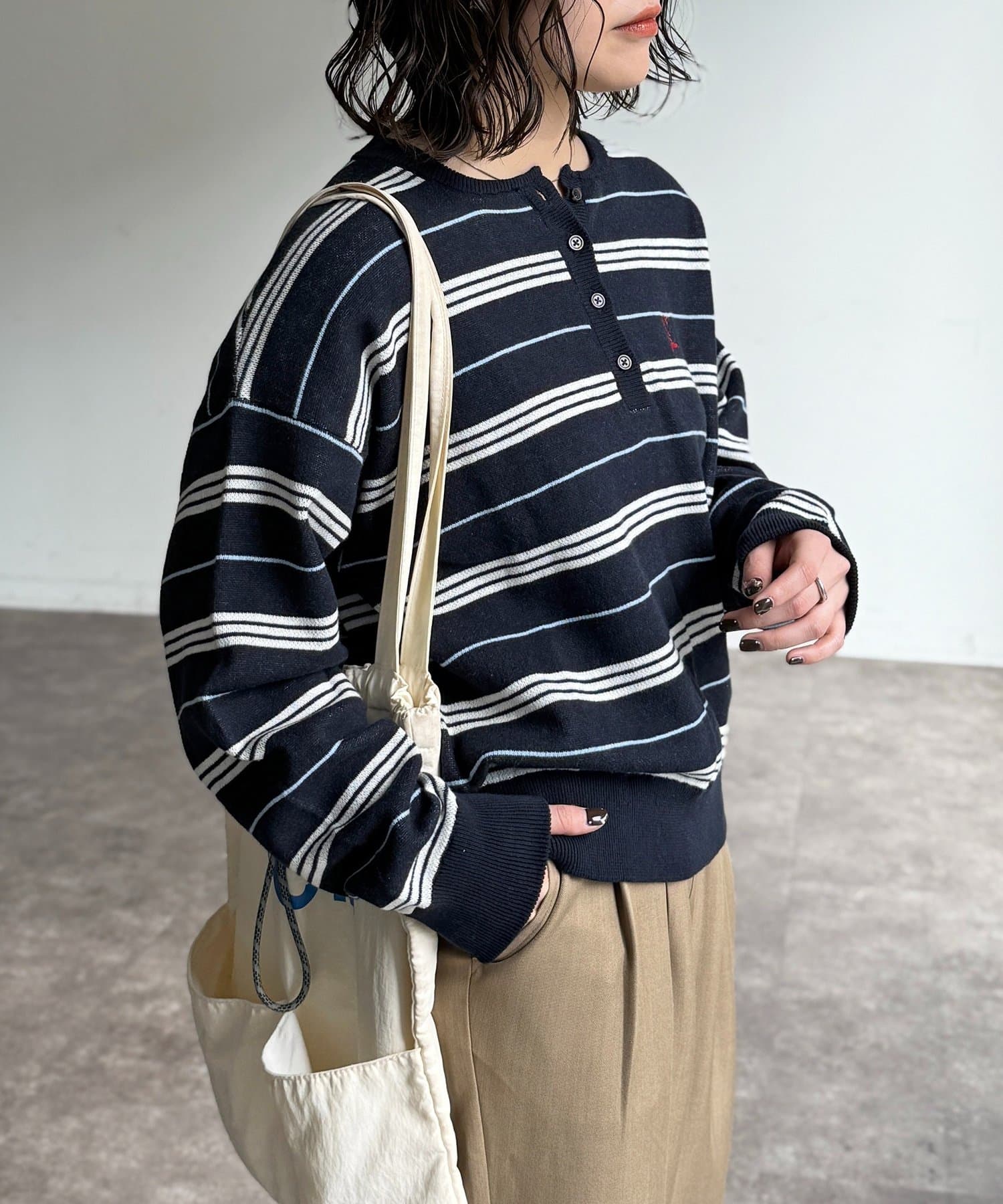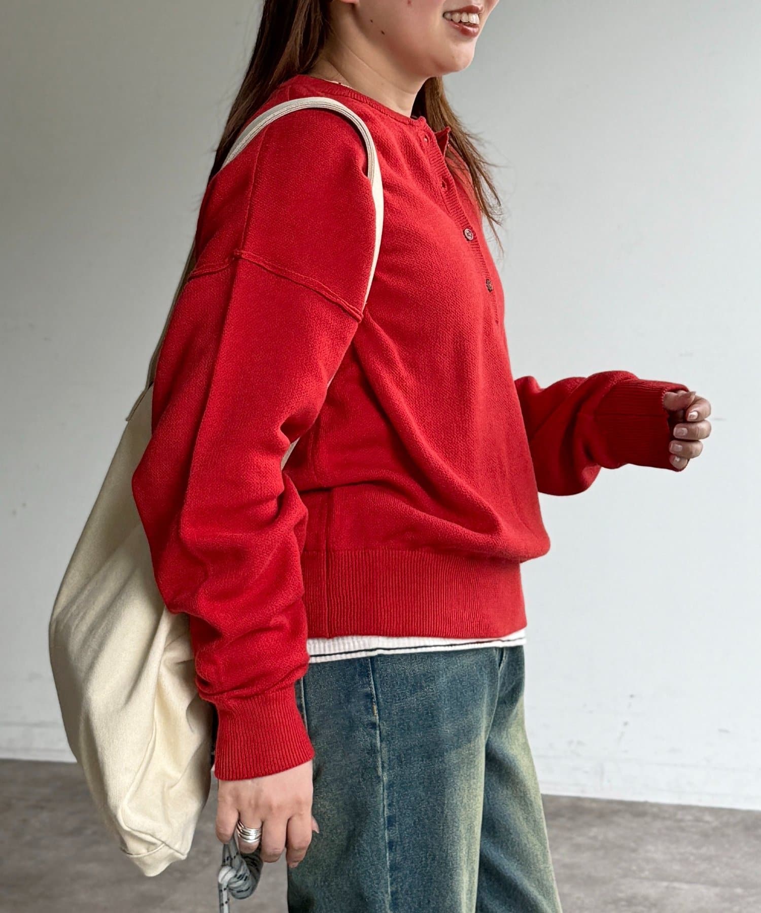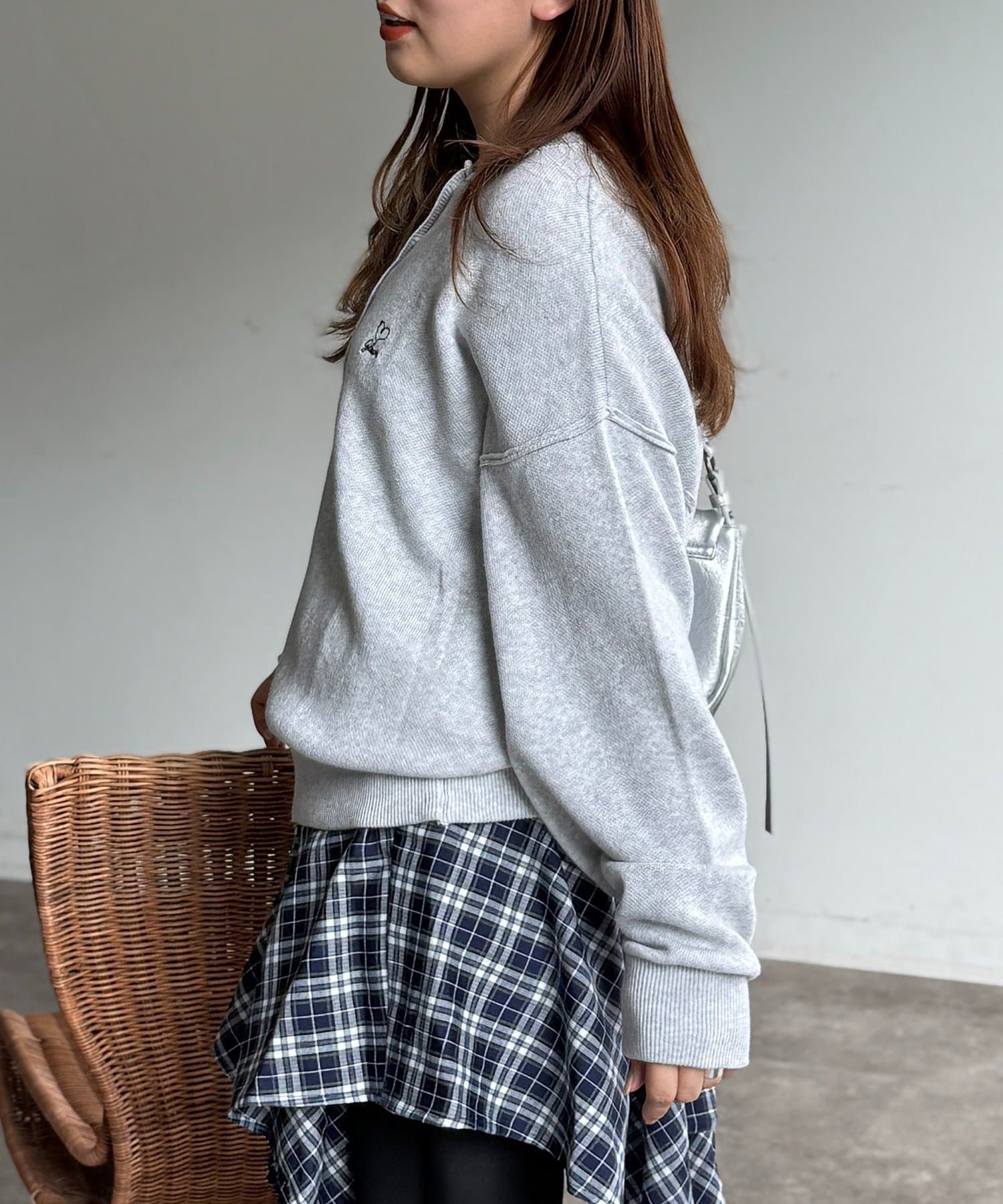 胸元のワンポイント刺繍が、さりげないアクセントをプラス!ヘンリーネックプルオーバー