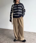 ・ボーダーのTシャツに重ねて、トレンド感のあるレイヤードスタイル