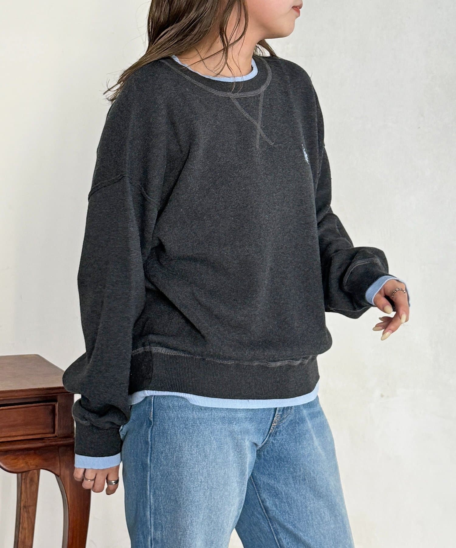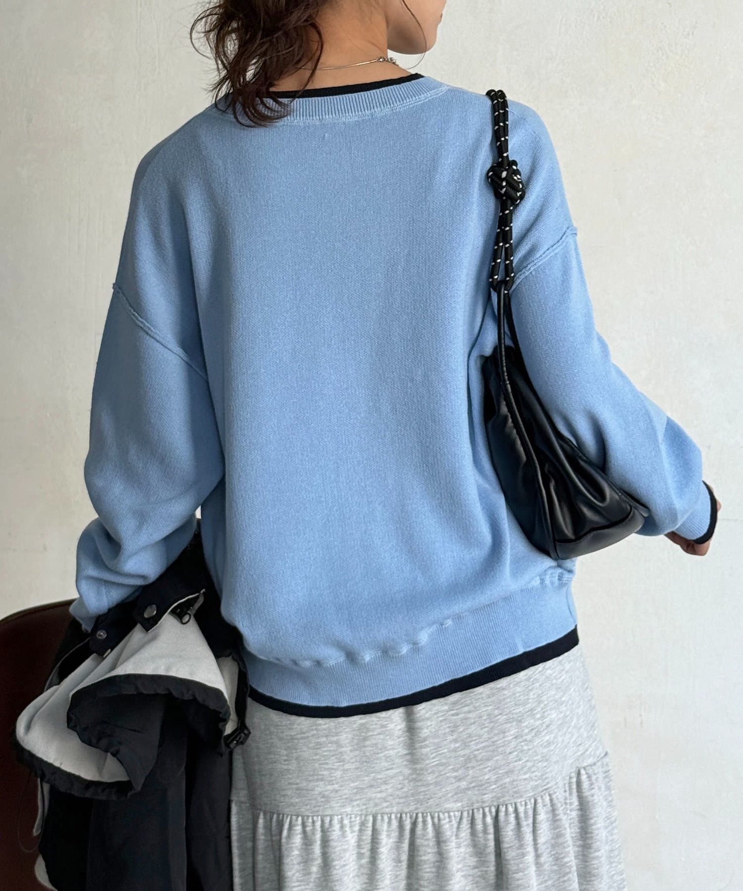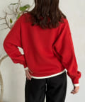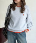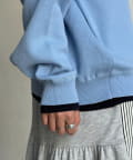 首元と袖口、裾に配色ラインを施し、重ね着をしているようなこなれ感を演出します!