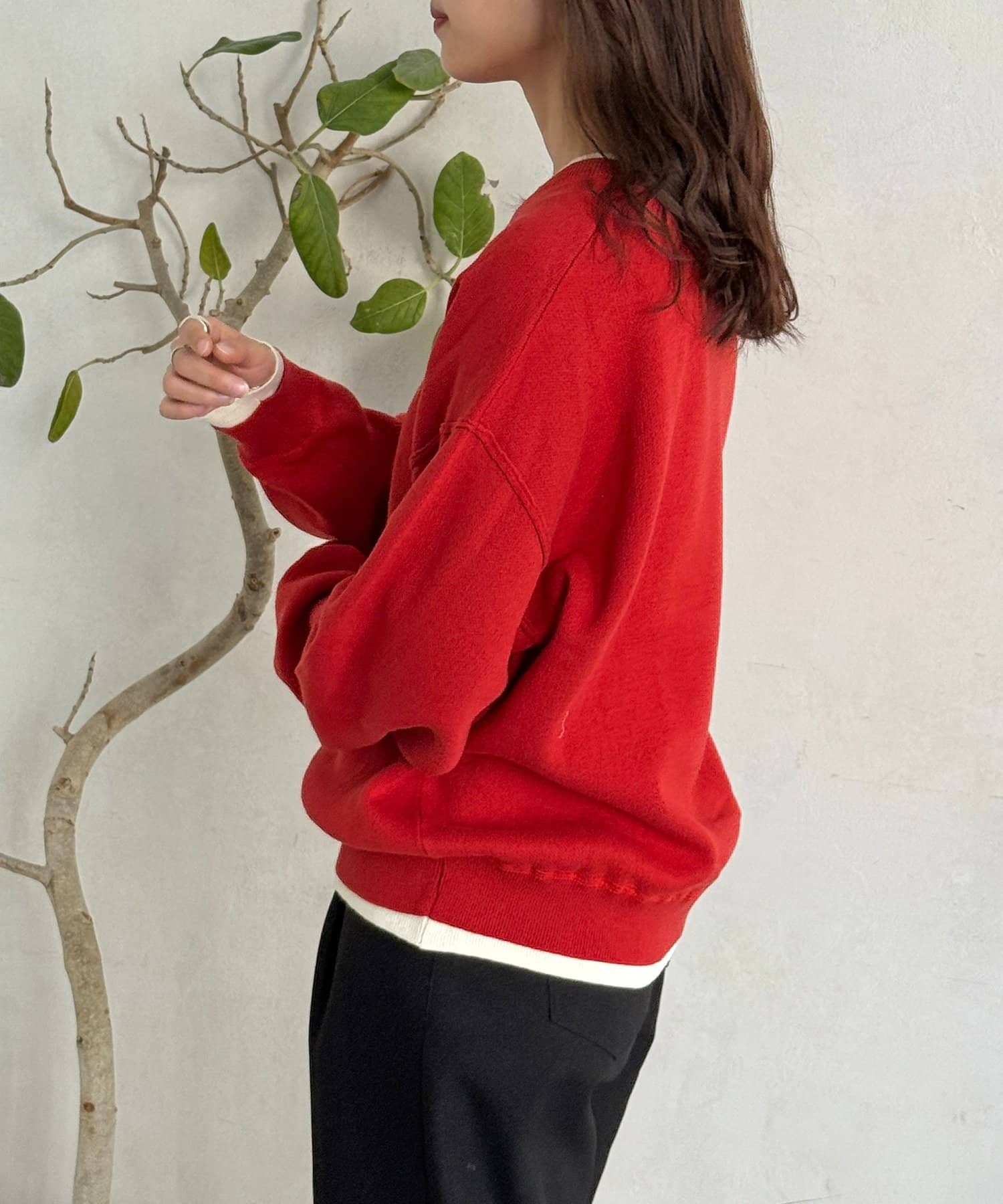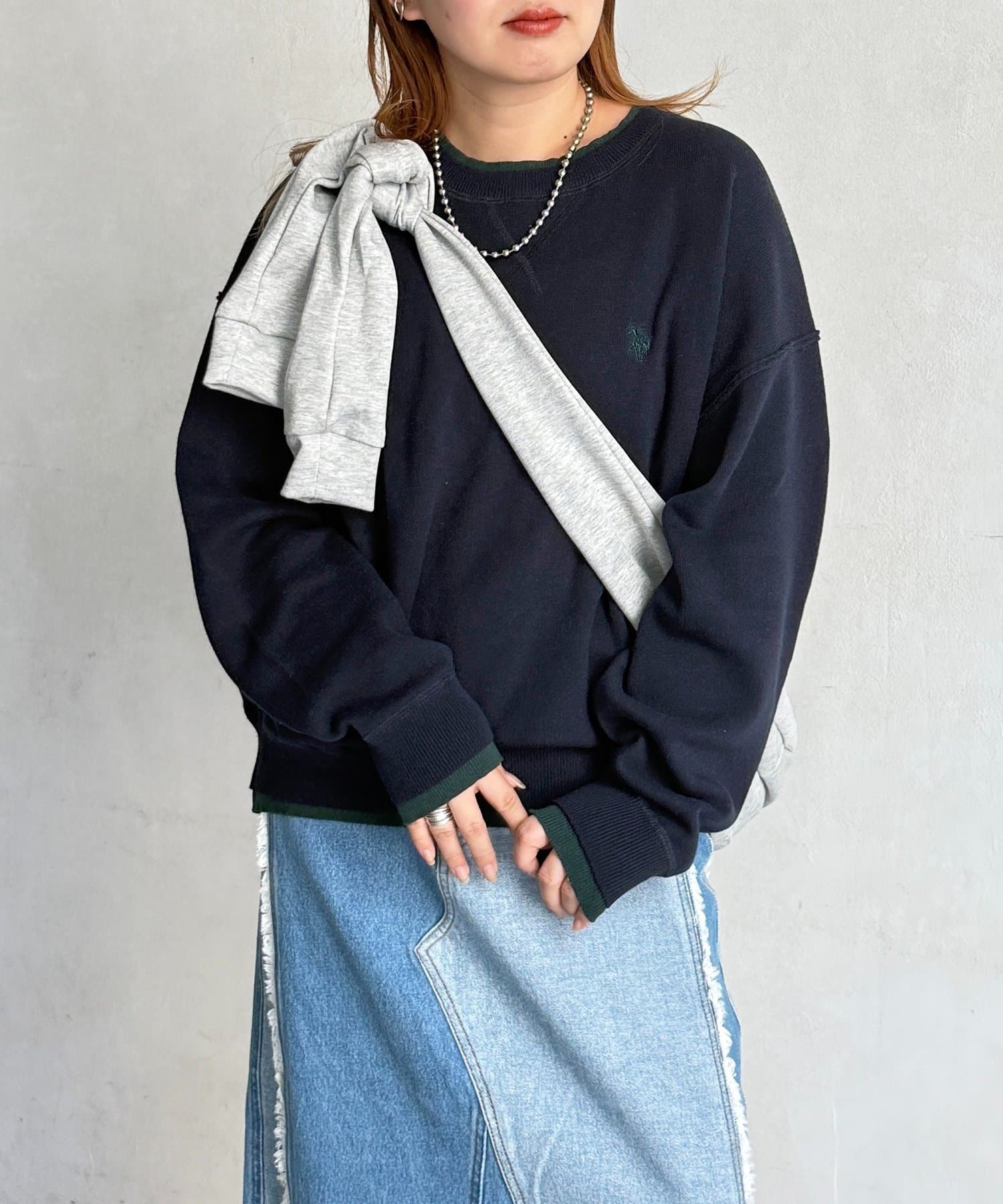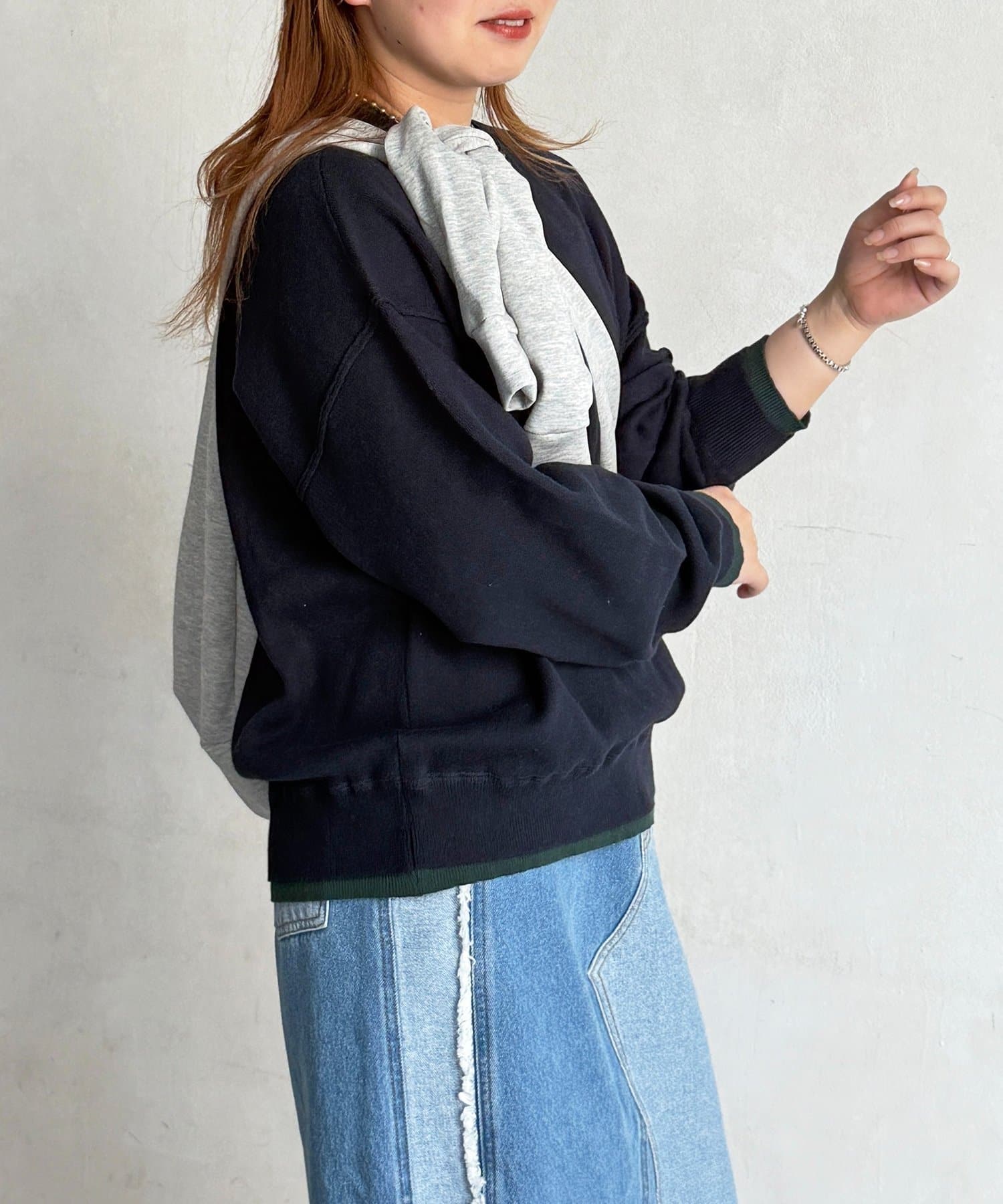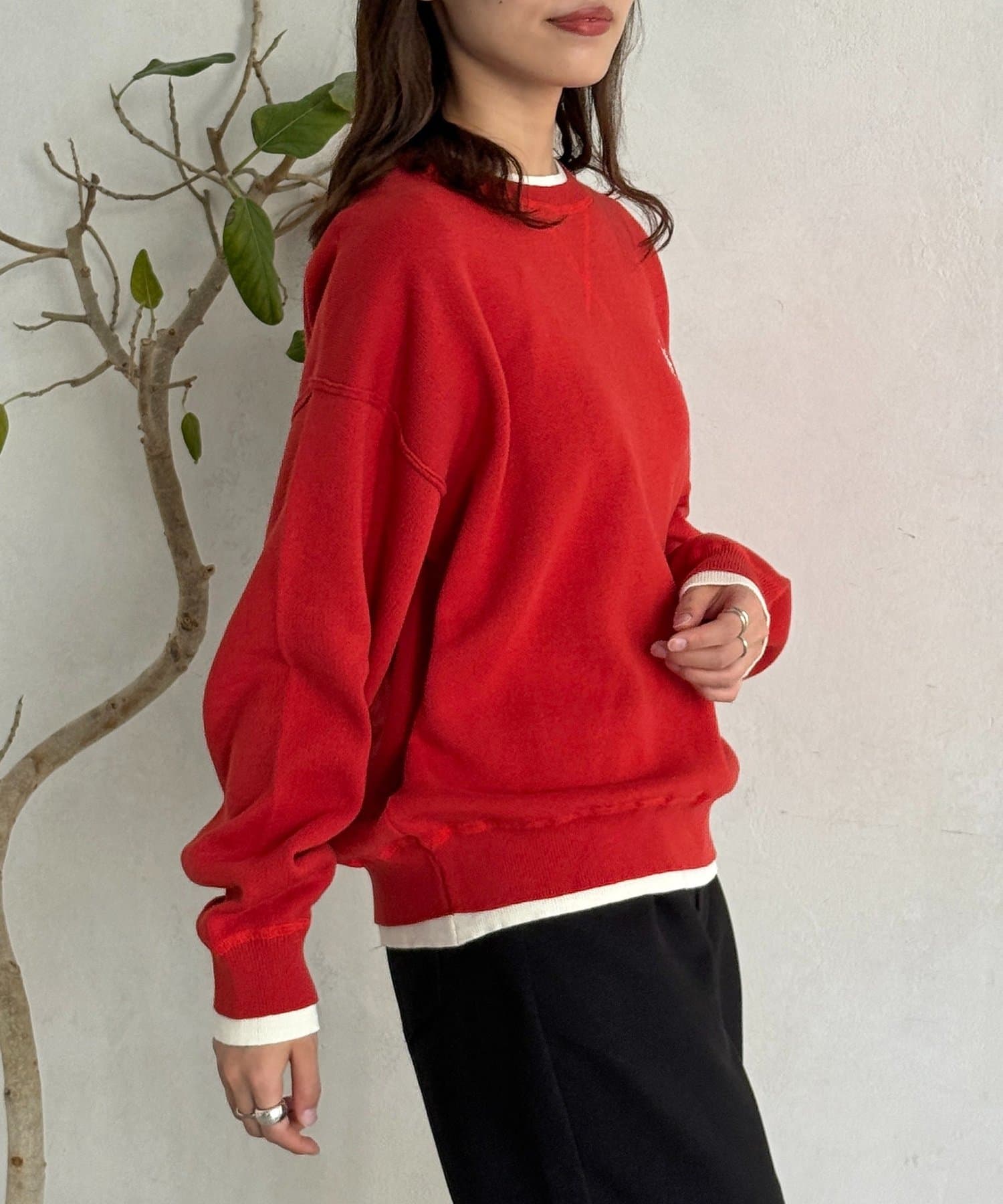 さりげないレイヤードスタイルが叶う◎フェイクレイヤードのスウェットライクニット
