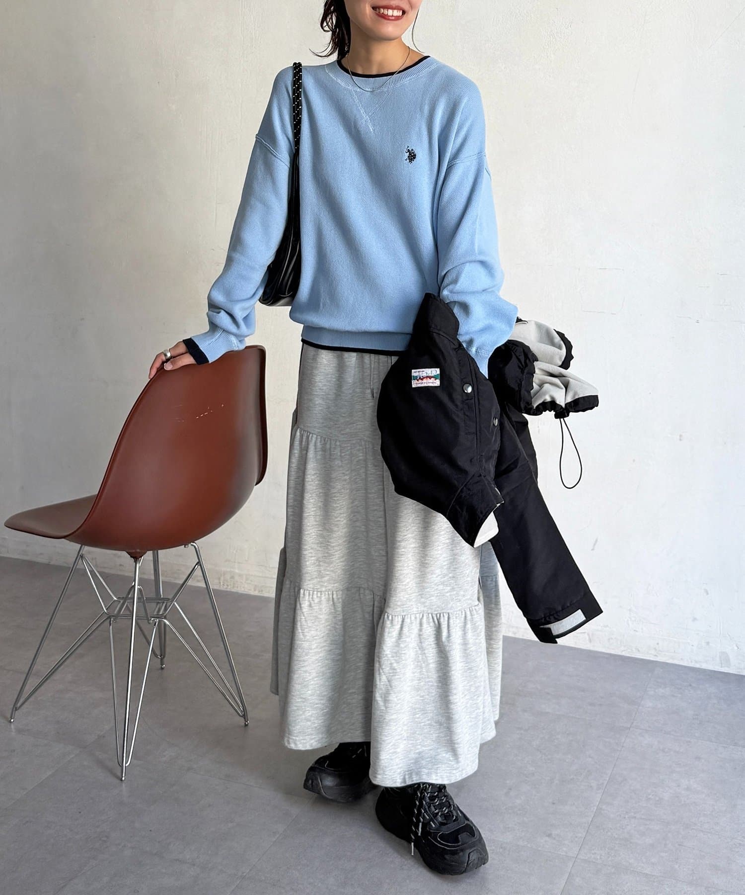 ・プリーツスカートと合わせて、大人可愛いMIXスタイルに。アクセサリーで遊び心をプラスして。