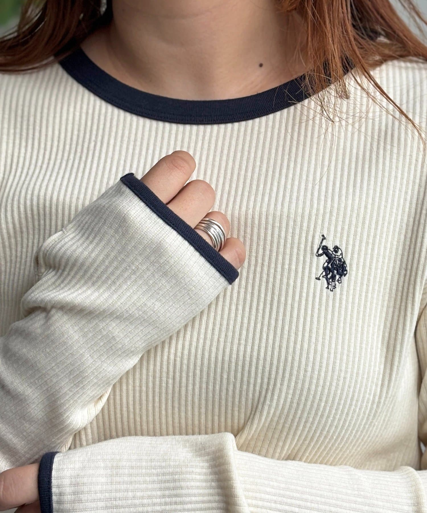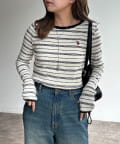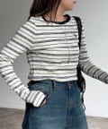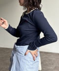 程よいフィット感で、カジュアルながらも女性らしさを引き立てるリブカットソーの配色ロンTです。