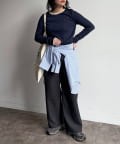 ・フレアスカートやワイドパンツにインして、きれいめカジュアルな着こなしに。オフィスにもおすすめな上品スタイル。