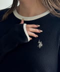 ・袖口とネックラインの配色が、着こなしのアクセントに。