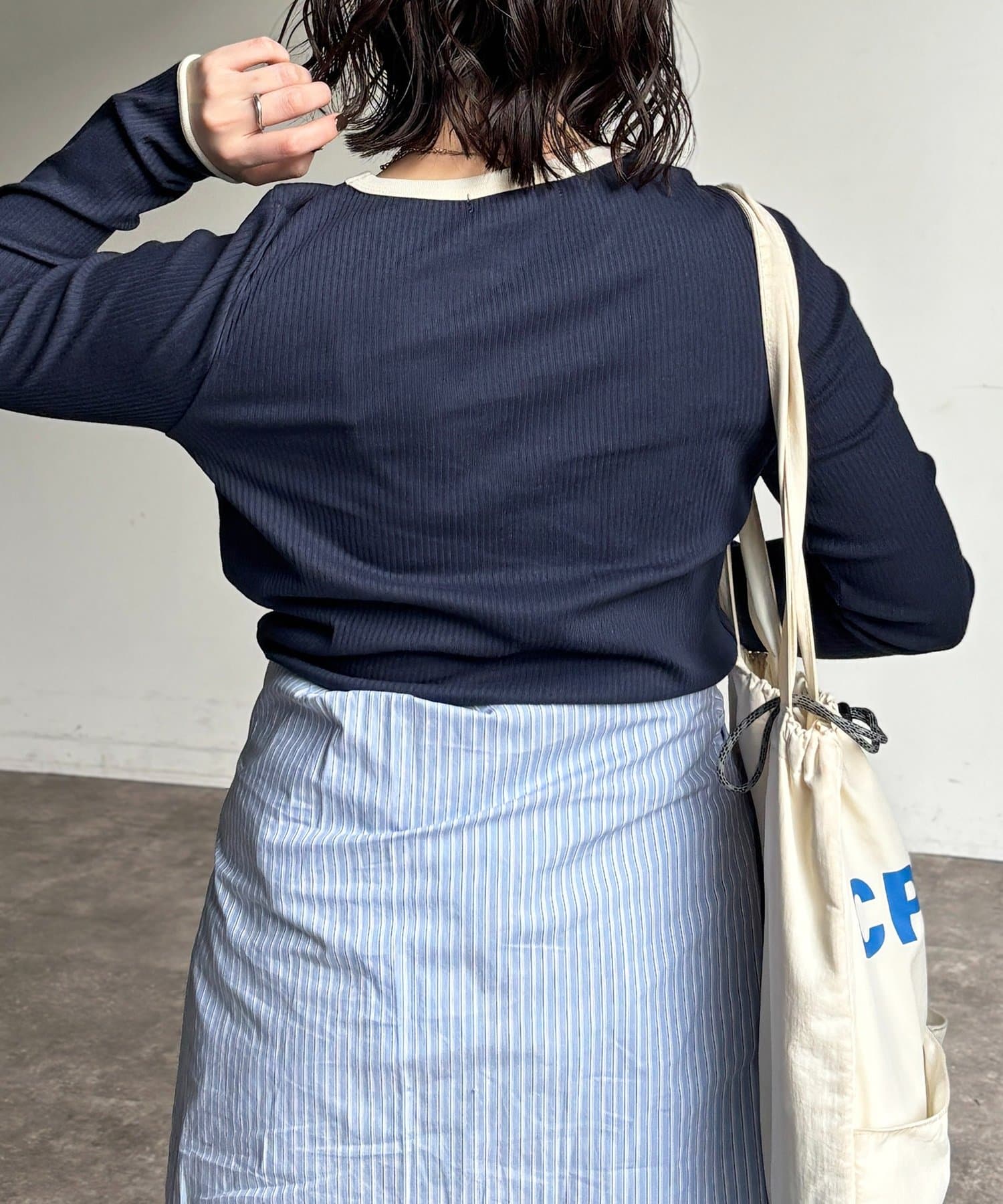 ・リブ素材が叶える、すっきりとしたシルエット。