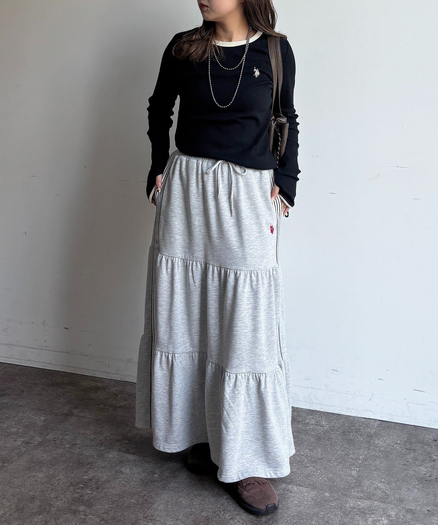 リブ素材ならではの縦ラインが、スタイルアップ効果も期待できます◎