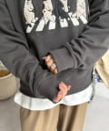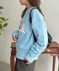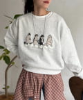 フロントのゆるっとしたネコたちがたまらない、キャッチーなデザインのスウェットプルオーバーです、
