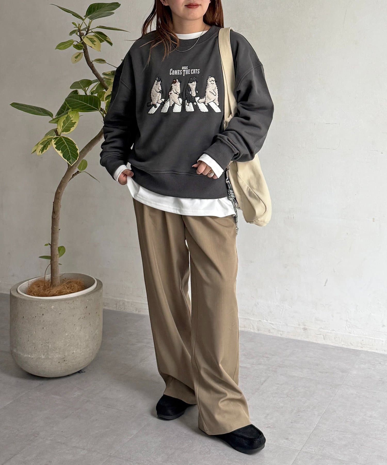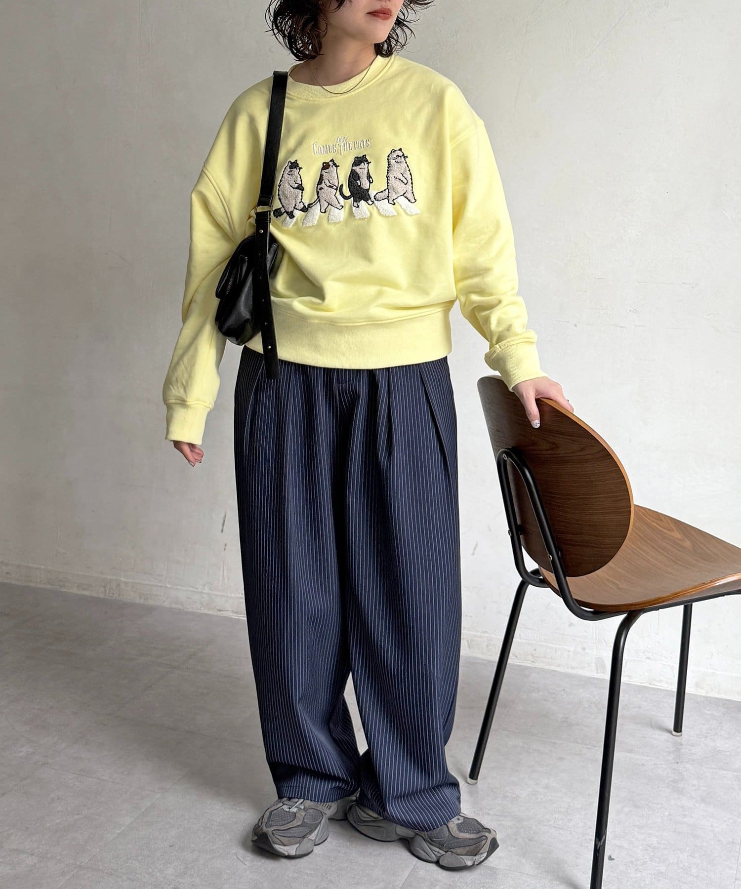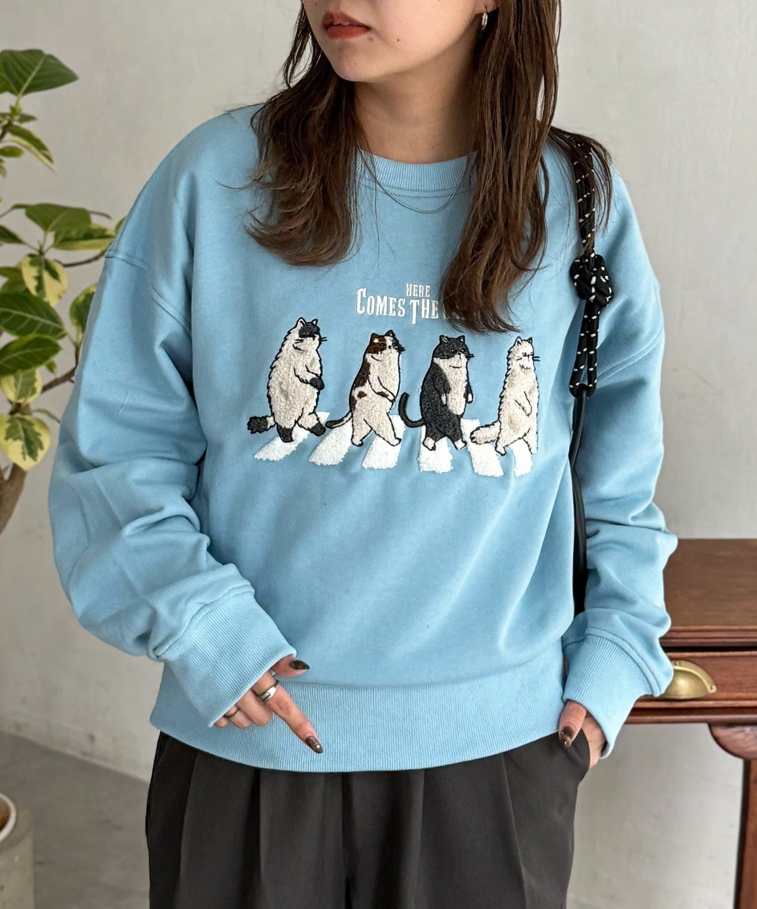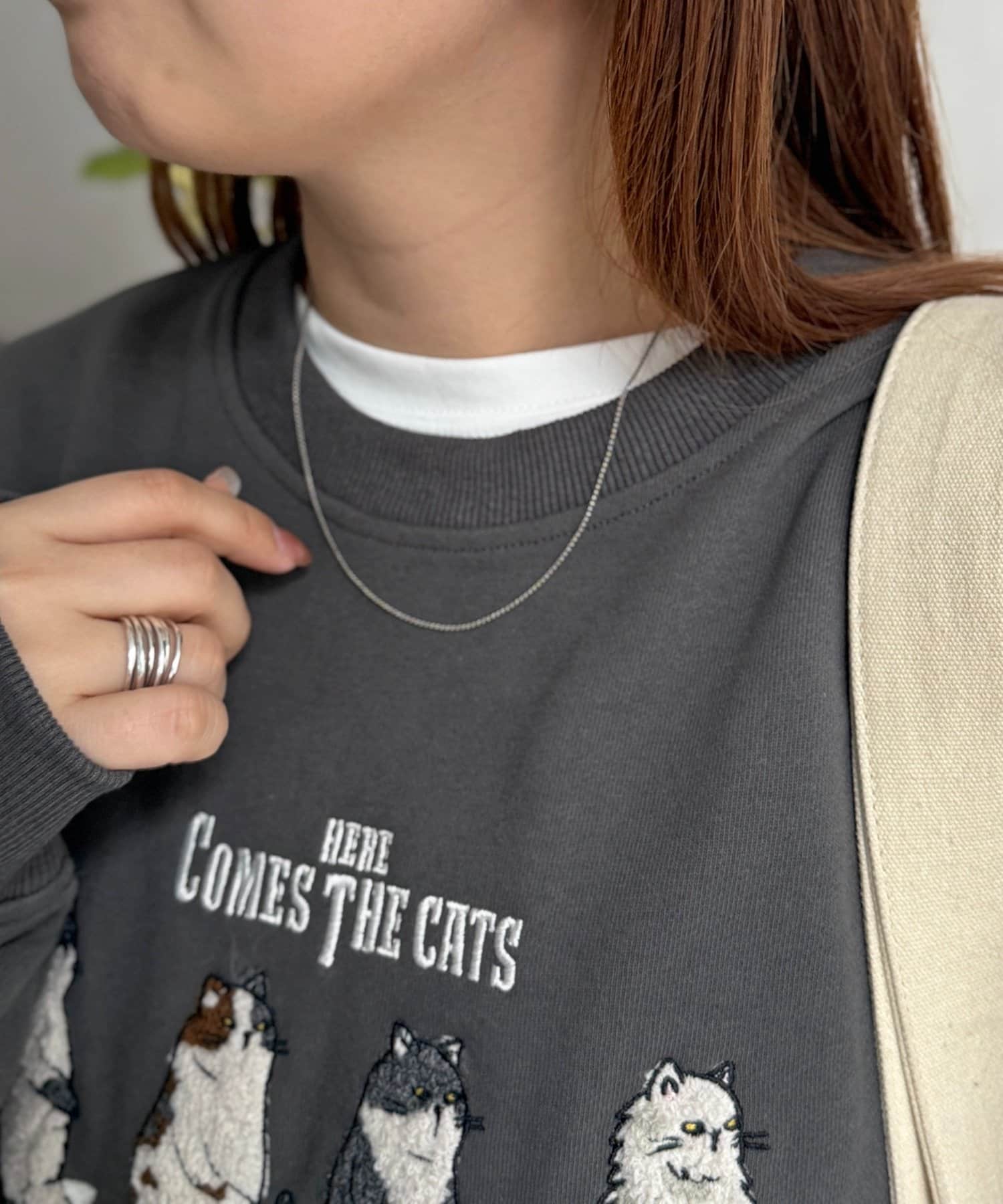 思わず二度見しちゃう!遊び心あふれるネコ刺繍スウェット