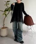 ヒップまで隠れる安心の着丈と、アシンメトリーな裾のデザインでさりげなく体型カバーも叶う優秀な一枚です。