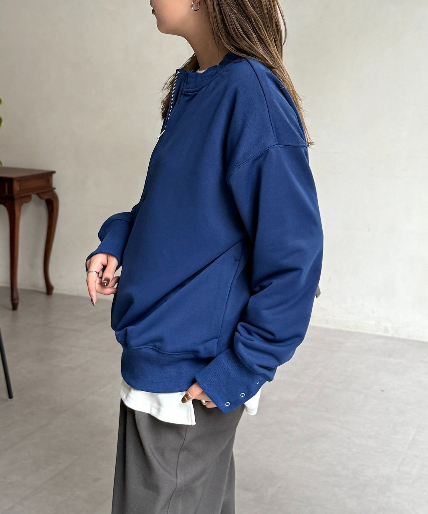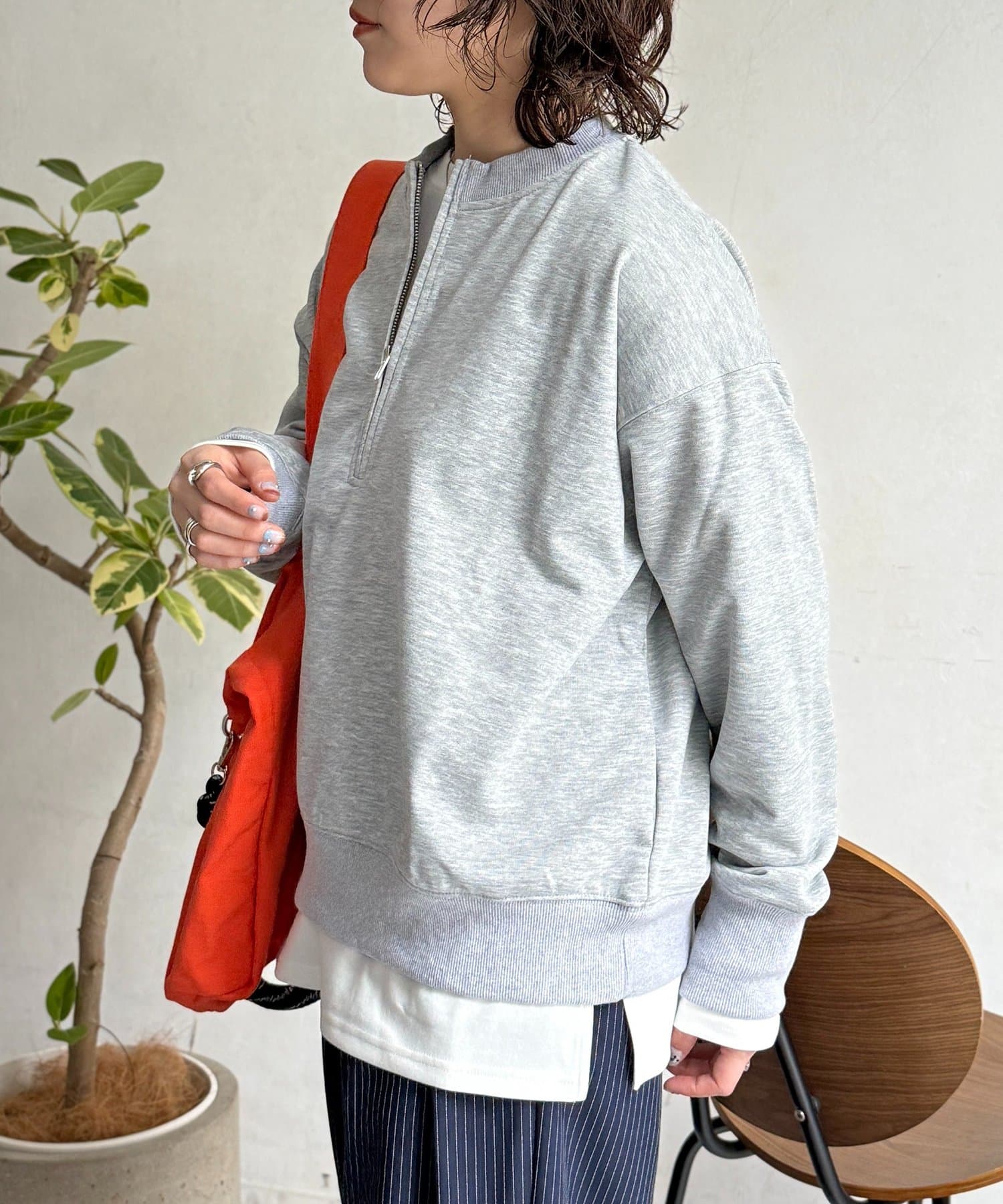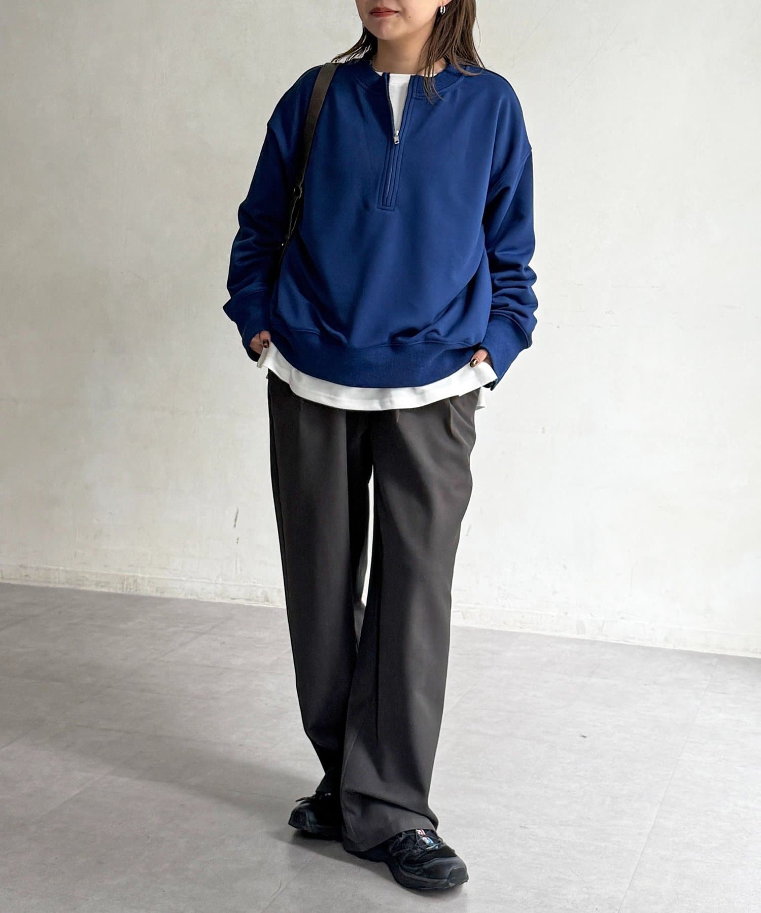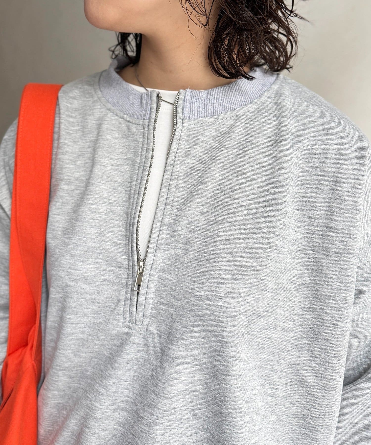 ・トレンドのハーフジップデザインは、ジップの開閉で抜け感や印象の変化を楽しめます。