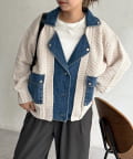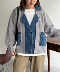 TOP > CPCM > レディース > ジャケット/アウター > その他ジャケット/ブルゾン > デニム切替ニットライダースジャケット