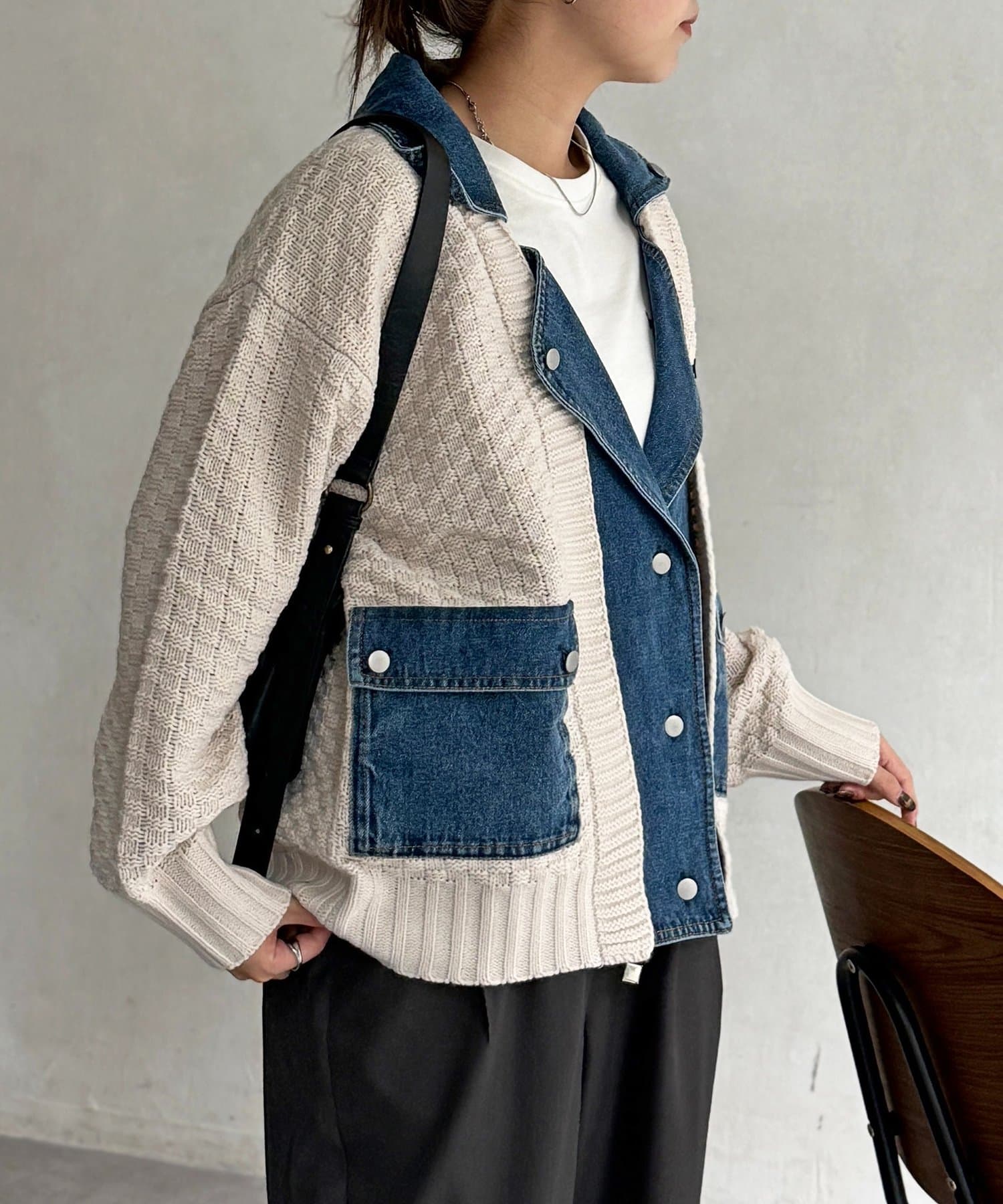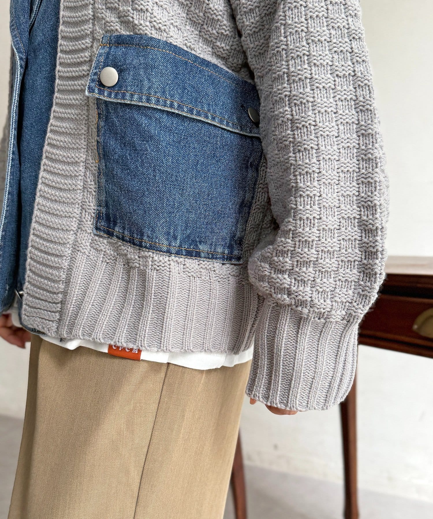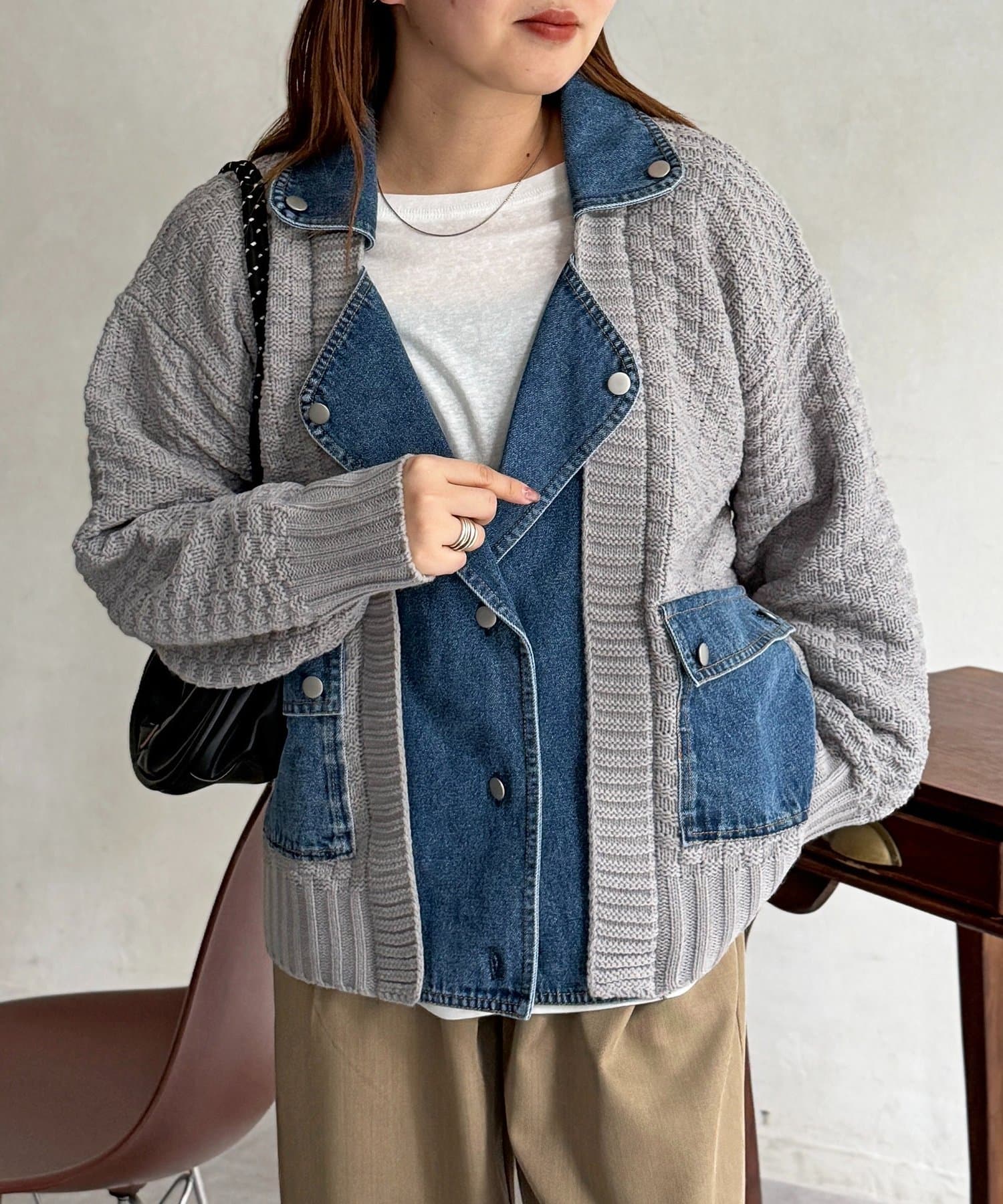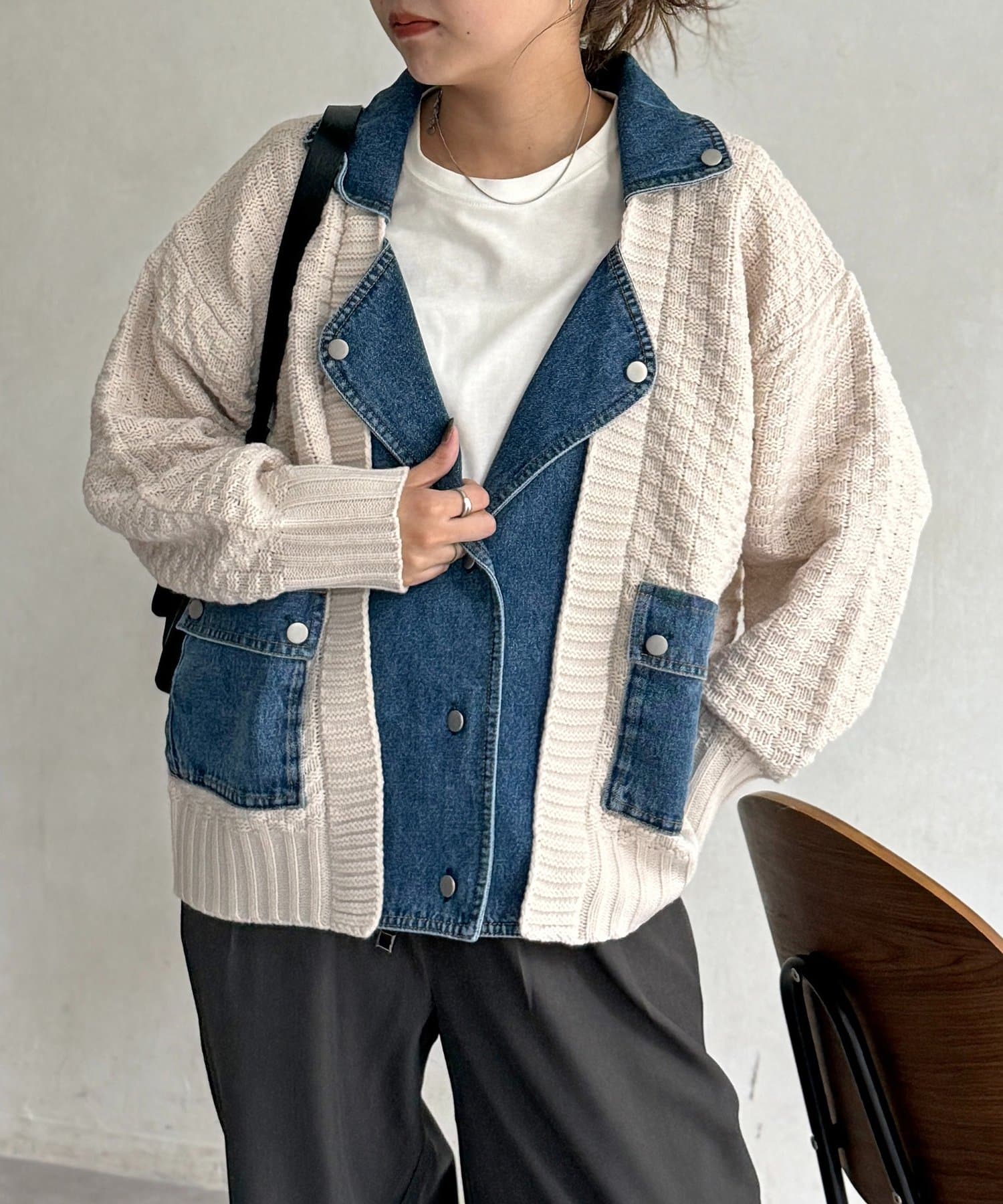 ・ニットとデニムを組み合わせた、他にはない遊び心のあるデザイン