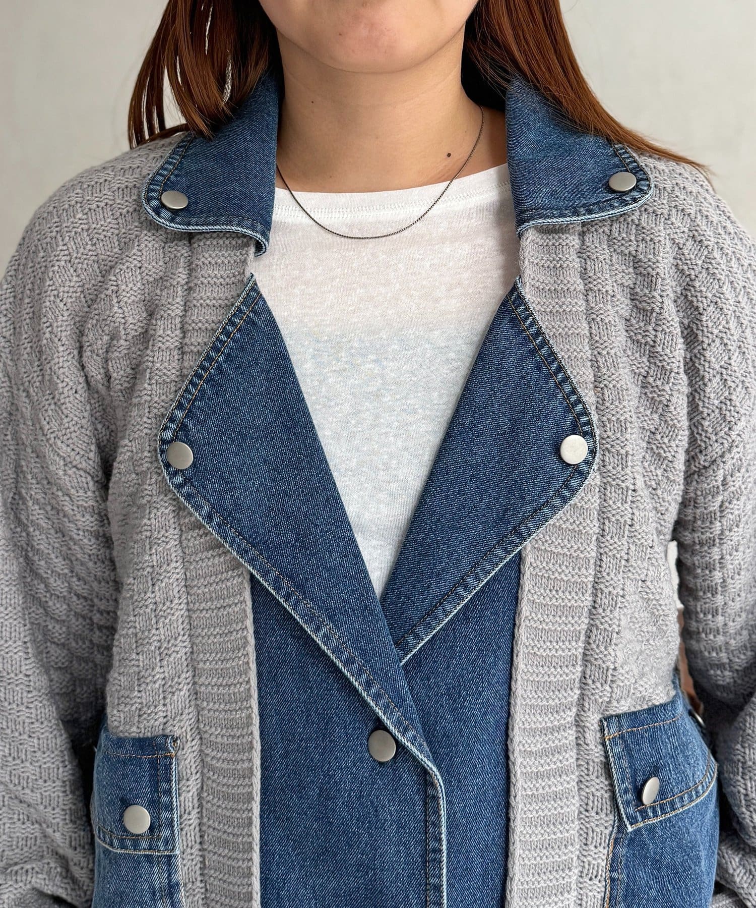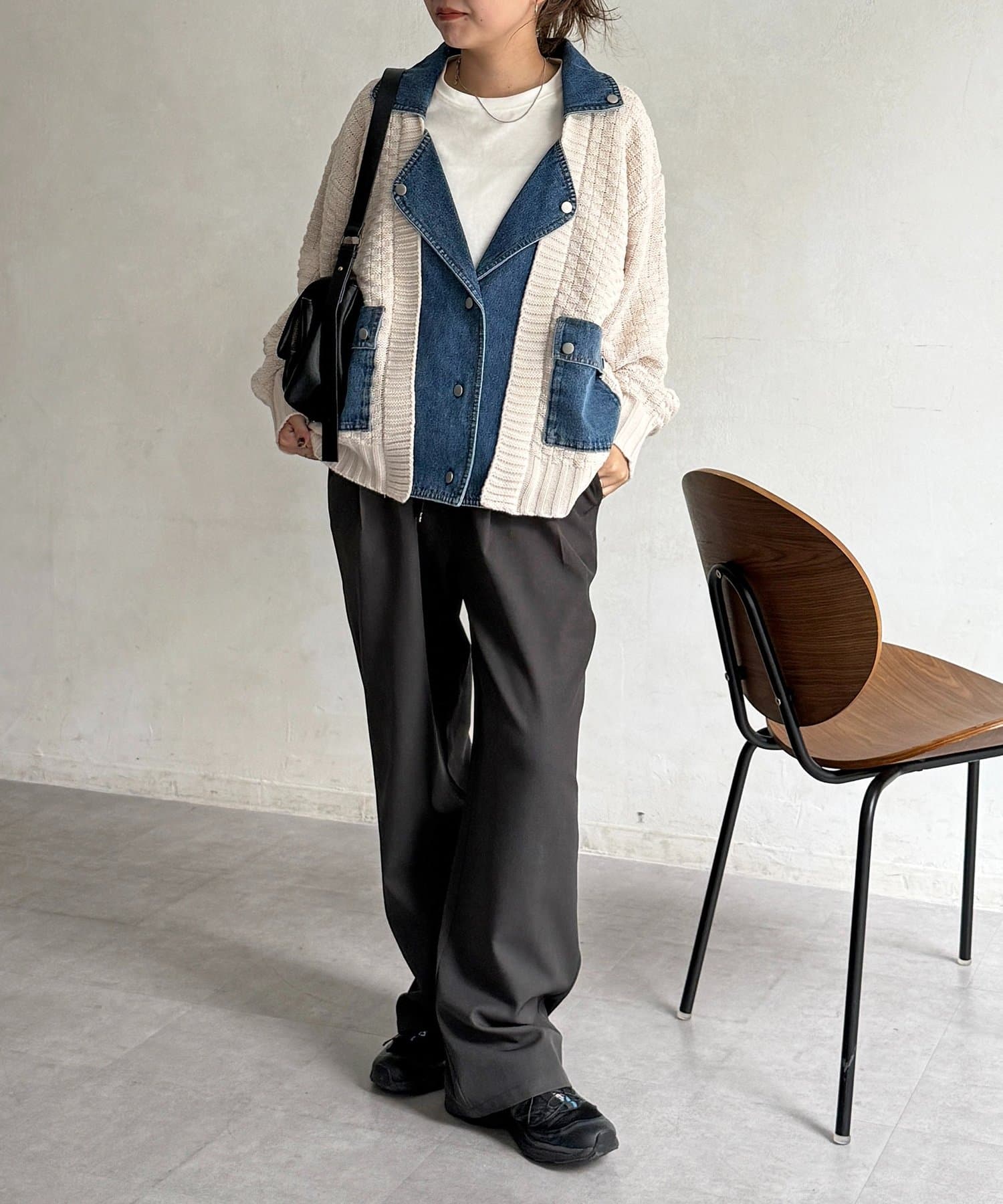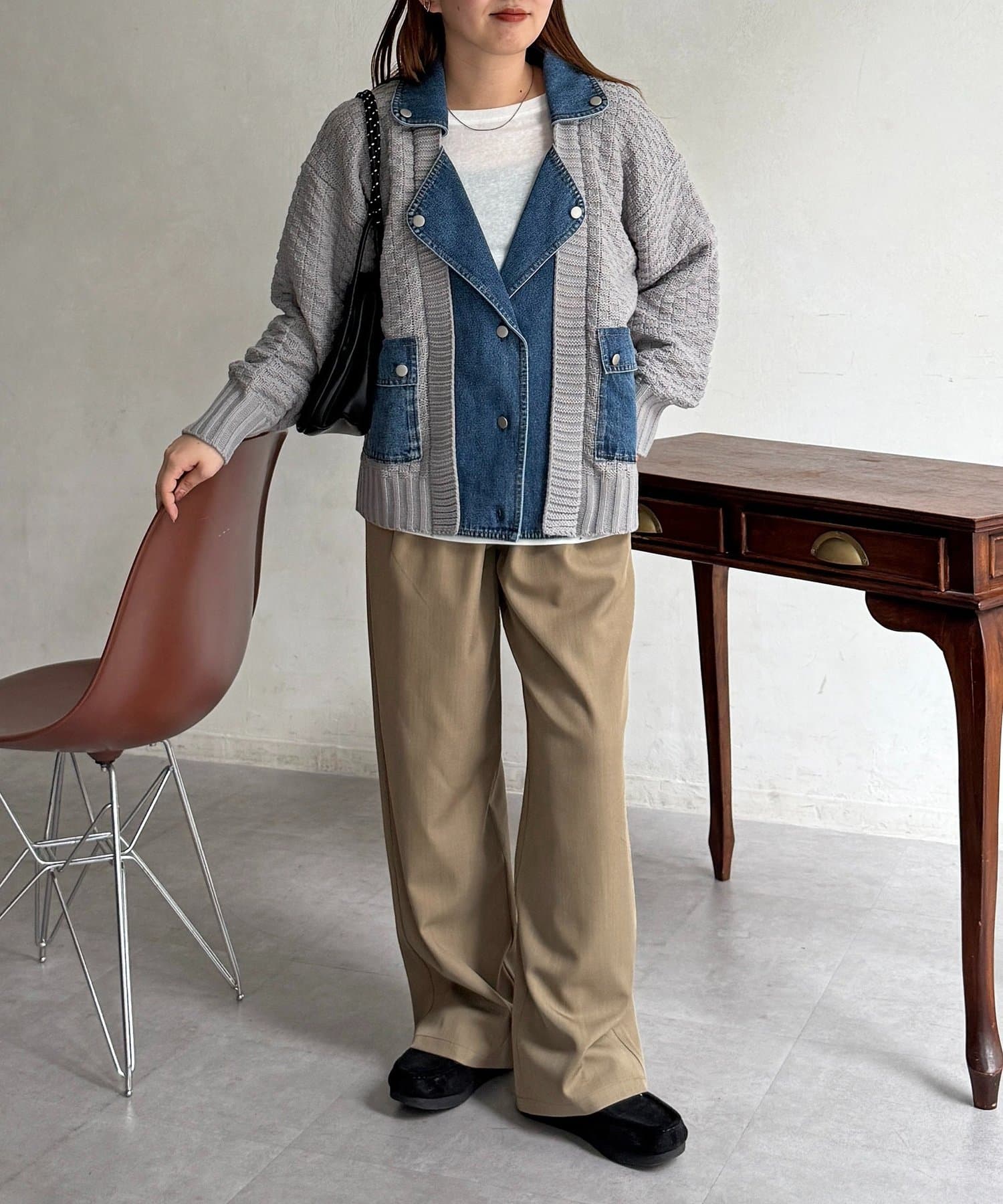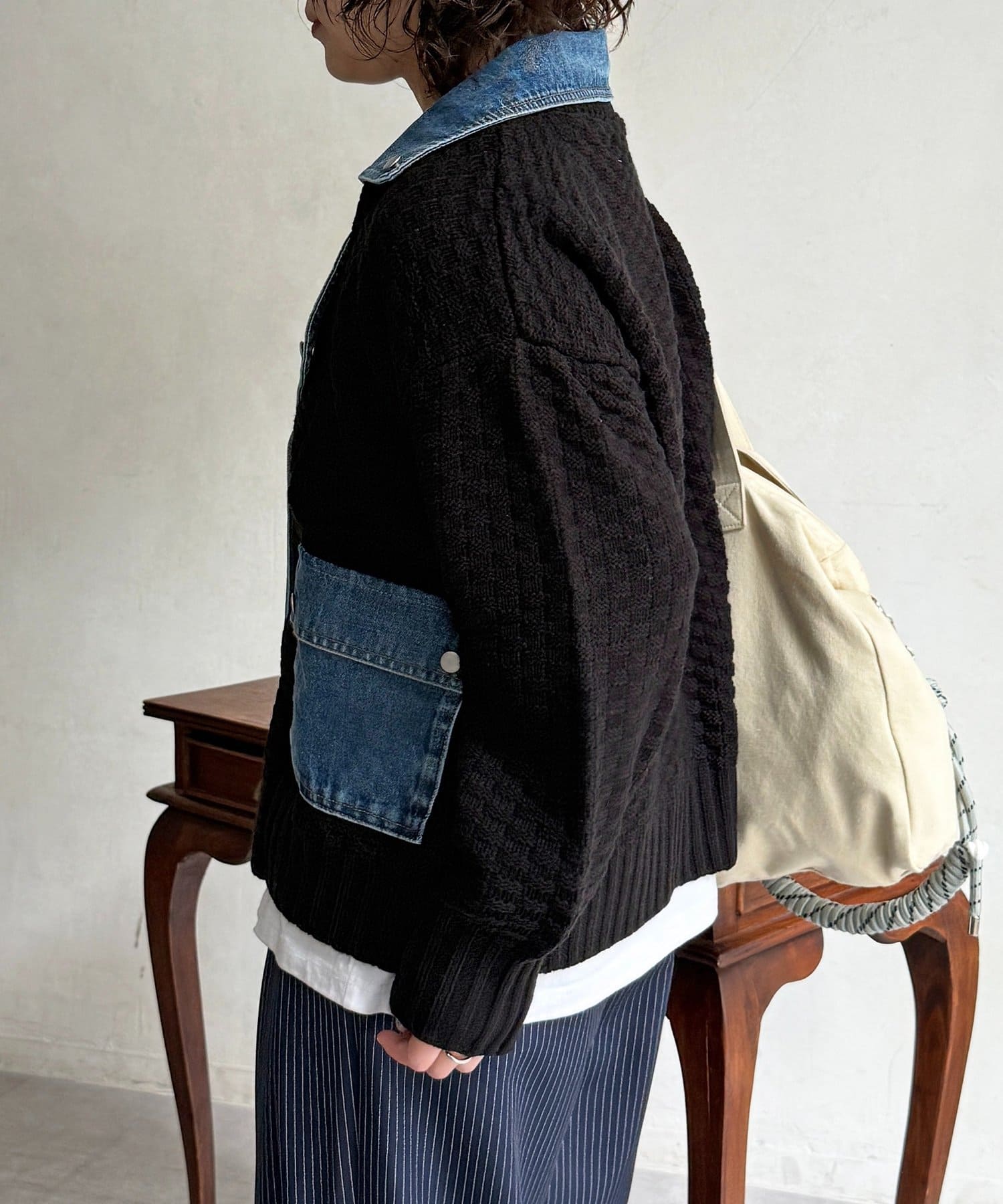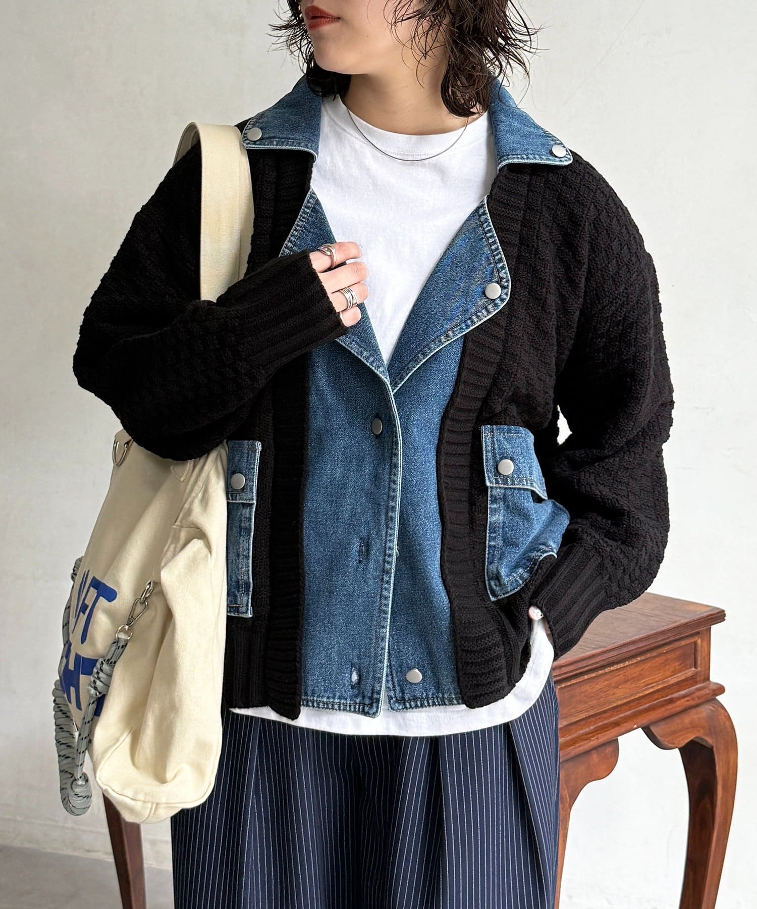 ・ニットとデニムを組み合わせた、他にはない遊び心のあるデザイン