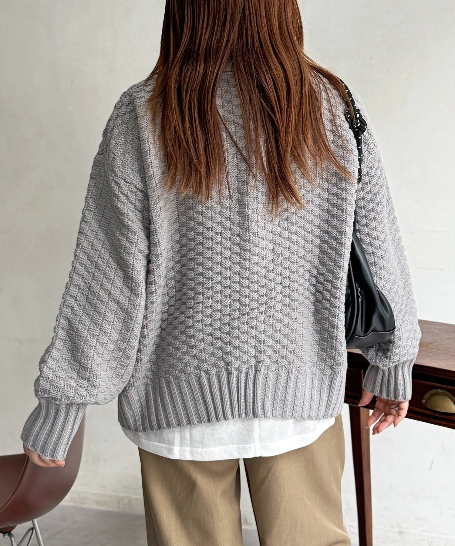 ・肩の落ちるドロップショルダーと、ゆるっとした身幅でこなれ感を演出