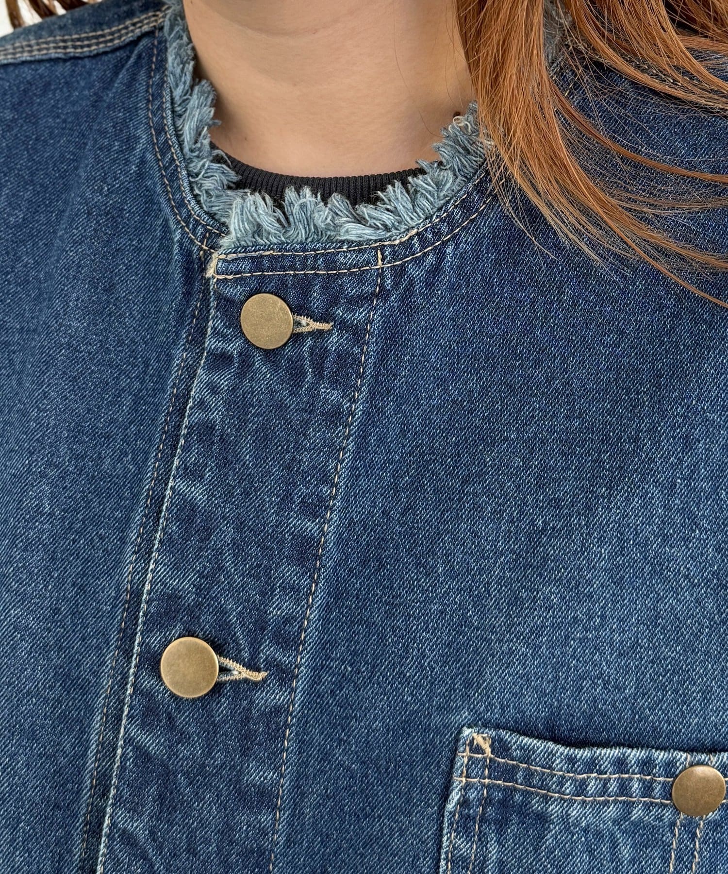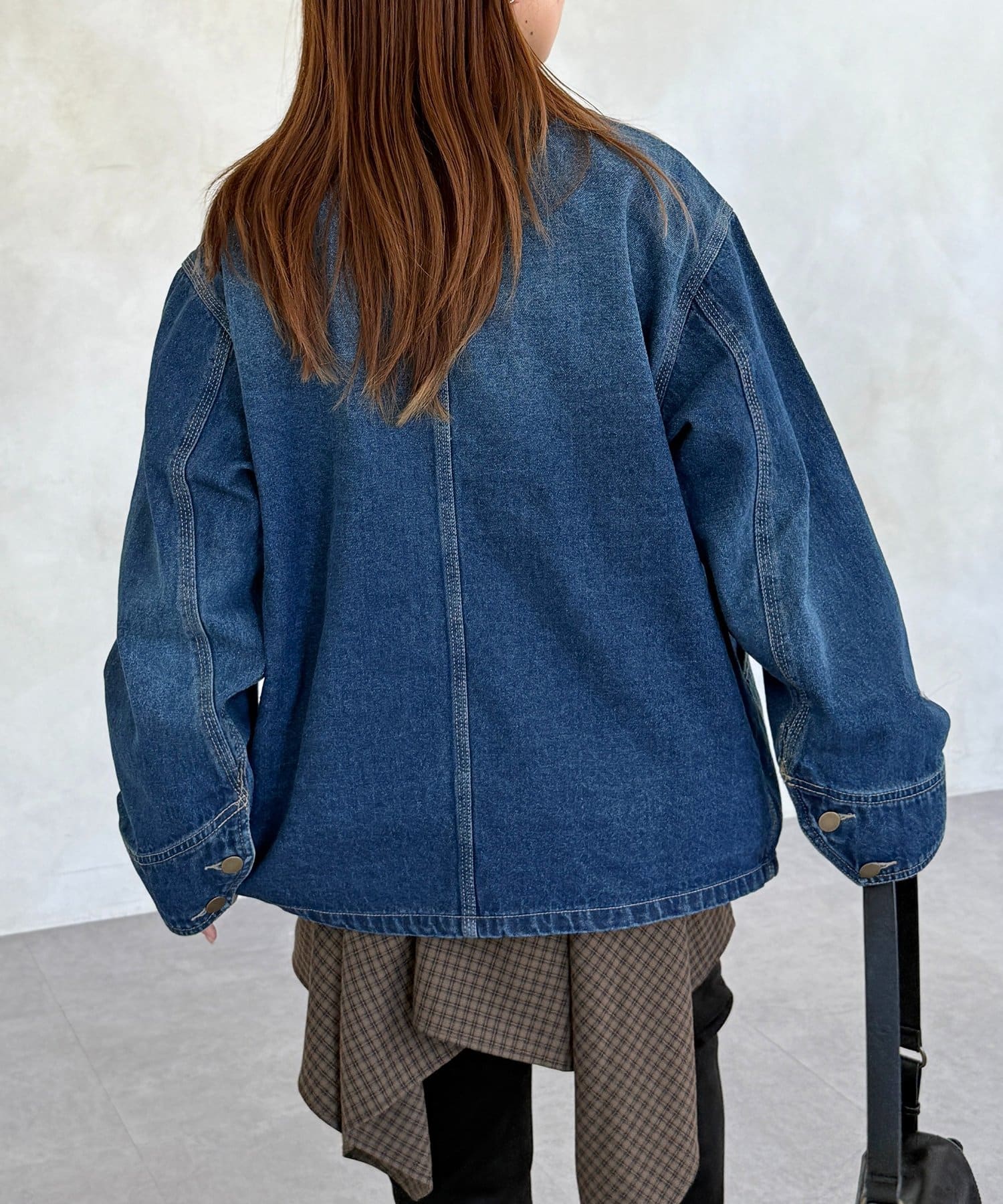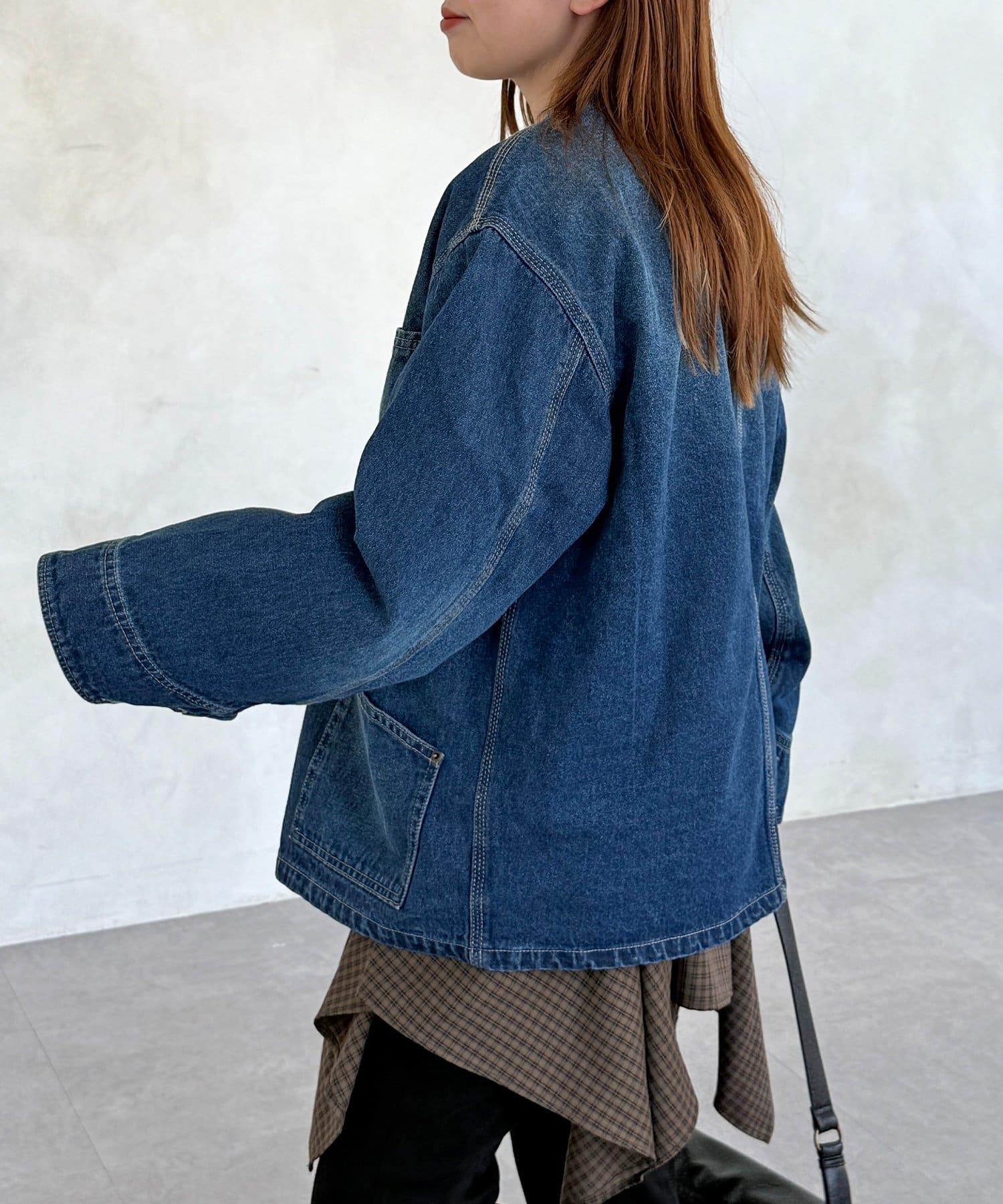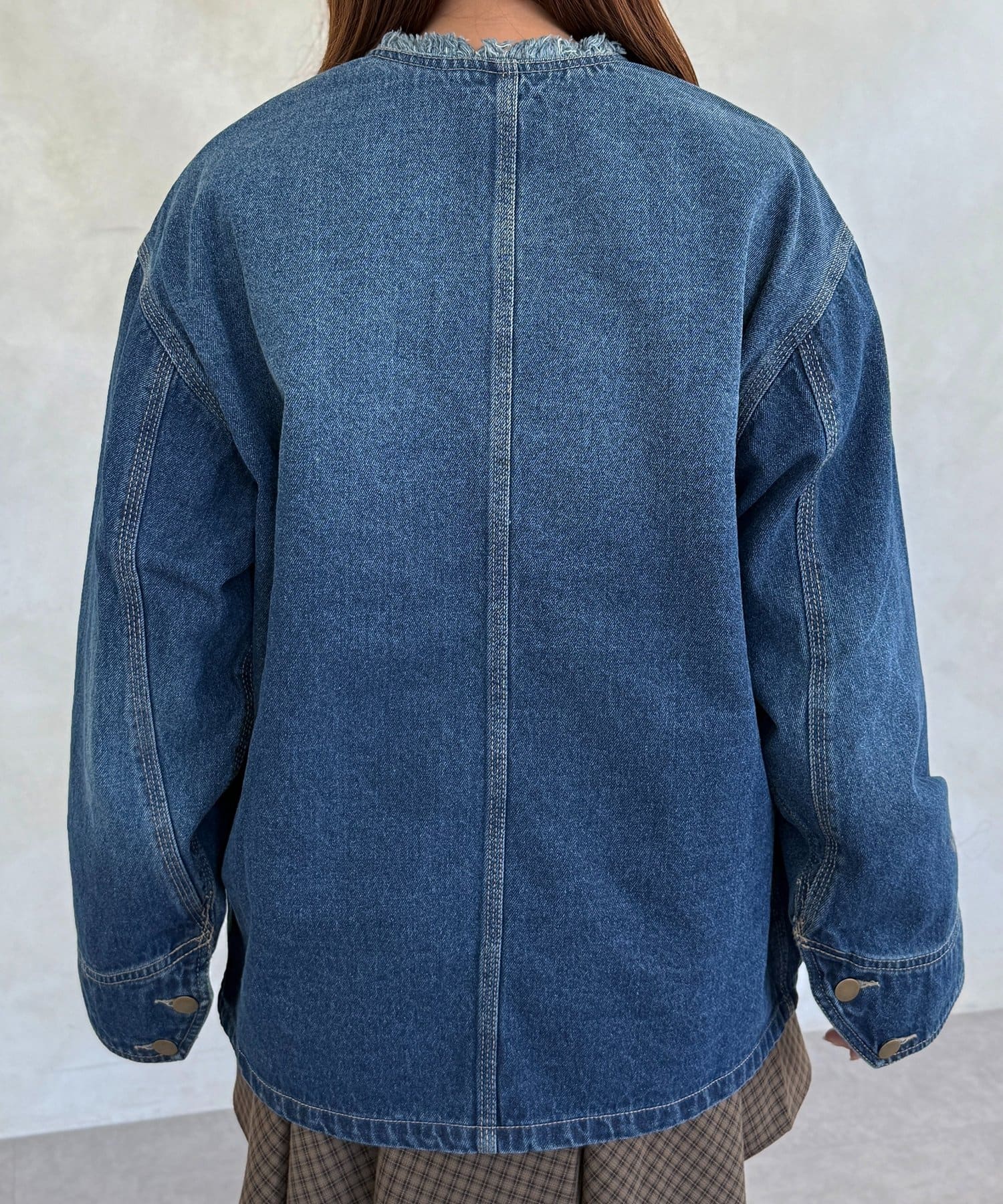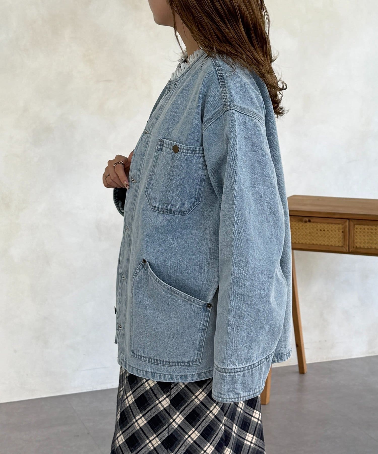 ノーカラーなので、ハイネックやシャツなどインナーを選ばず様々なスタイルに合わせやすいのが魅力◎