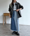 ・チュニックやスカートなどガーリーなアイテムと合わせたMIXスタイル