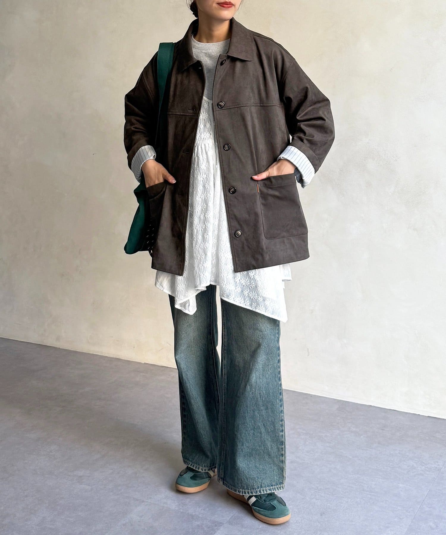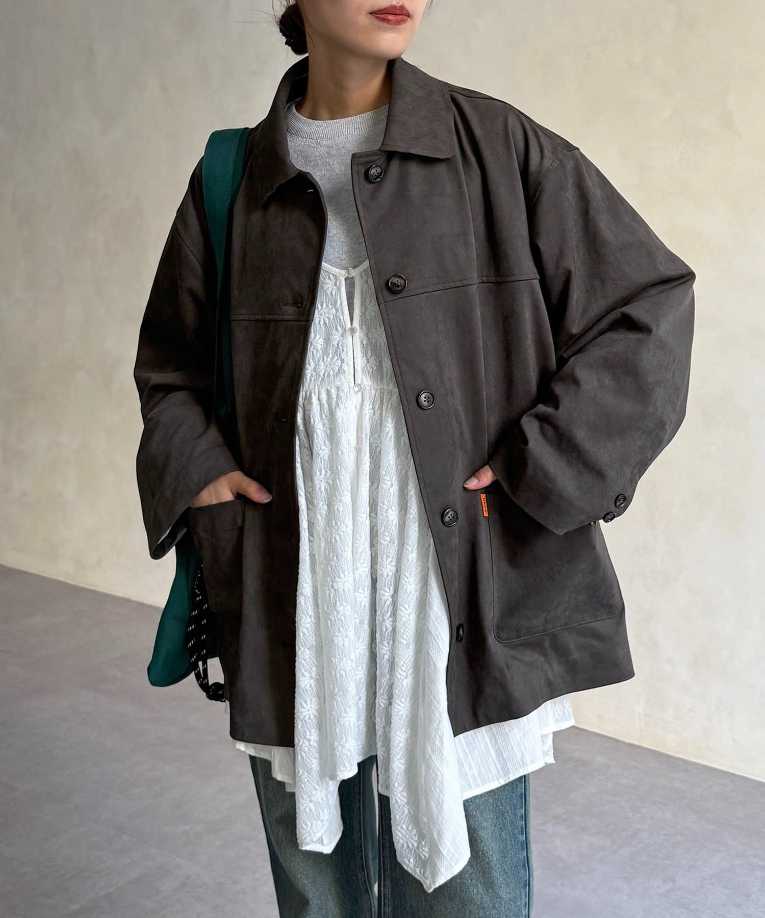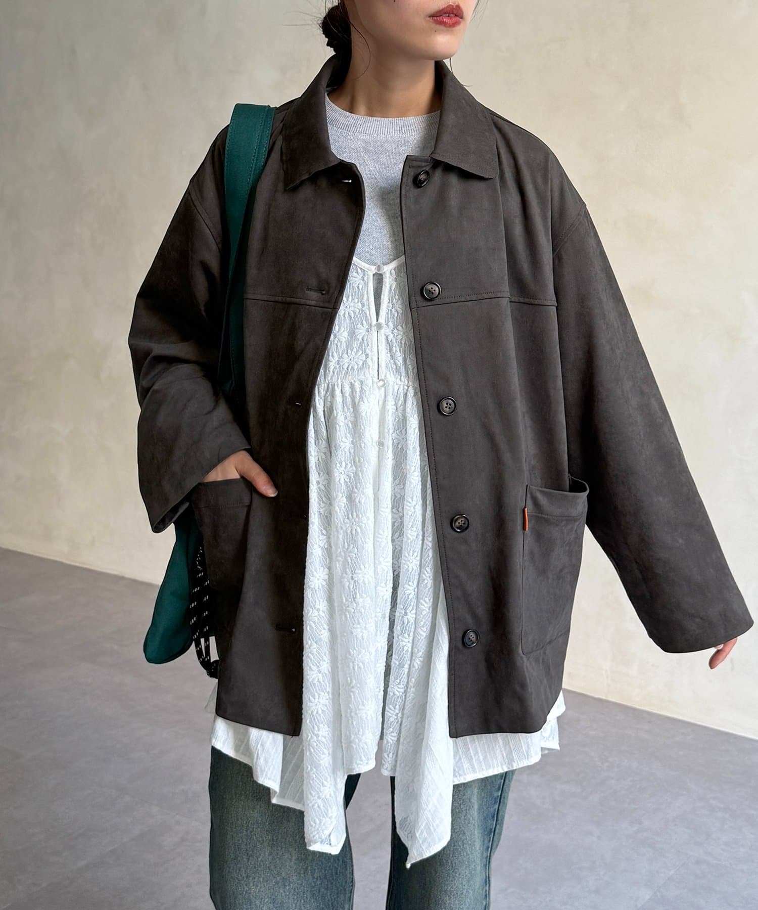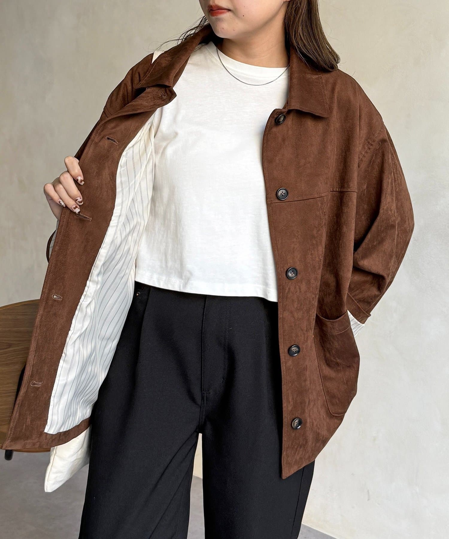 スエードタッチの質感が上品さを演出してくれるカジュアルジャケット!