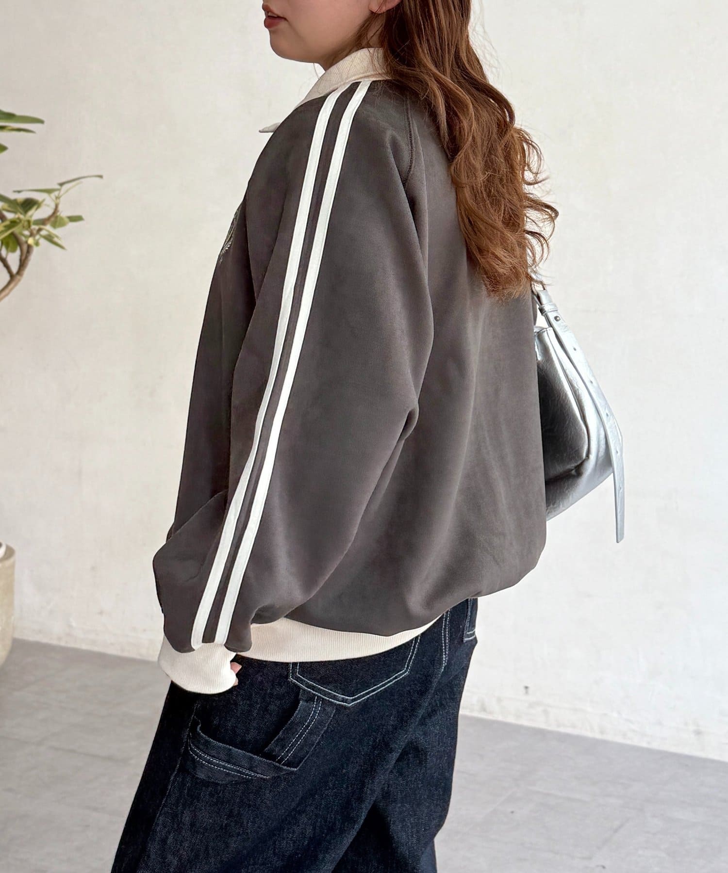 メンズライクな印象ながらも、刺繍デザインがポイントでカジュアルになりすぎない絶妙なバランスが魅力。