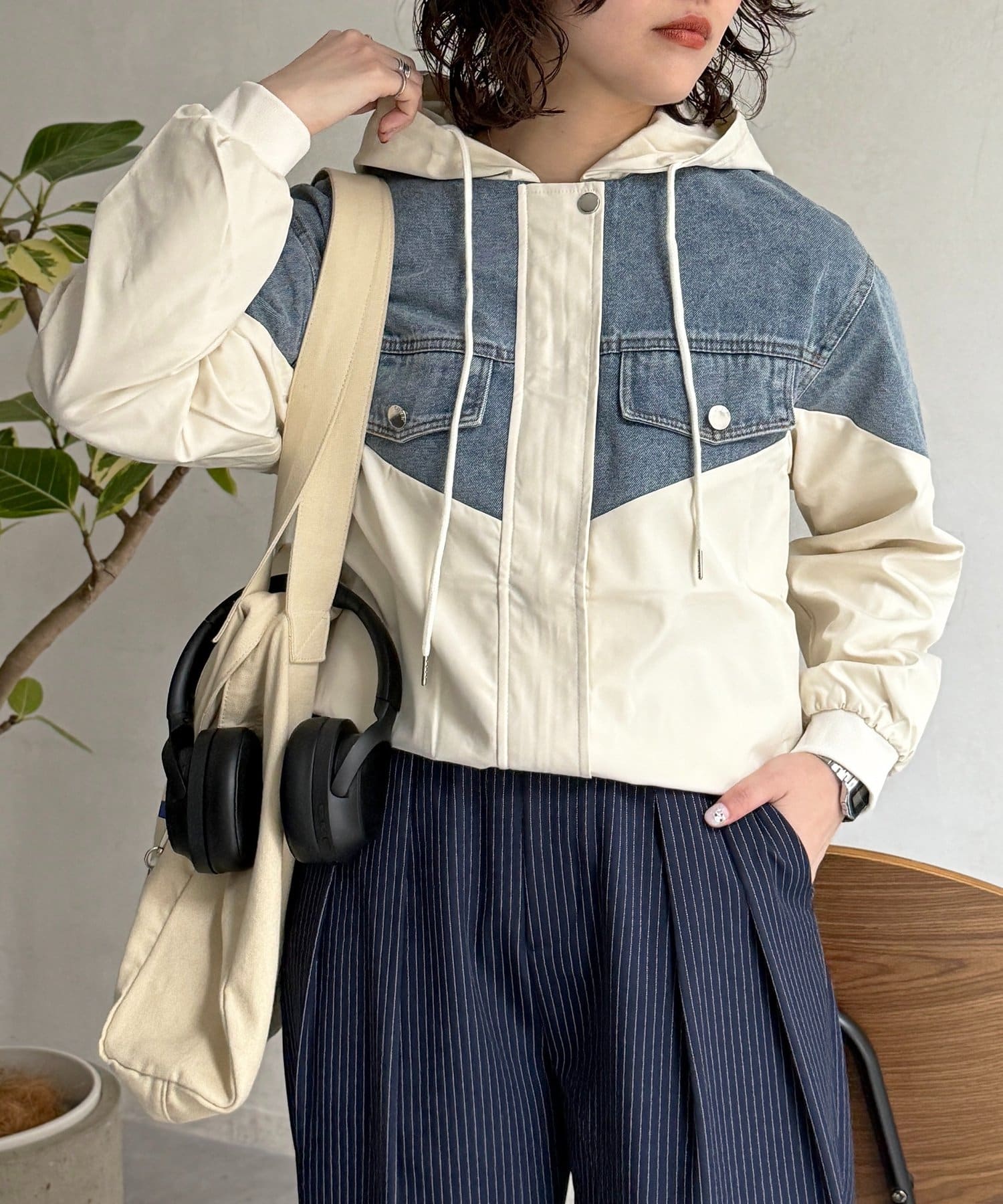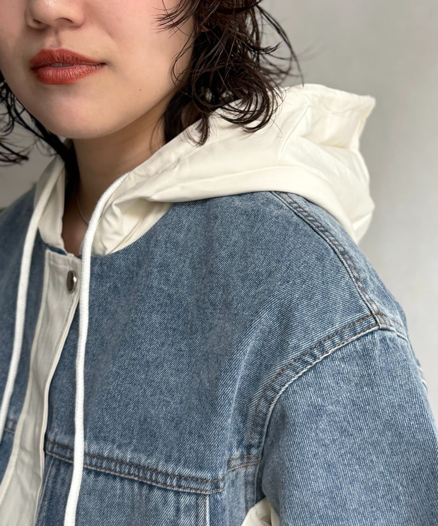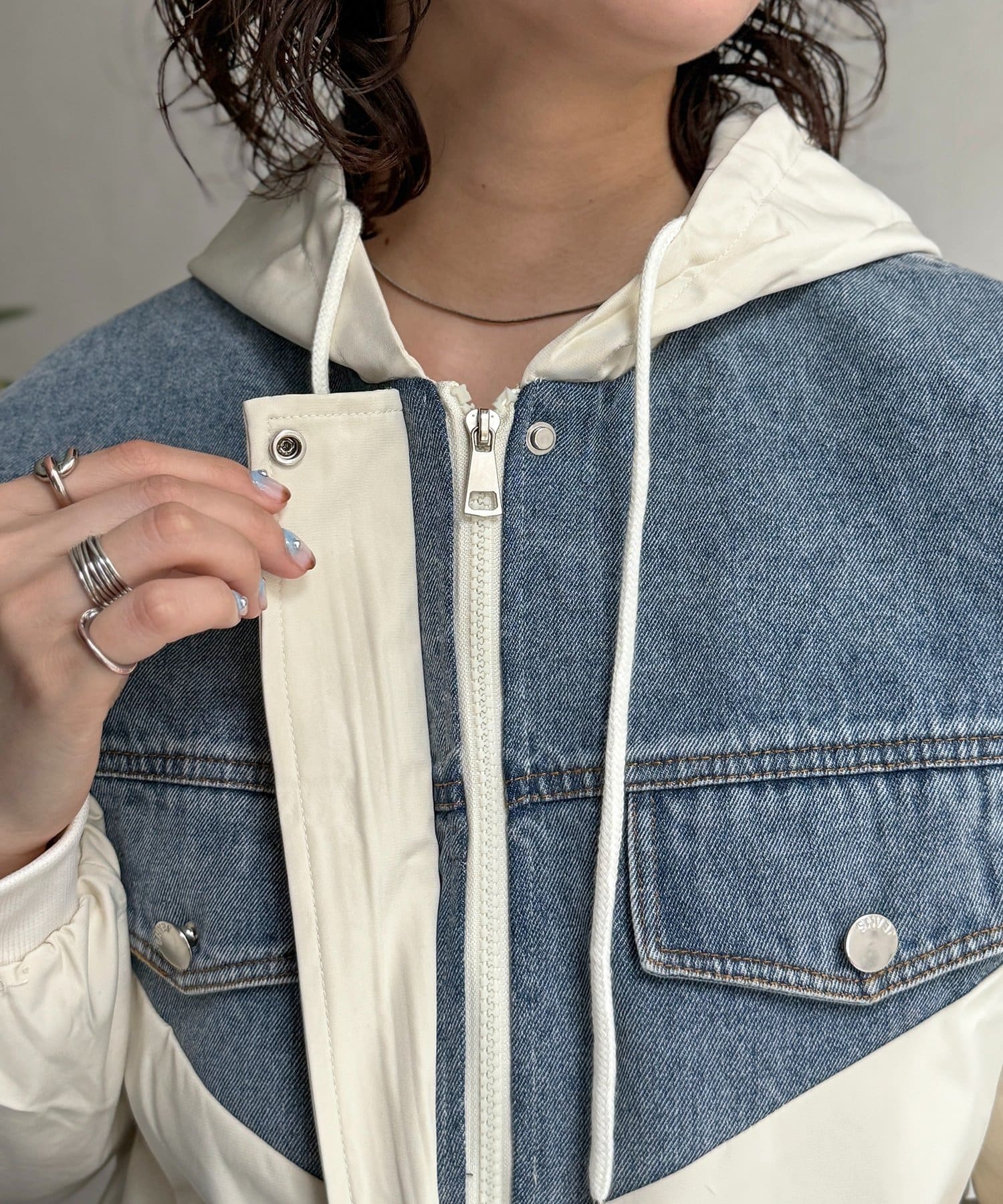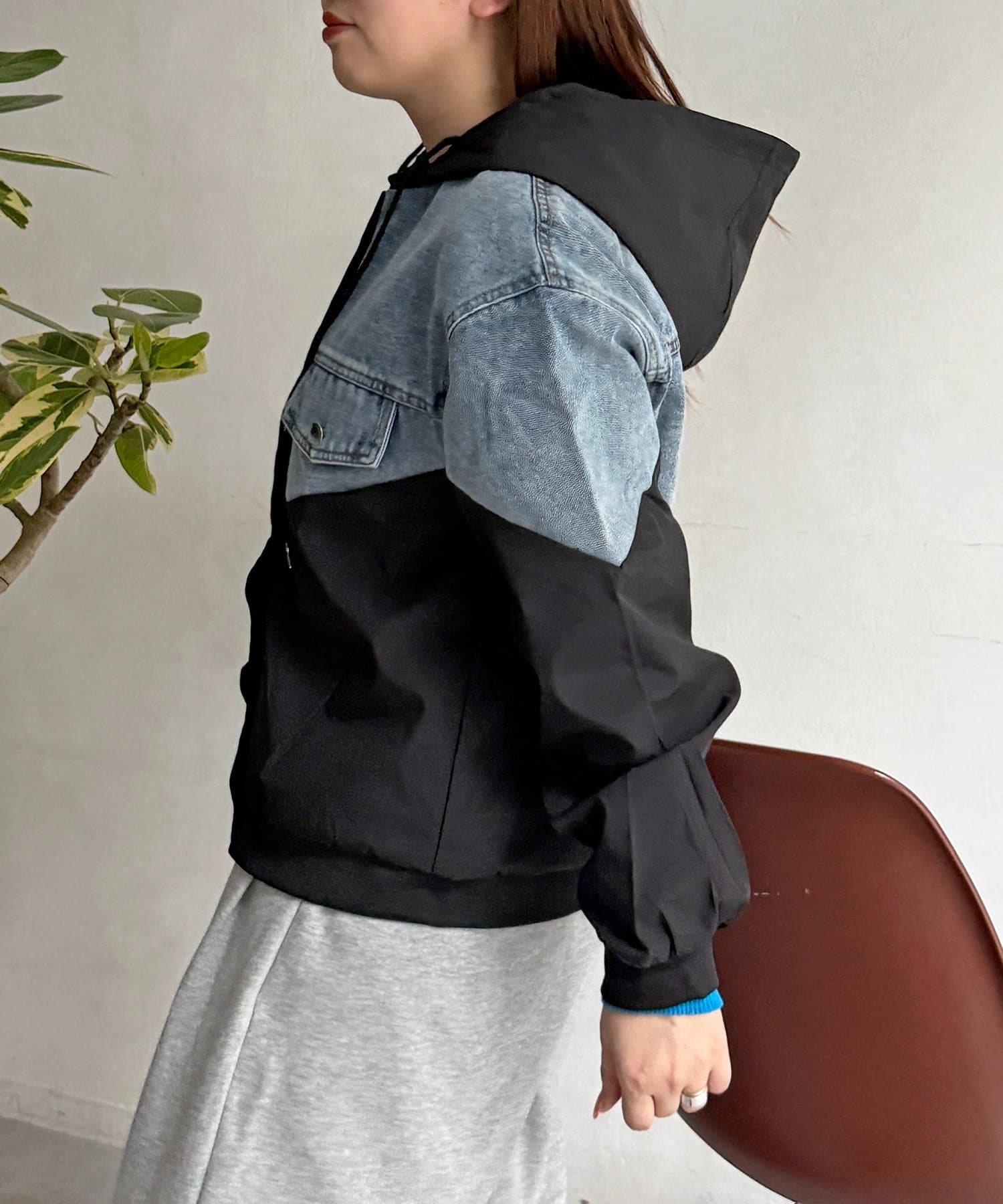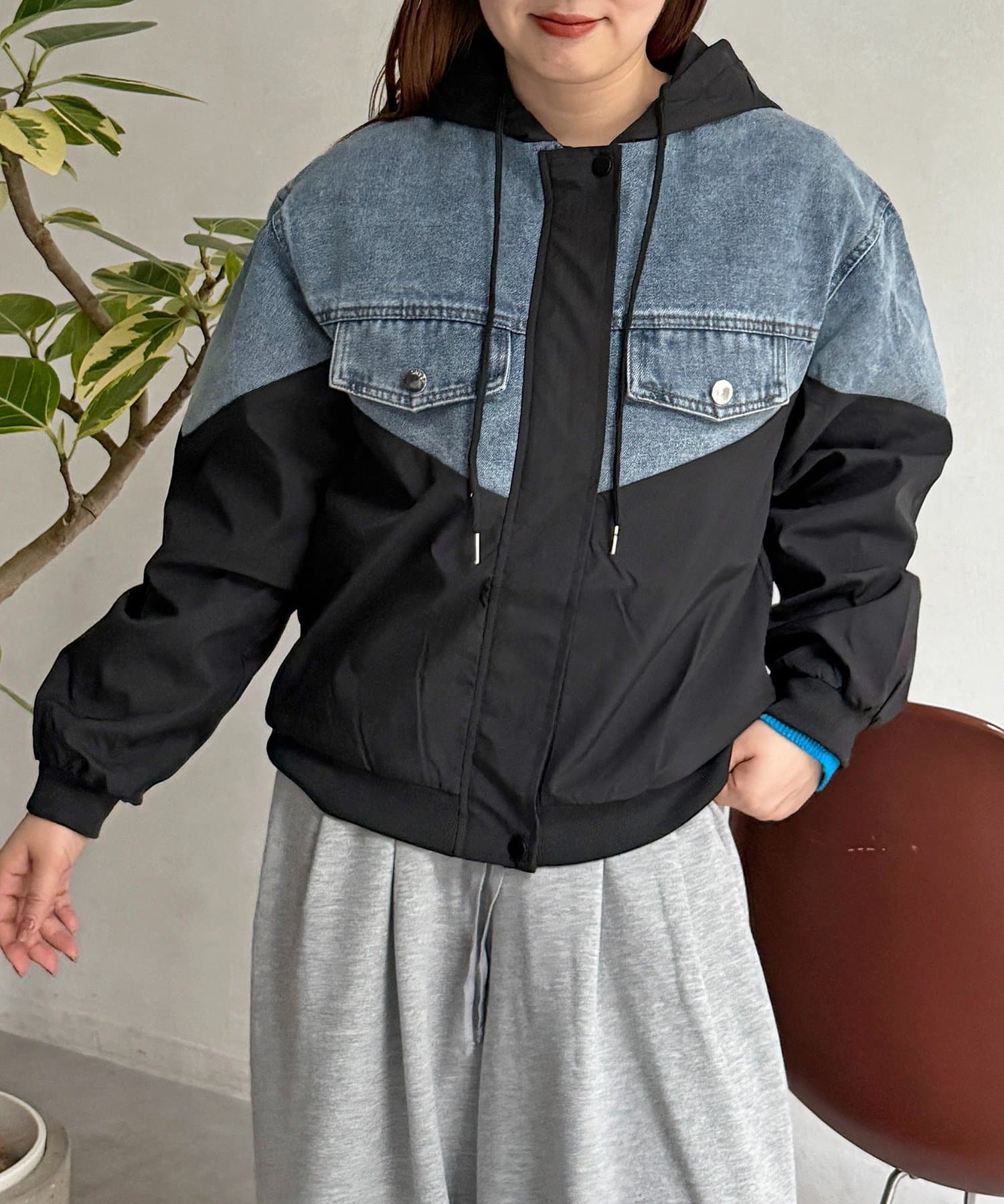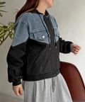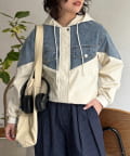 デニム切替フードブルゾン