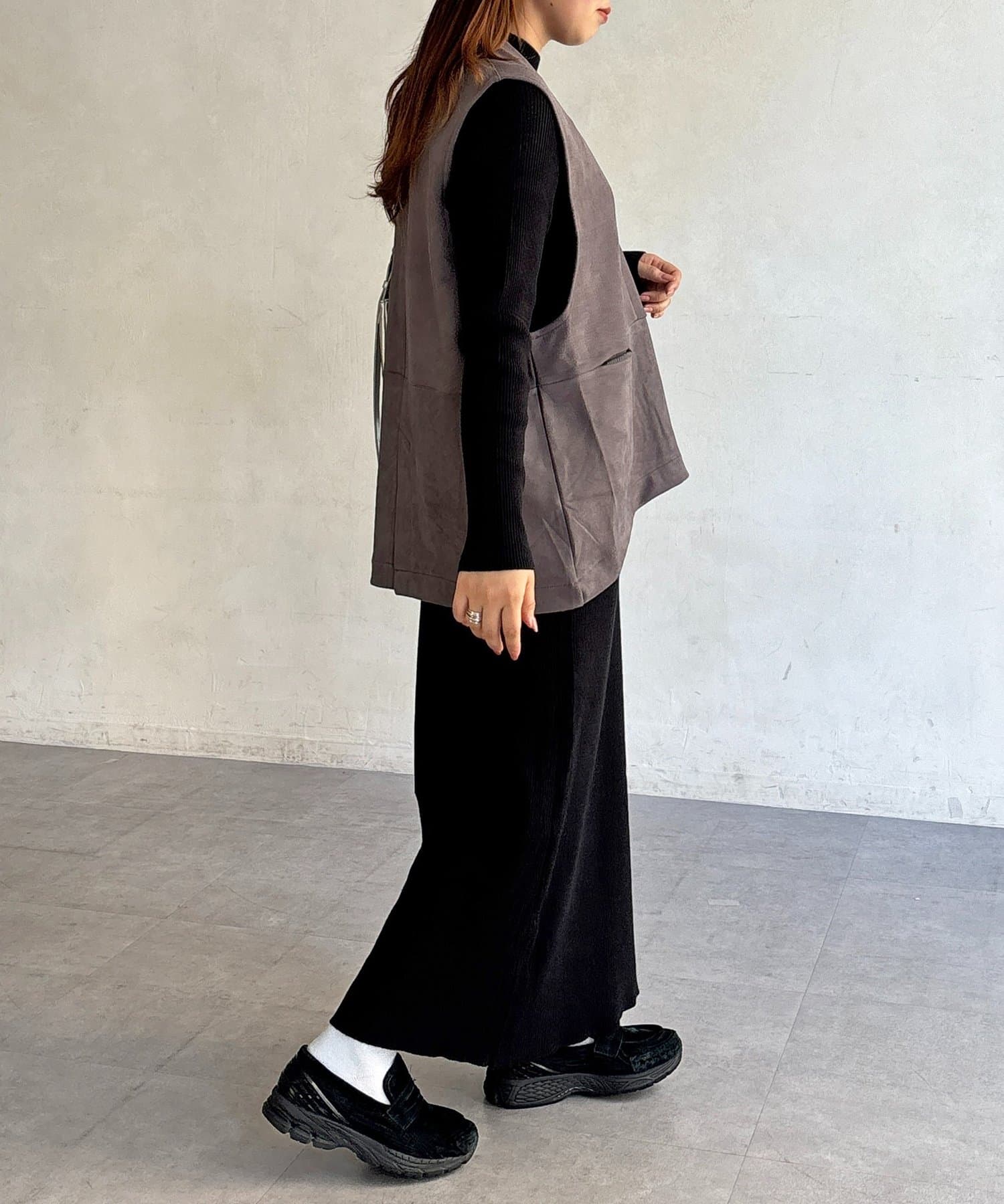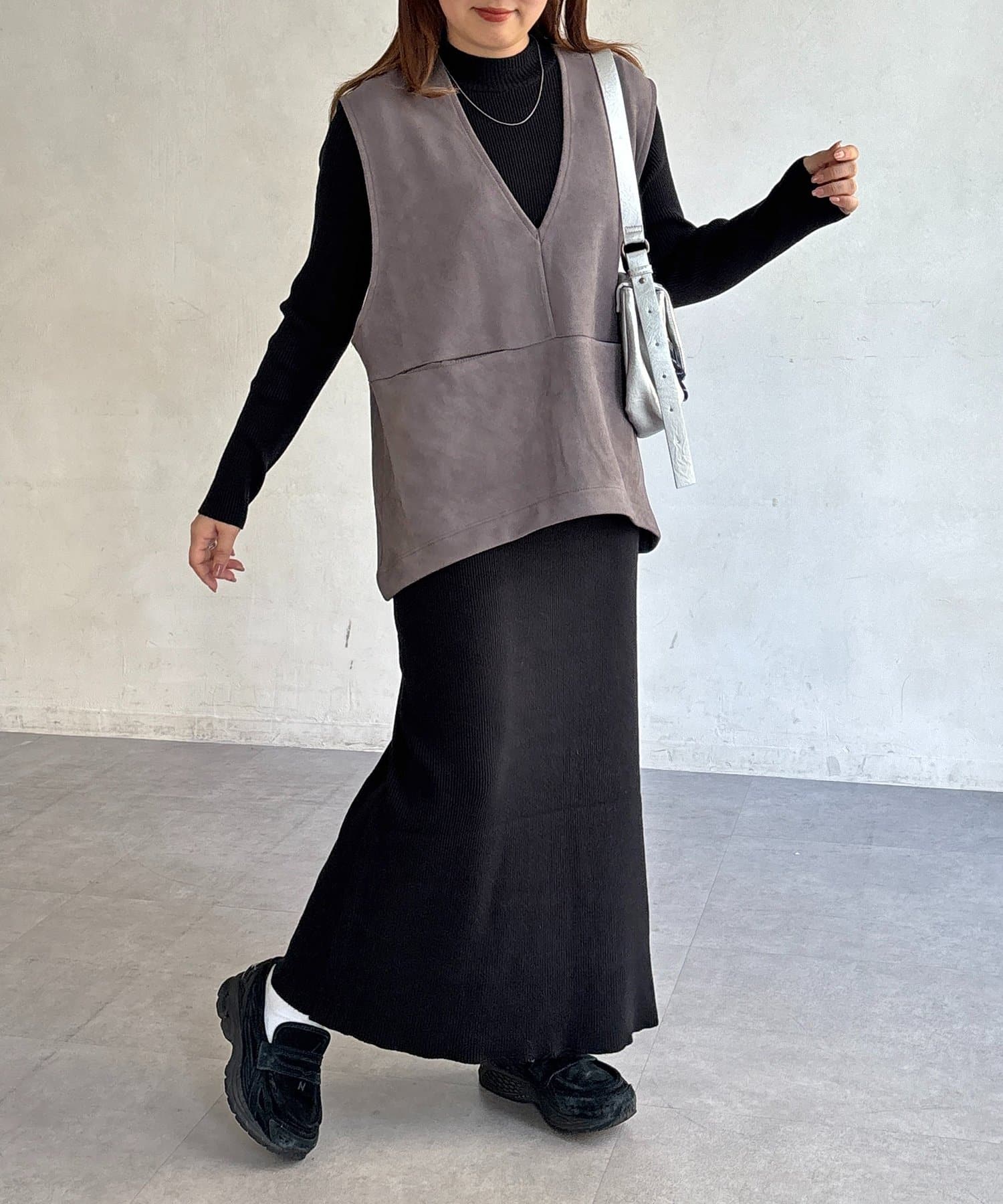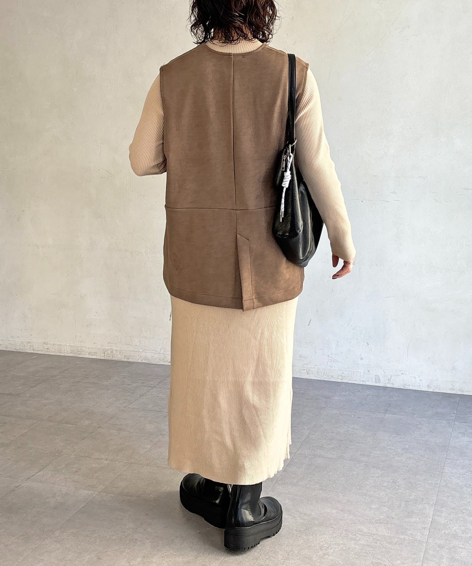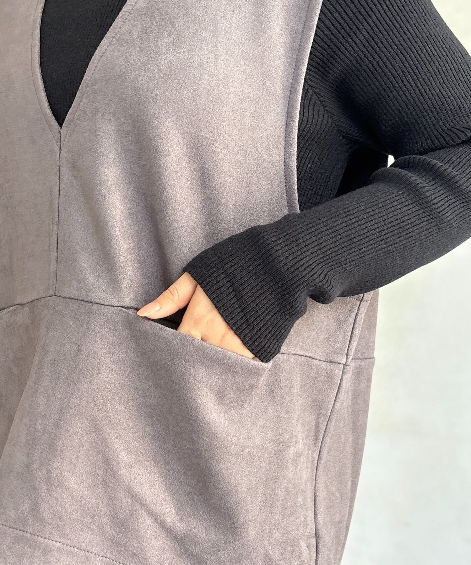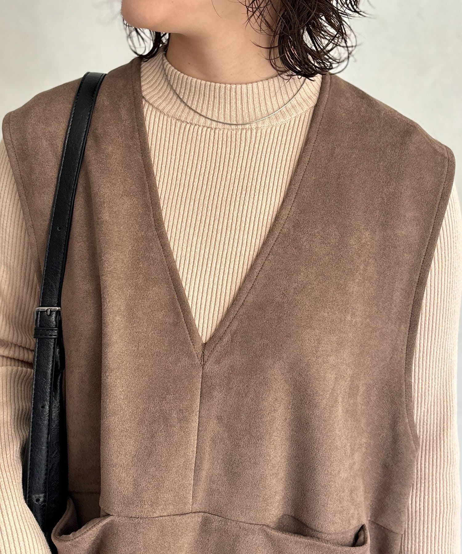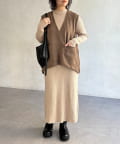 フェイクスエードベストセットニットワンピース