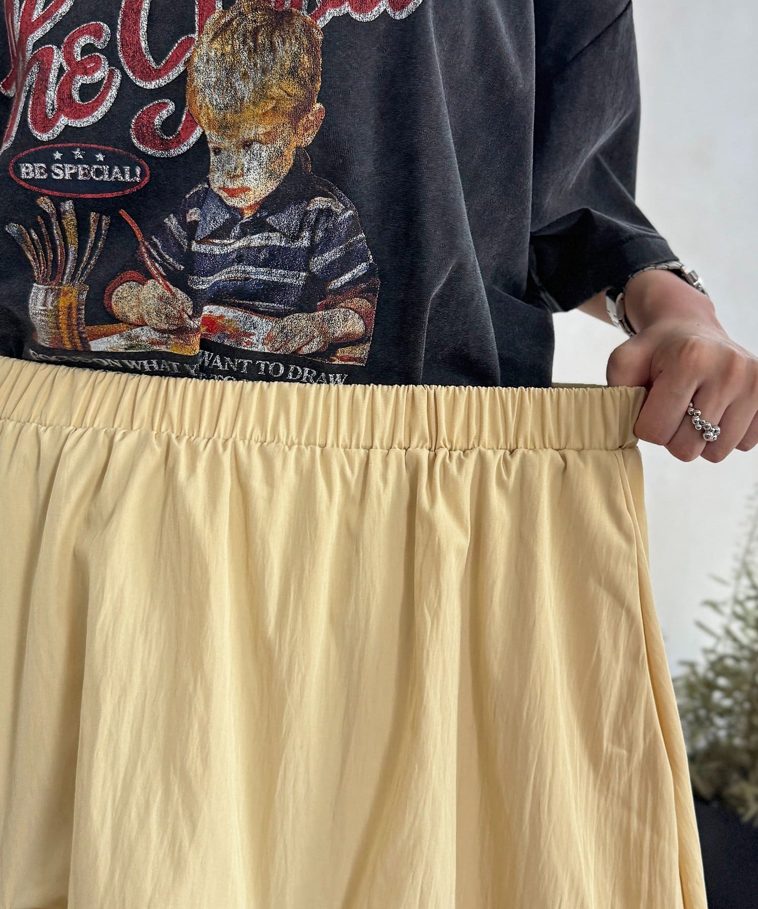 ウエストは総ゴム仕様で、リラックス感がありながらもすっきりとした印象で着用いただけます。