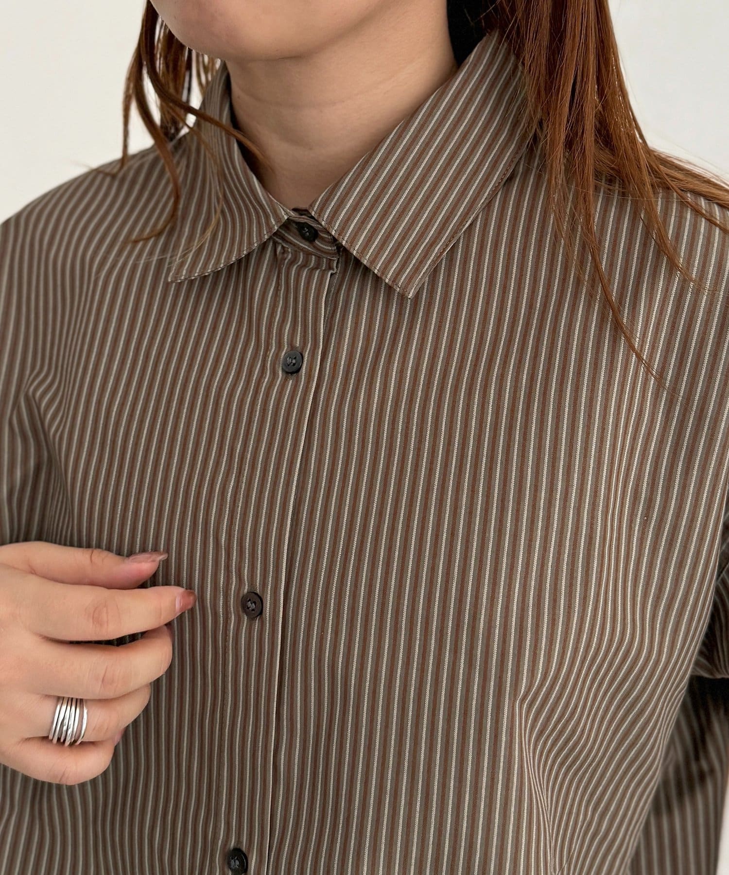 ・コーディネートに馴染みやすい、落ち着いたカラーのストライプ柄。