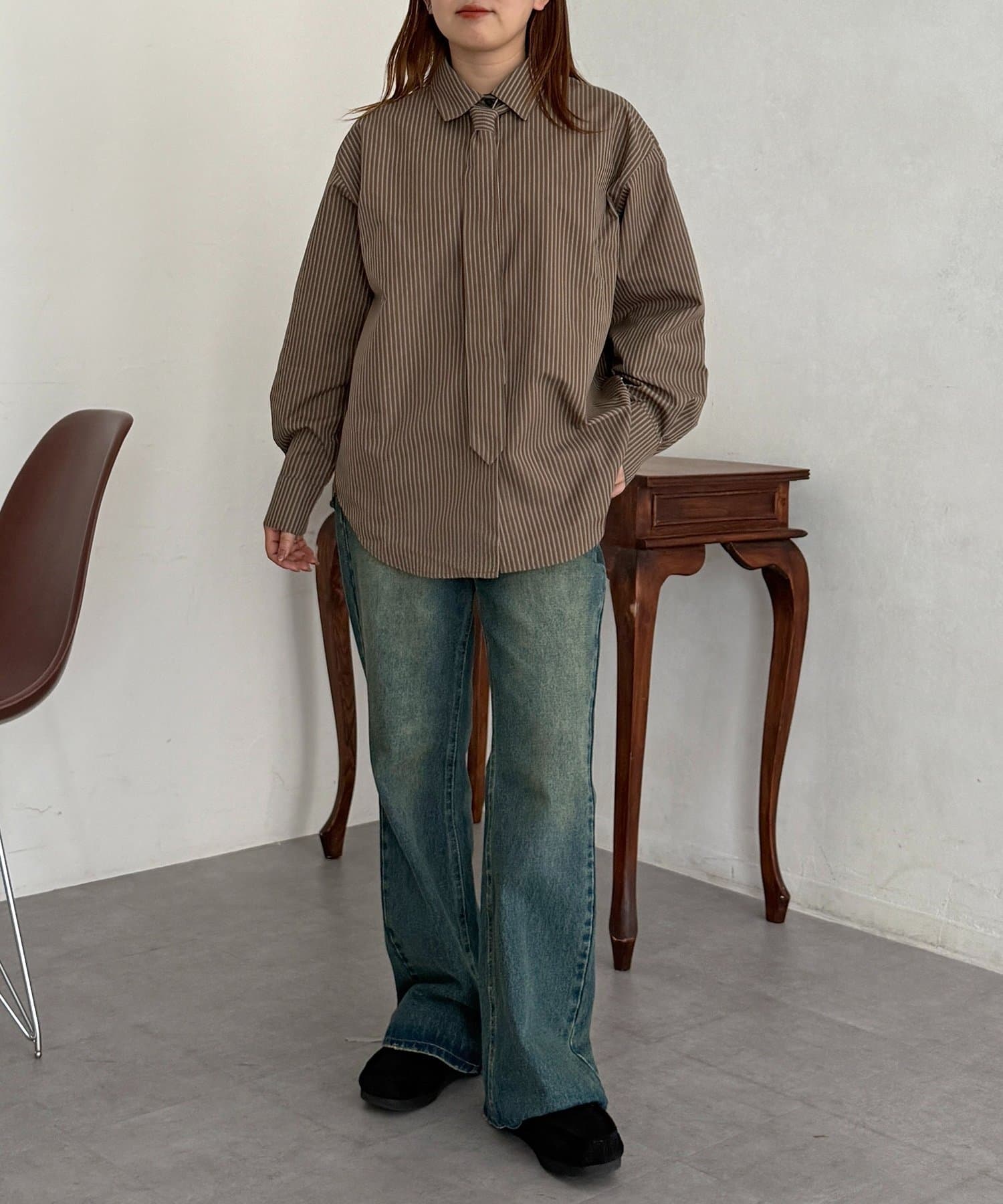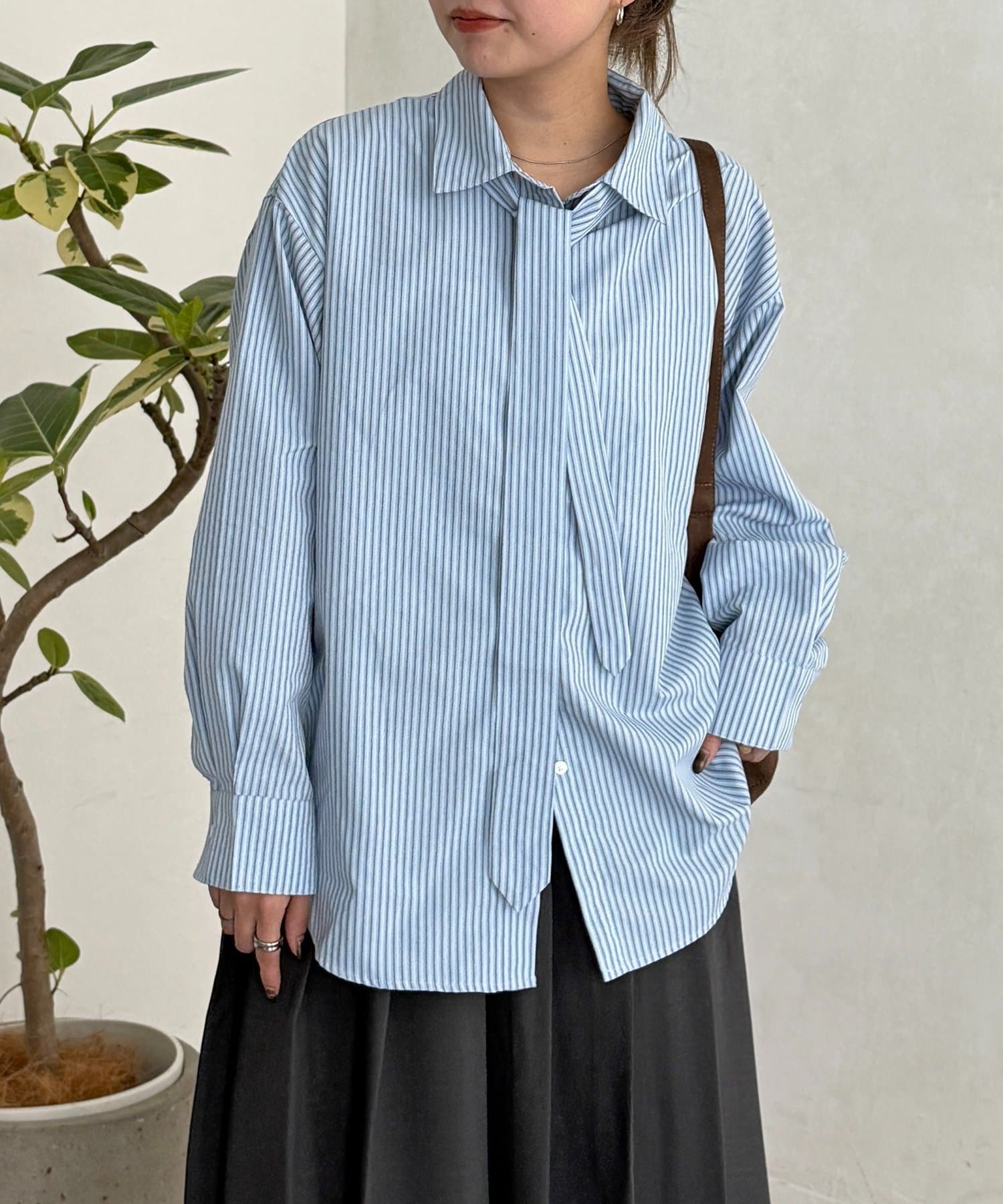 ネクタイ付きで遊び心満載◎着こなし自由なルーズシャツ