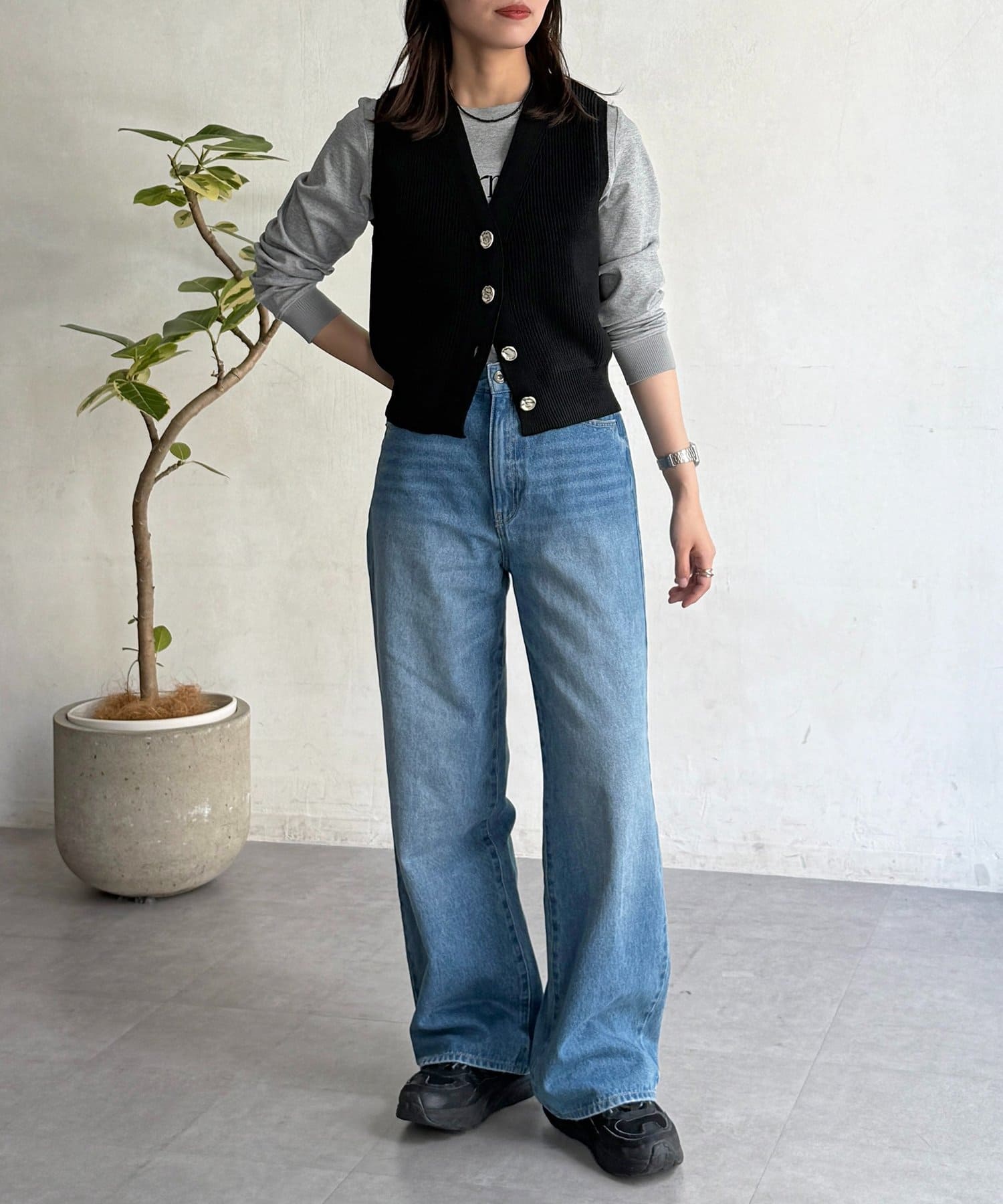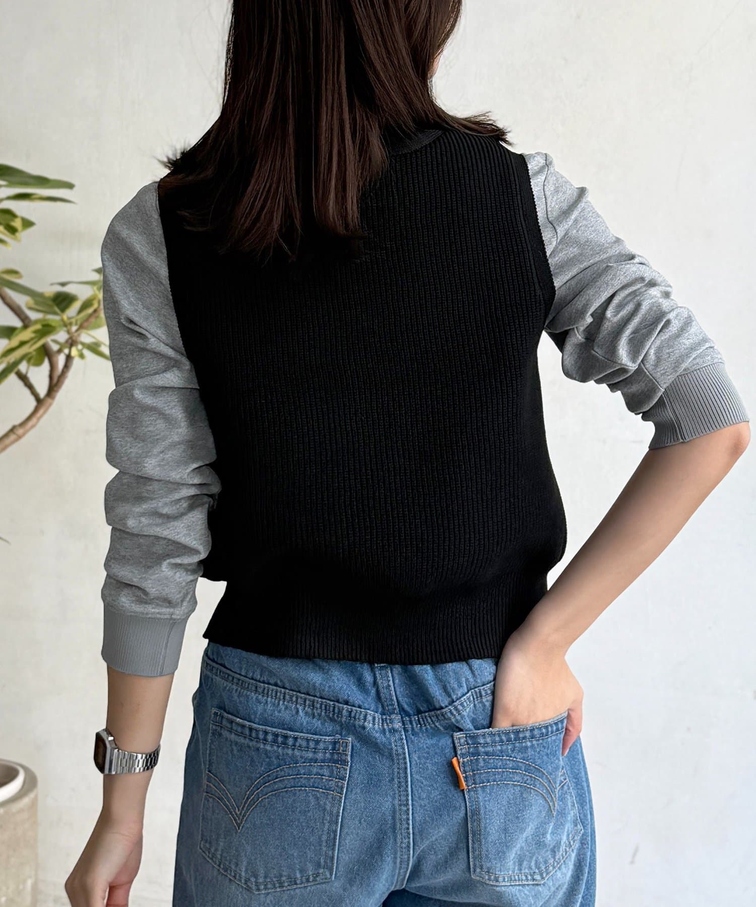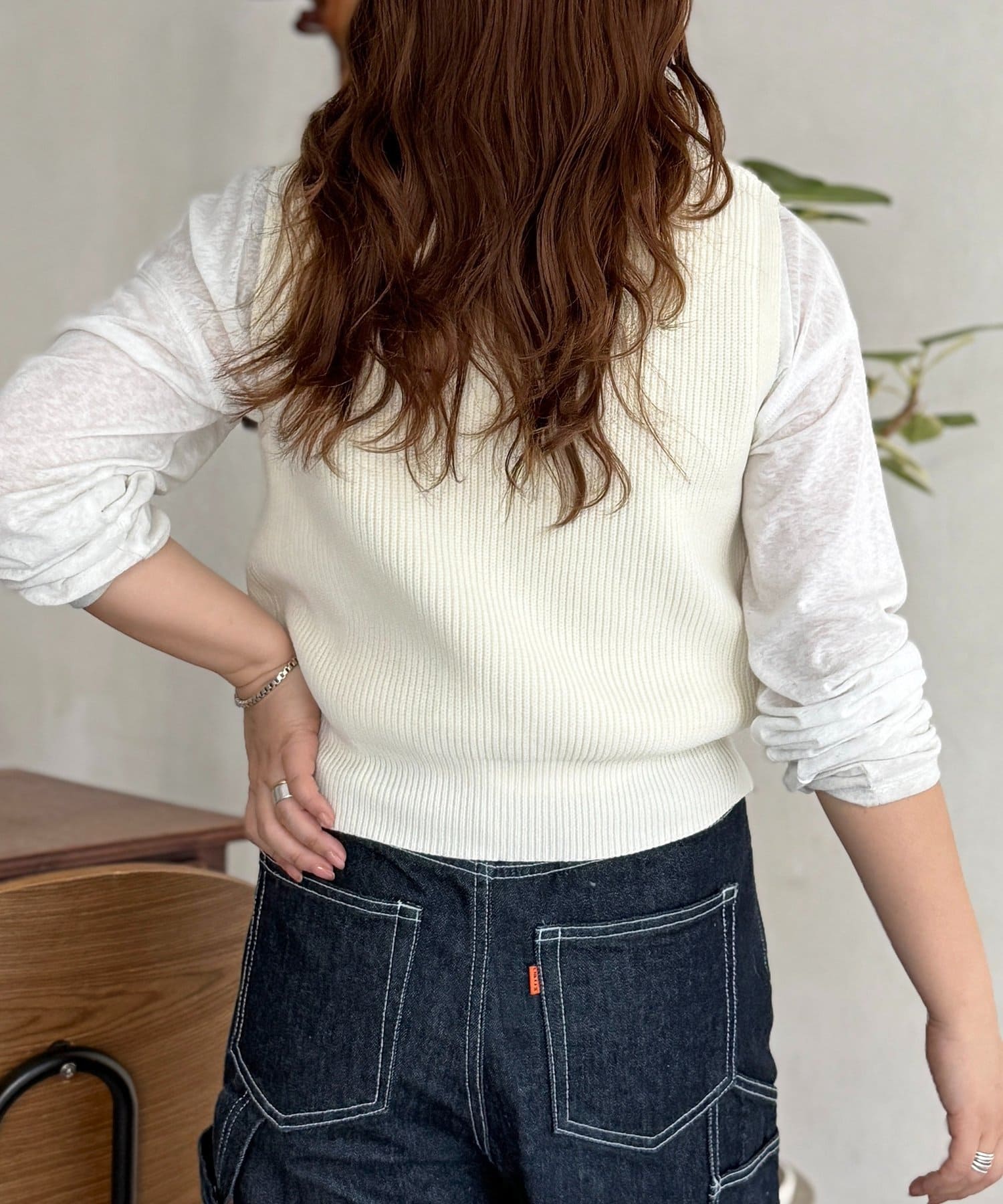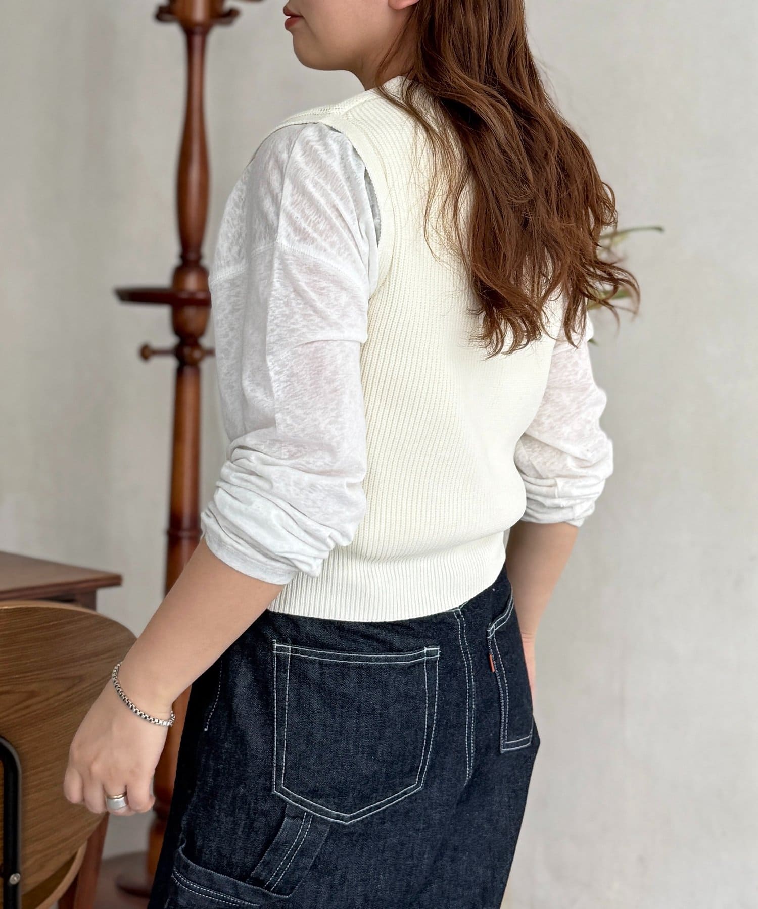 シャツやカットソーに重ねるだけで、旬なレイヤードスタイルが完成します。