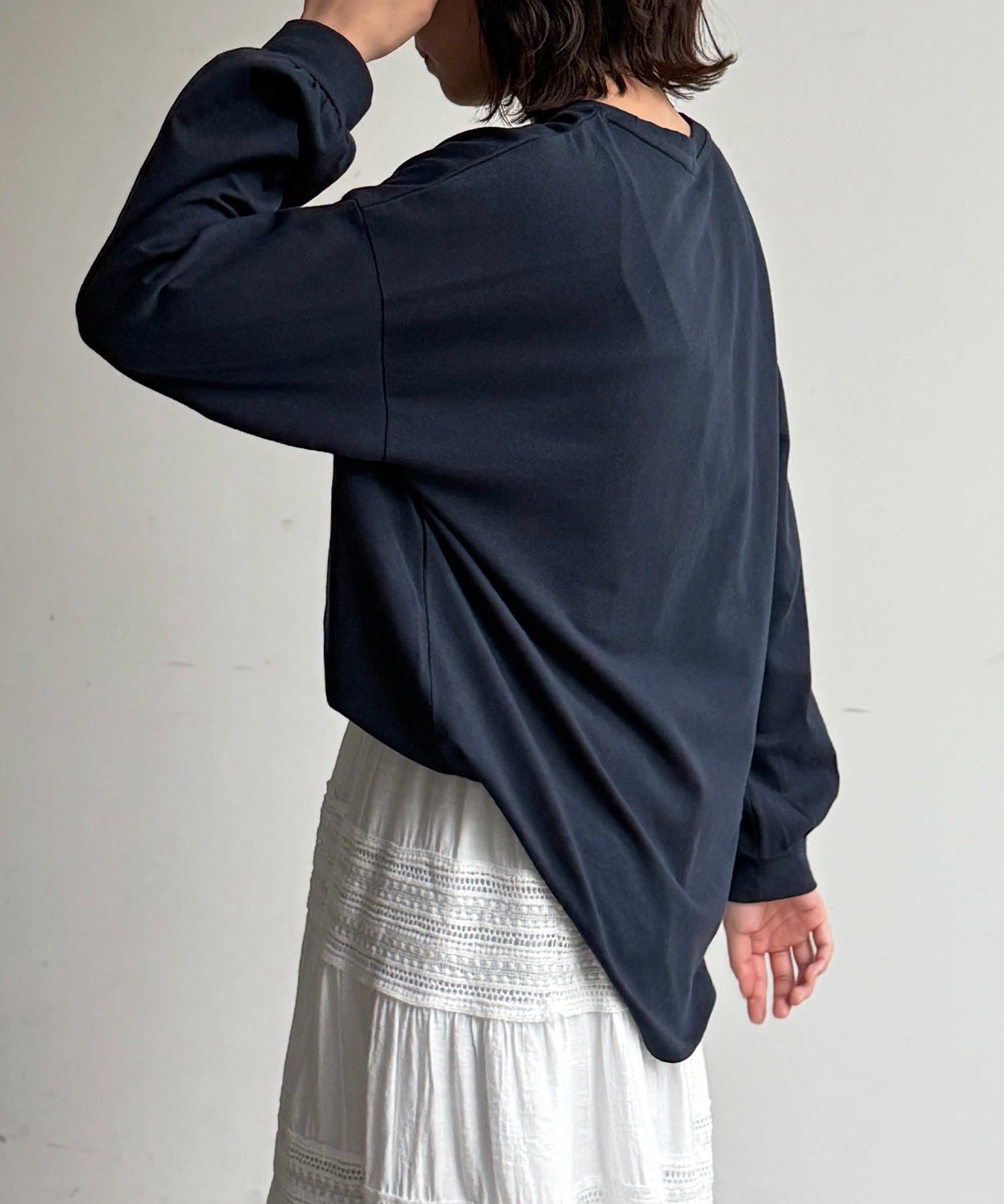 ・ボディラインを拾わない、リラックス感のあるオーバーサイズシルエット