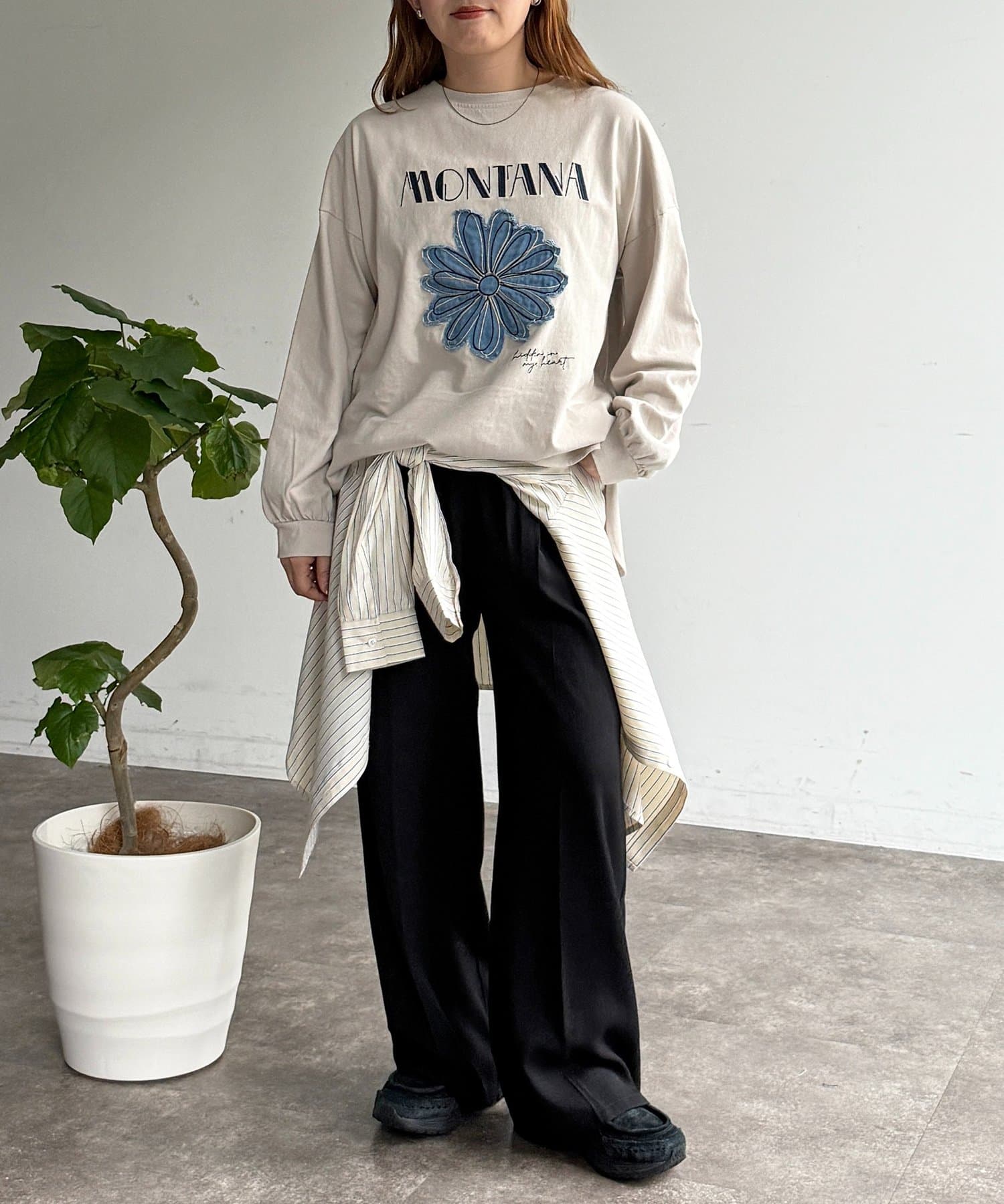 ゆったりとしたシルエットで、リラックス感がありながらもラフになりすぎない絶妙なバランスが魅力です!