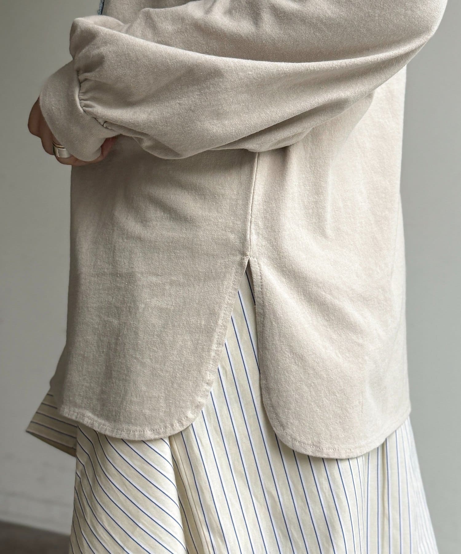 ・一枚で着映えするのはもちろん、カーディガンやジャケットのインナーとしても活躍