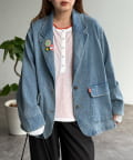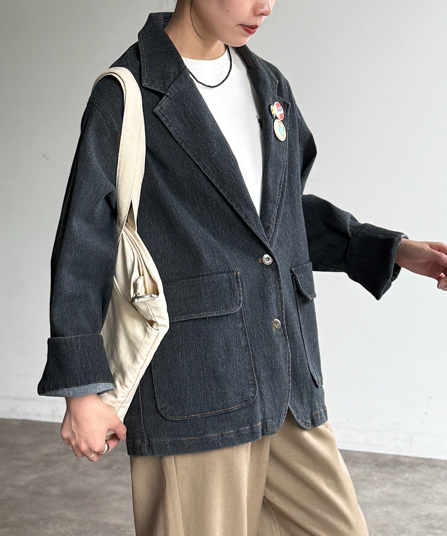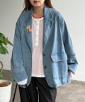 可愛い缶バッジ付き!カジュアルにも着こなせるデニムテーラードジャケット