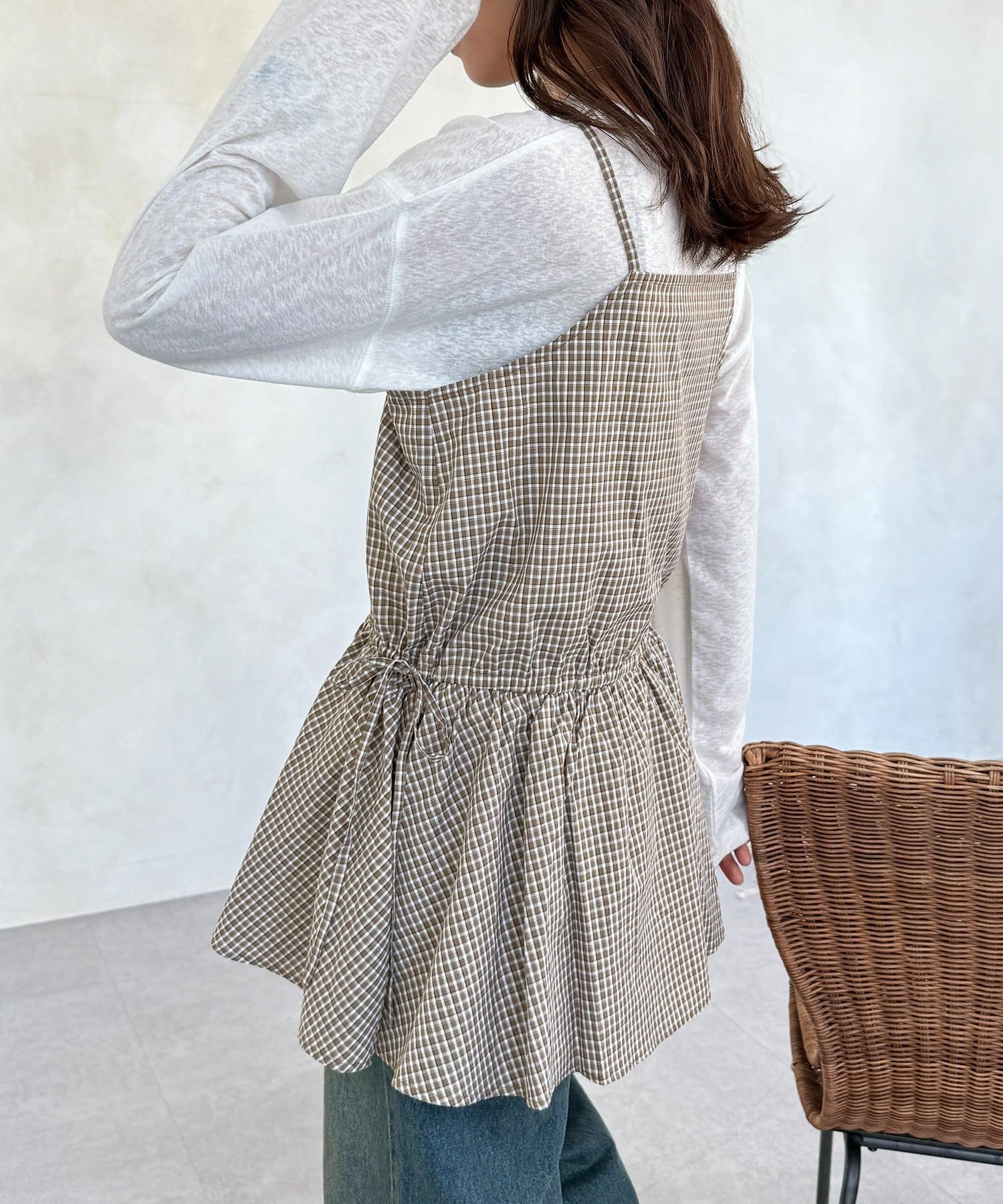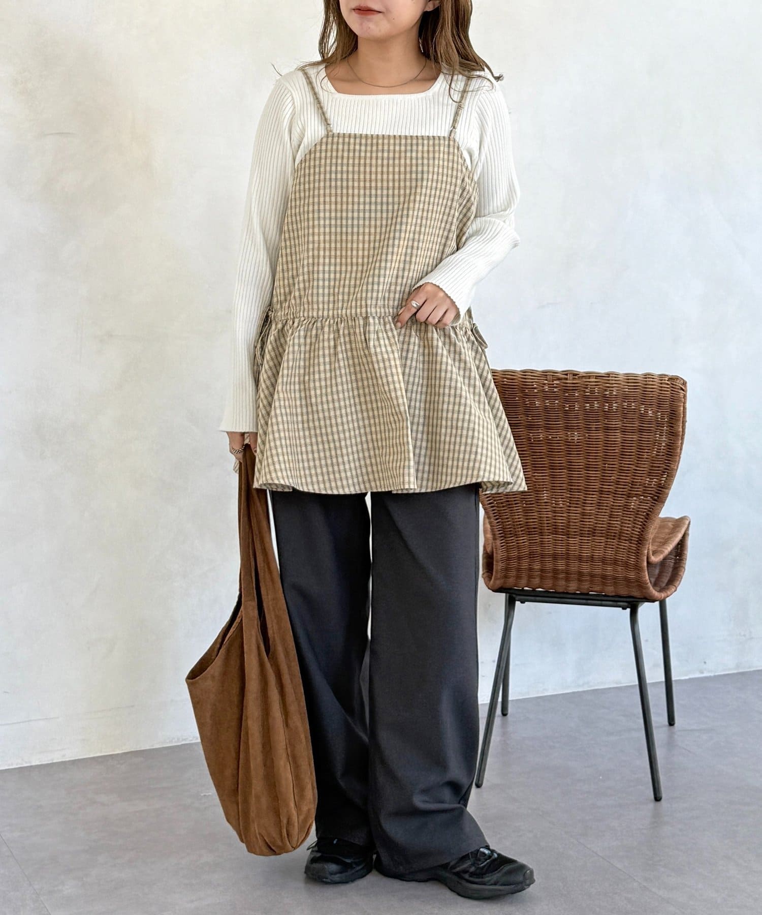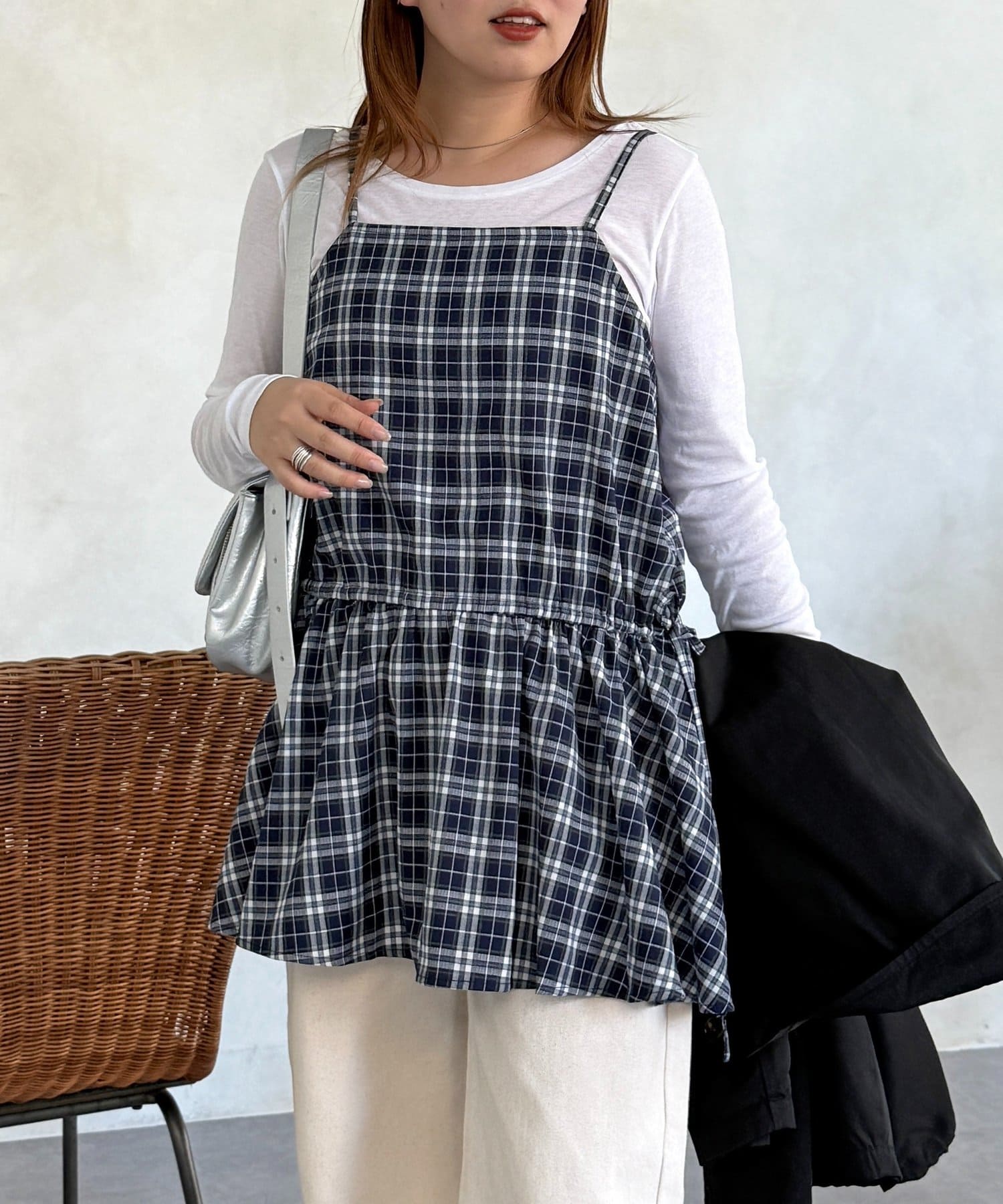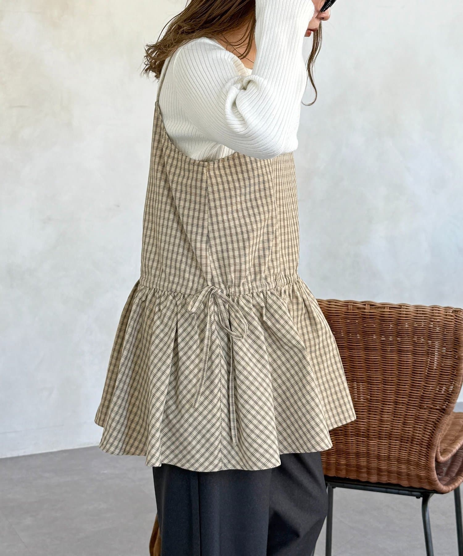 落ち着いた色味のチェック柄が、大人カジュアルにぴったりのキャミチュニックです!