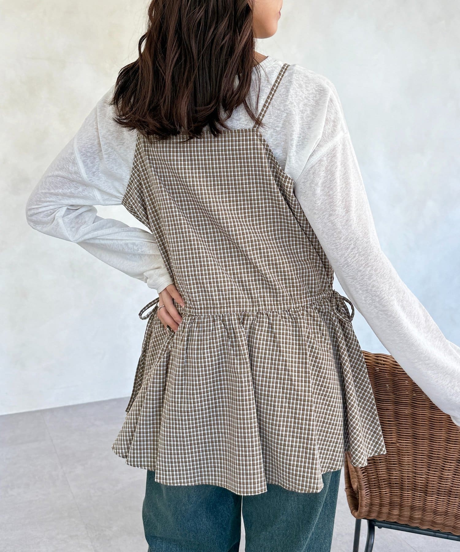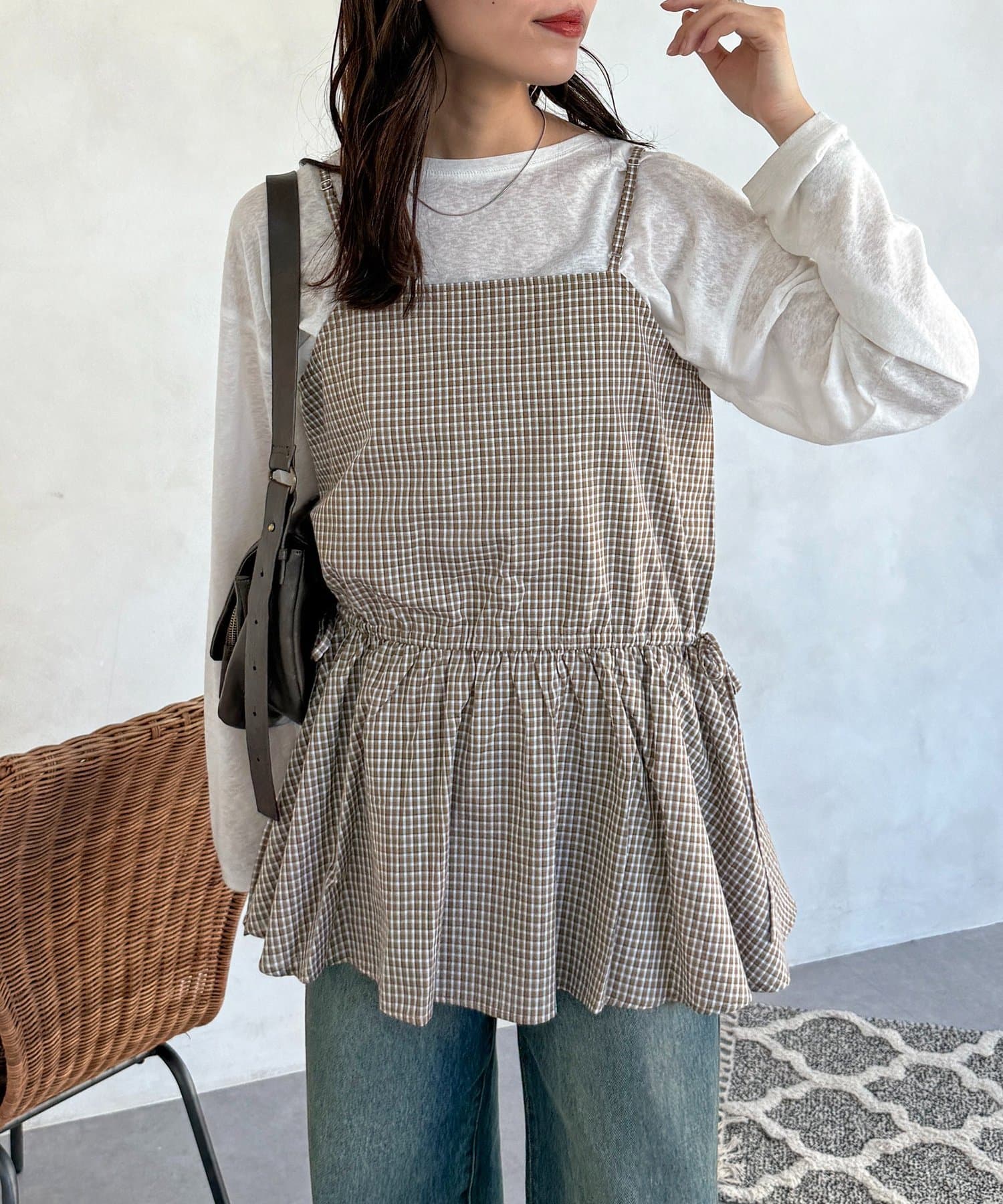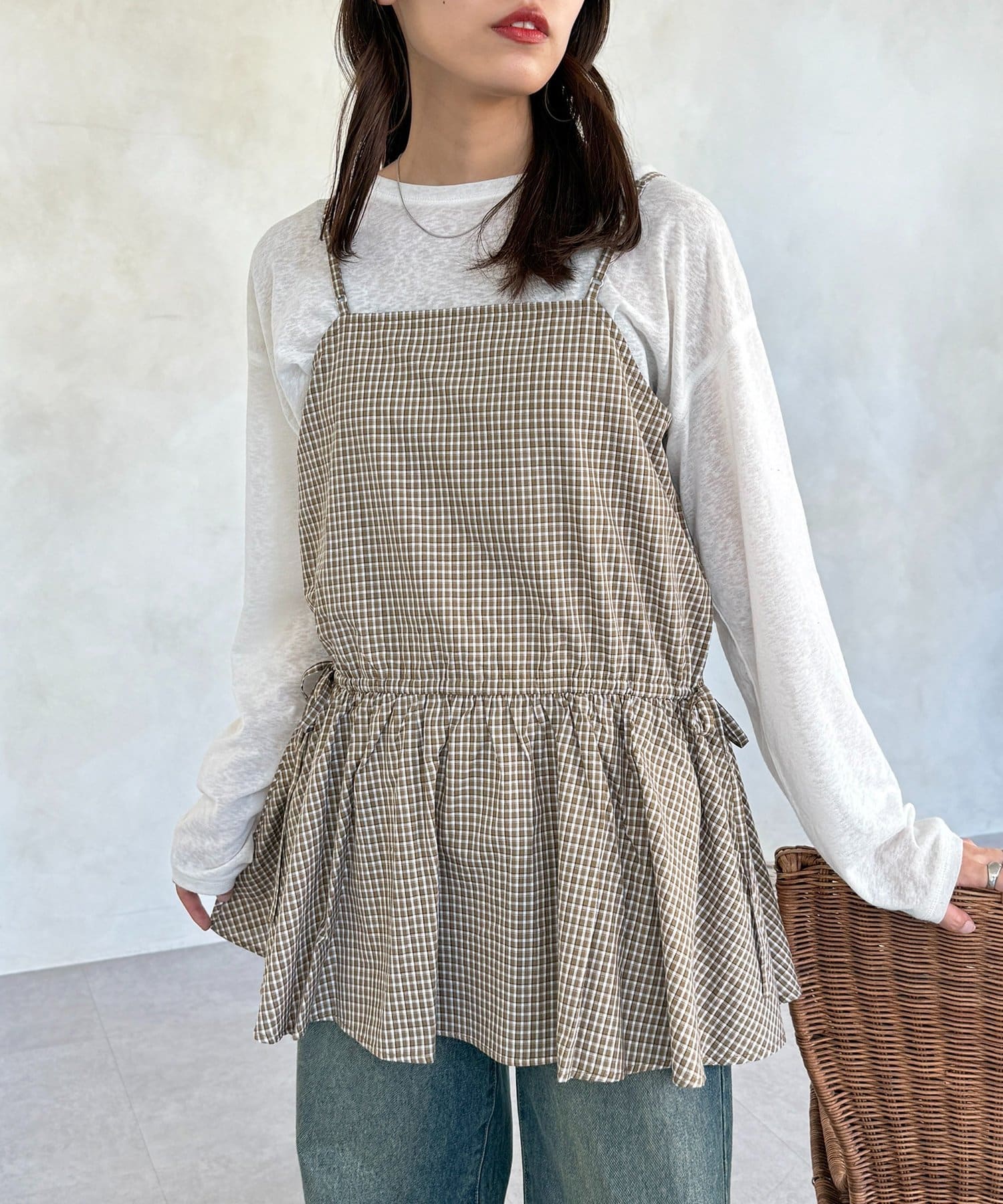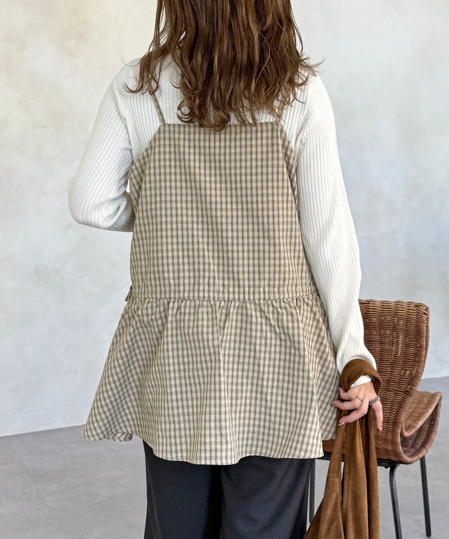 落ち着いた色味のチェック柄が、大人カジュアルにぴったりのキャミチュニックです!
