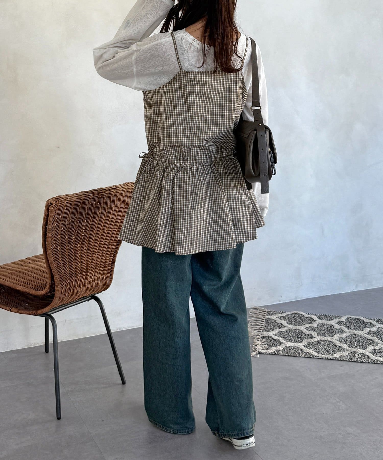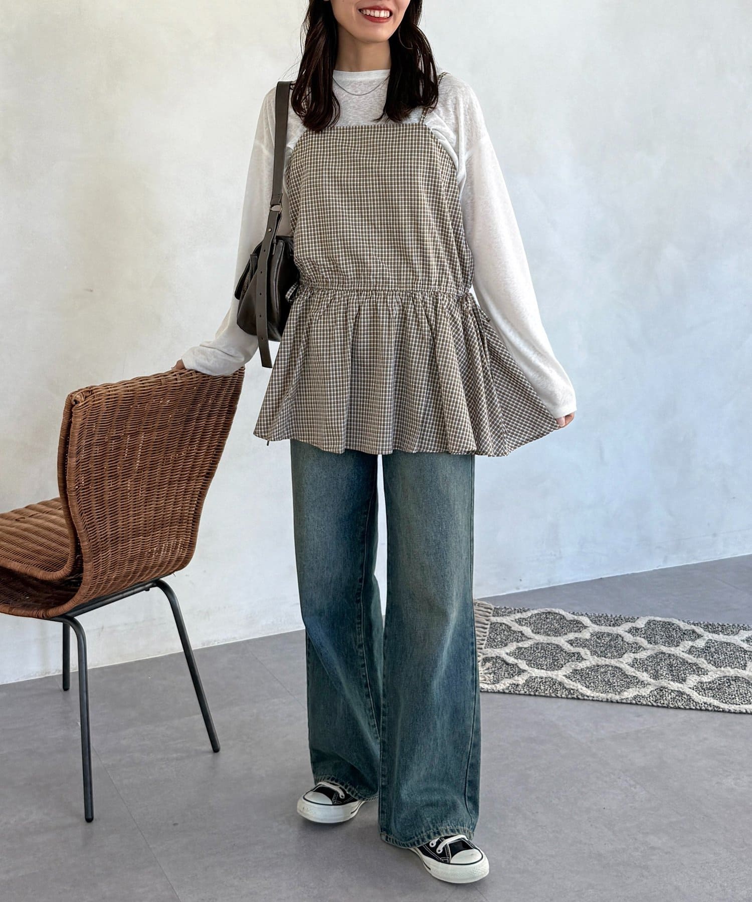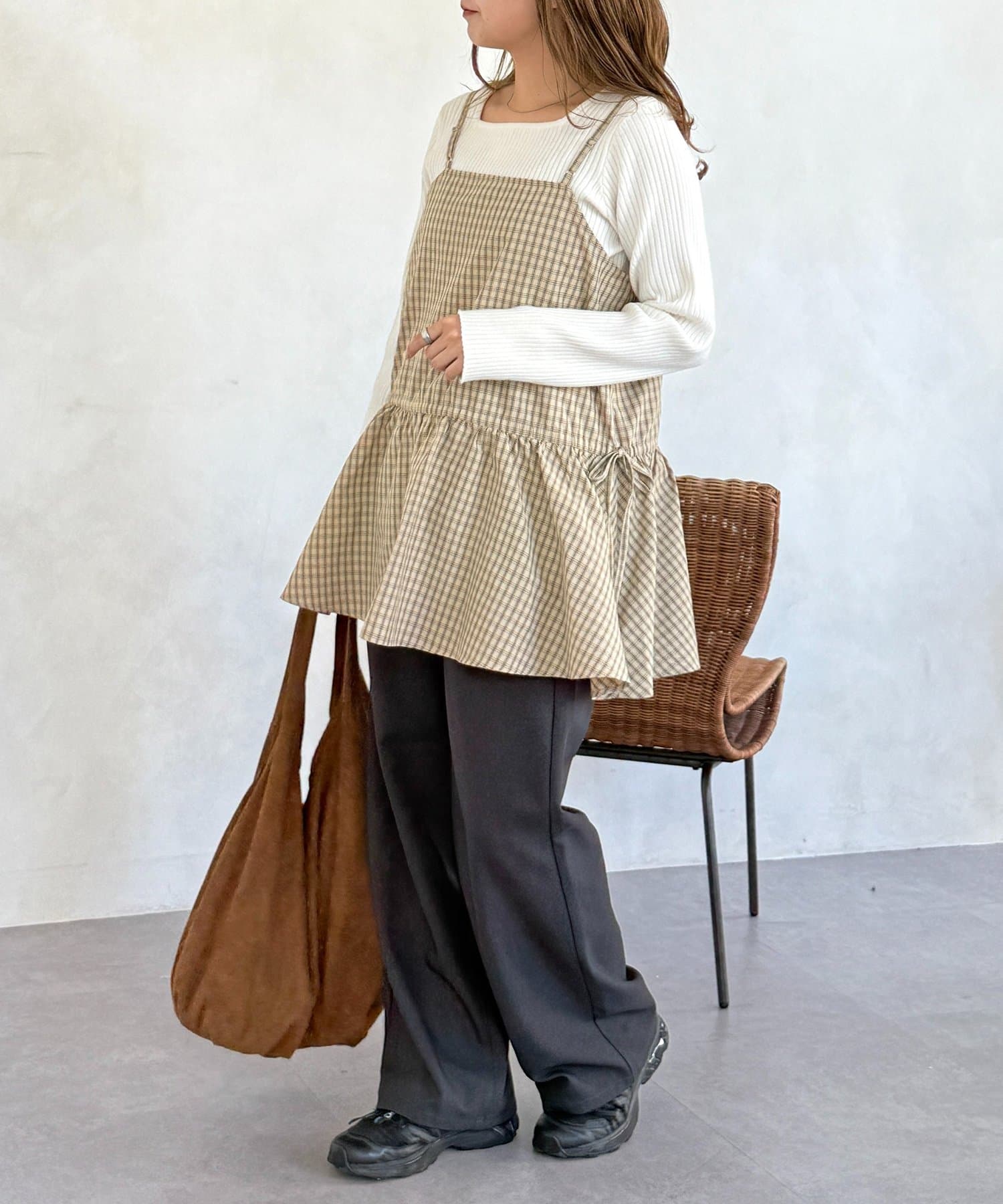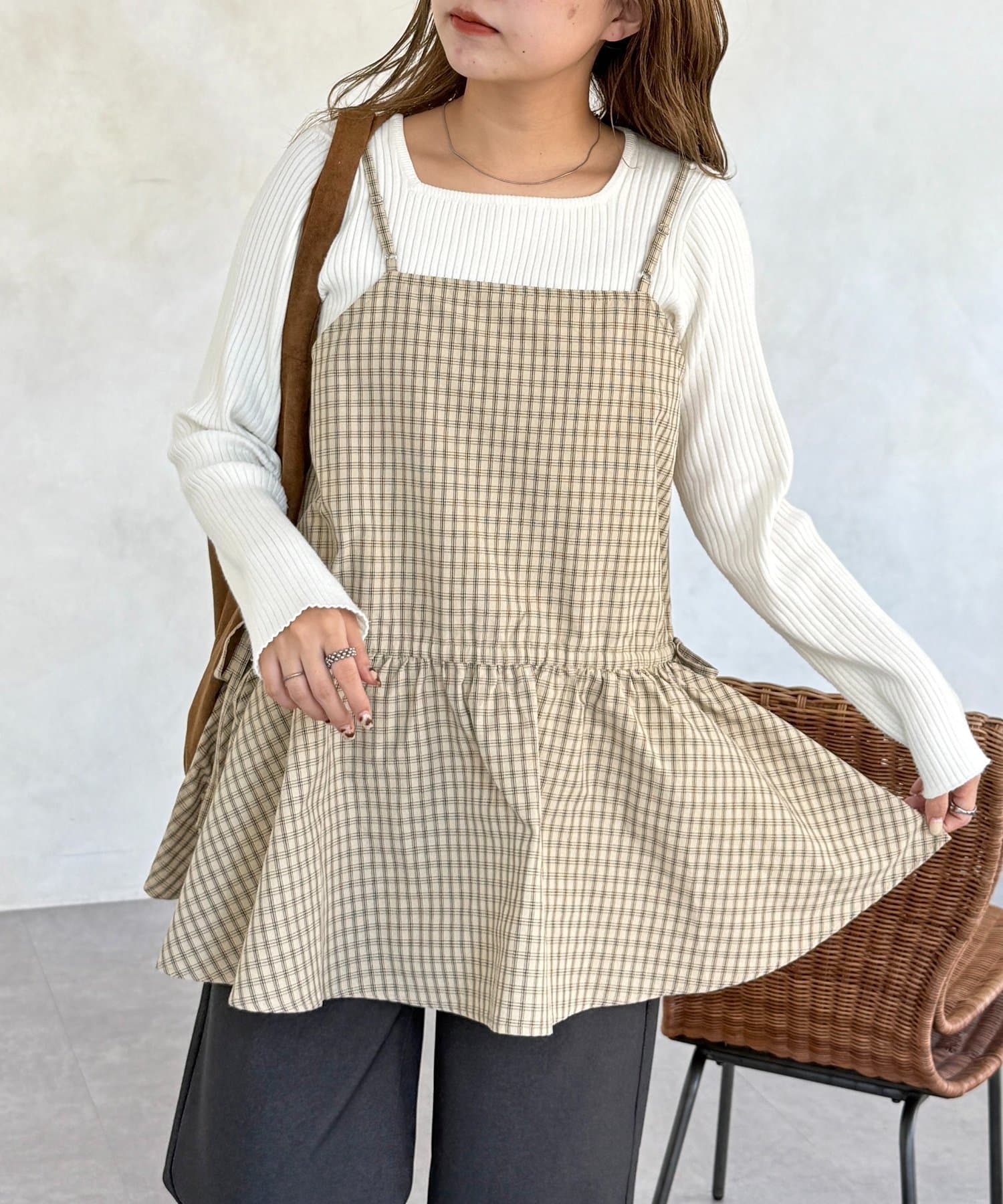 落ち着いた色味のチェック柄が、大人カジュアルにぴったりのキャミチュニックです!