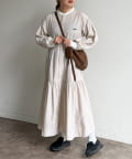 ふんわり広がるティアードデザインが女性らしさを引き立て、軽やかな印象を与えます。