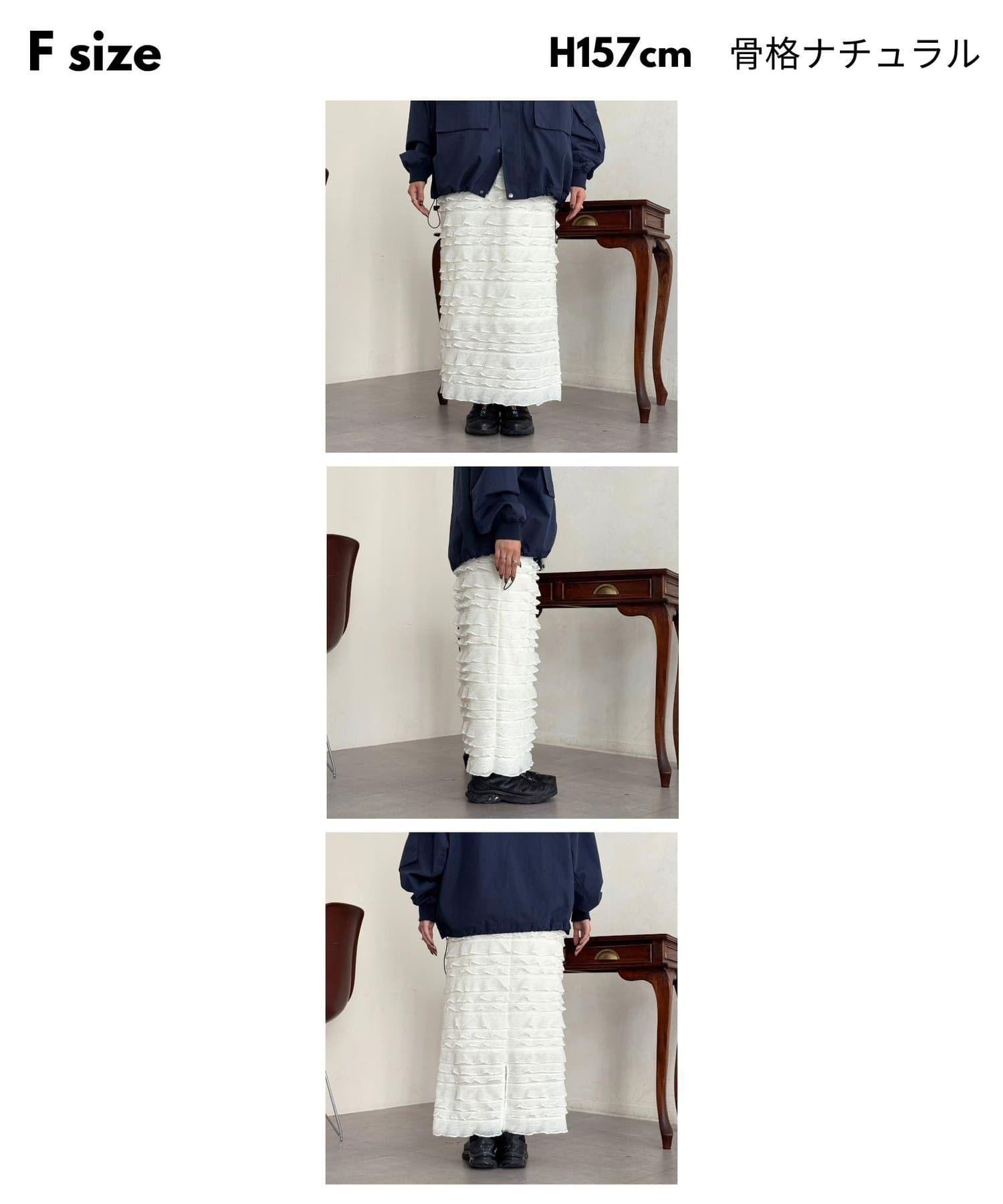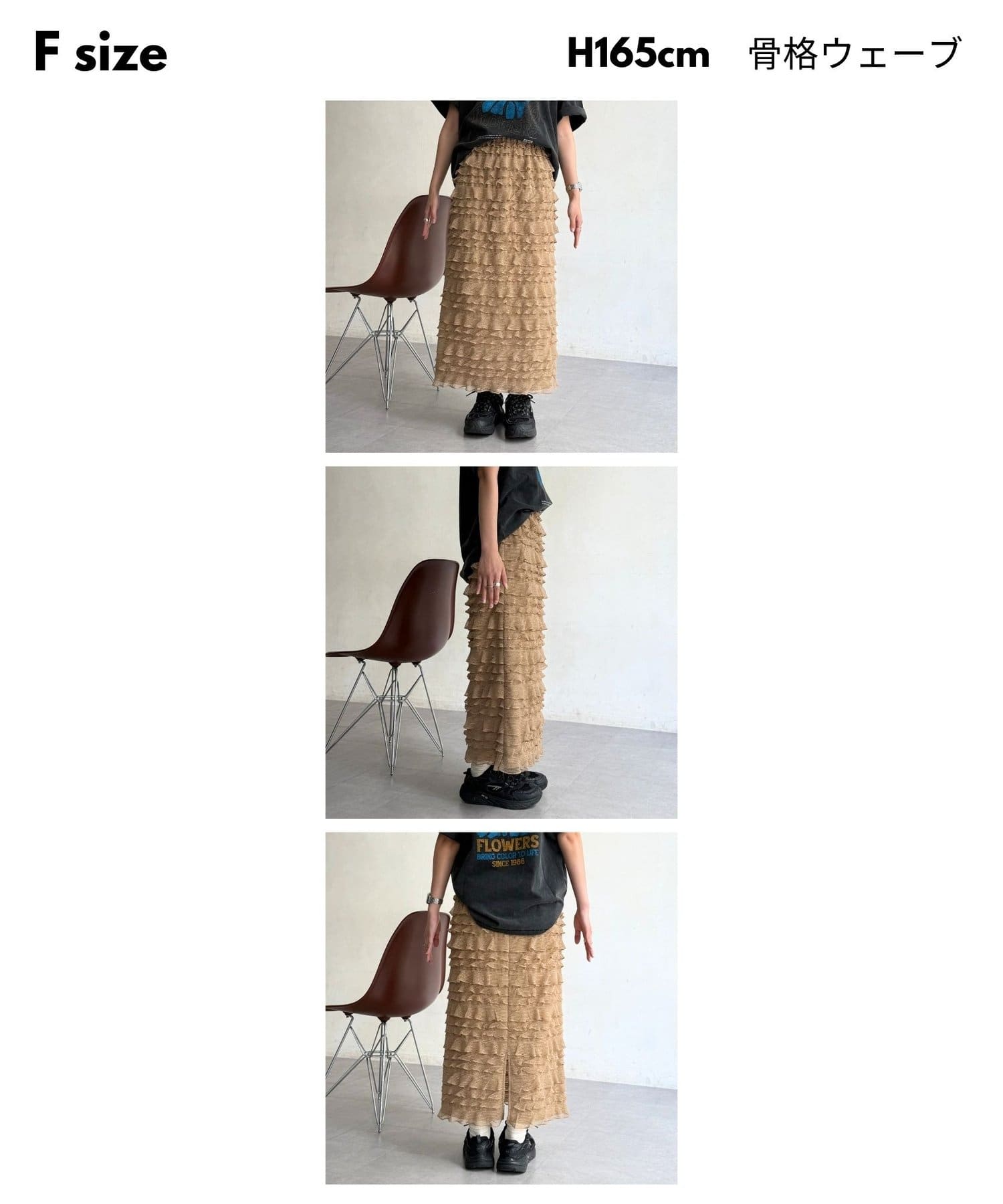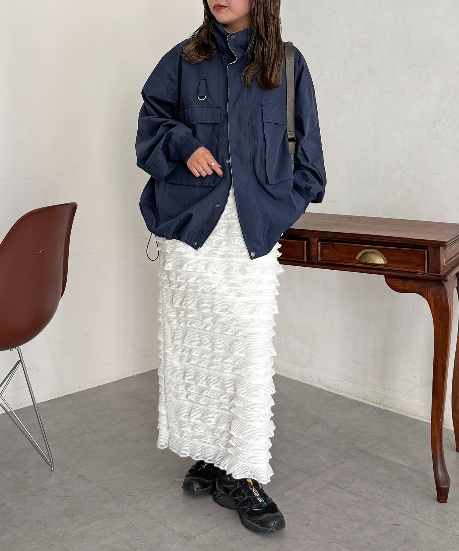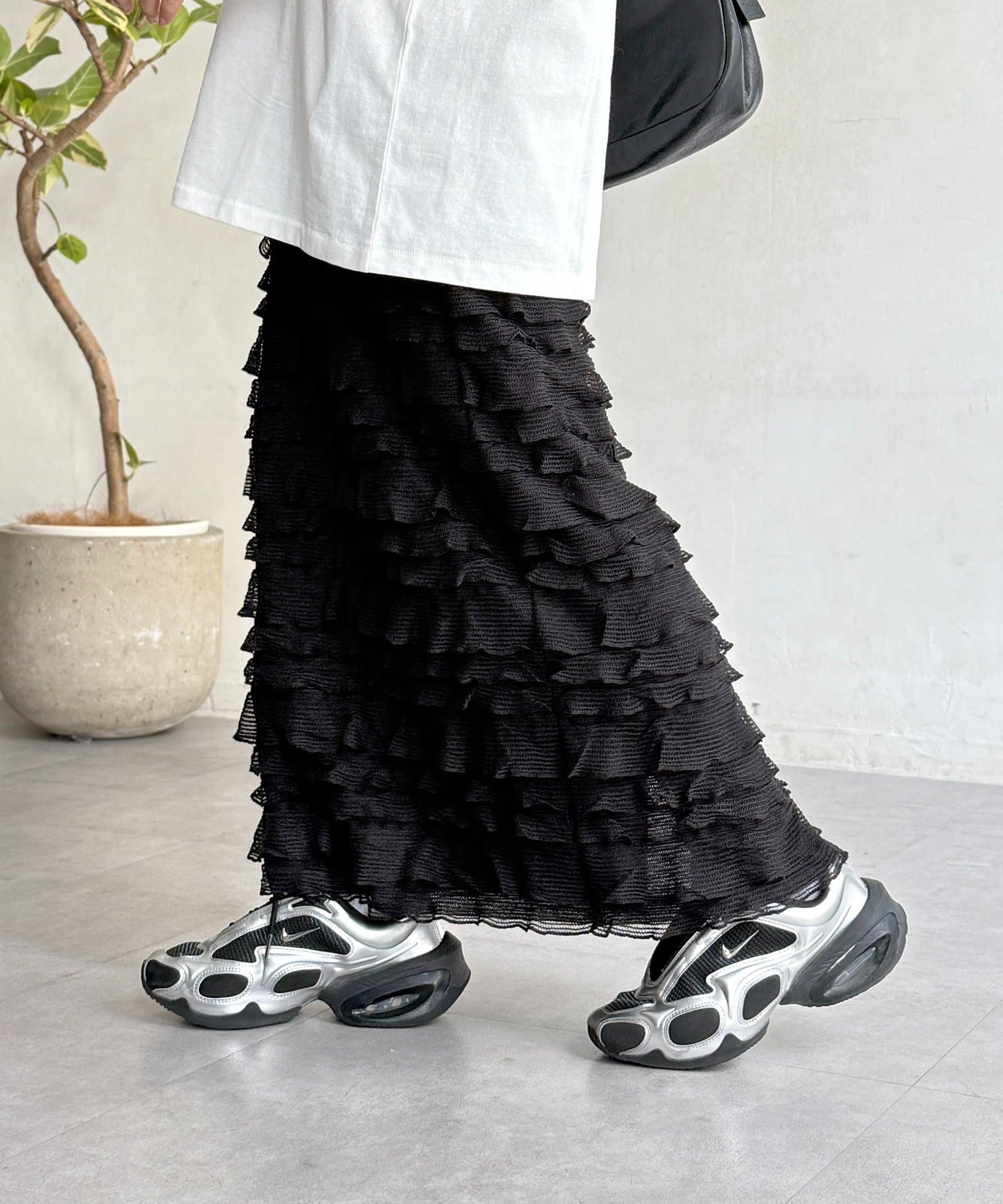主役級の存在感。大人カジュアルに着こなす段々フリルスカート