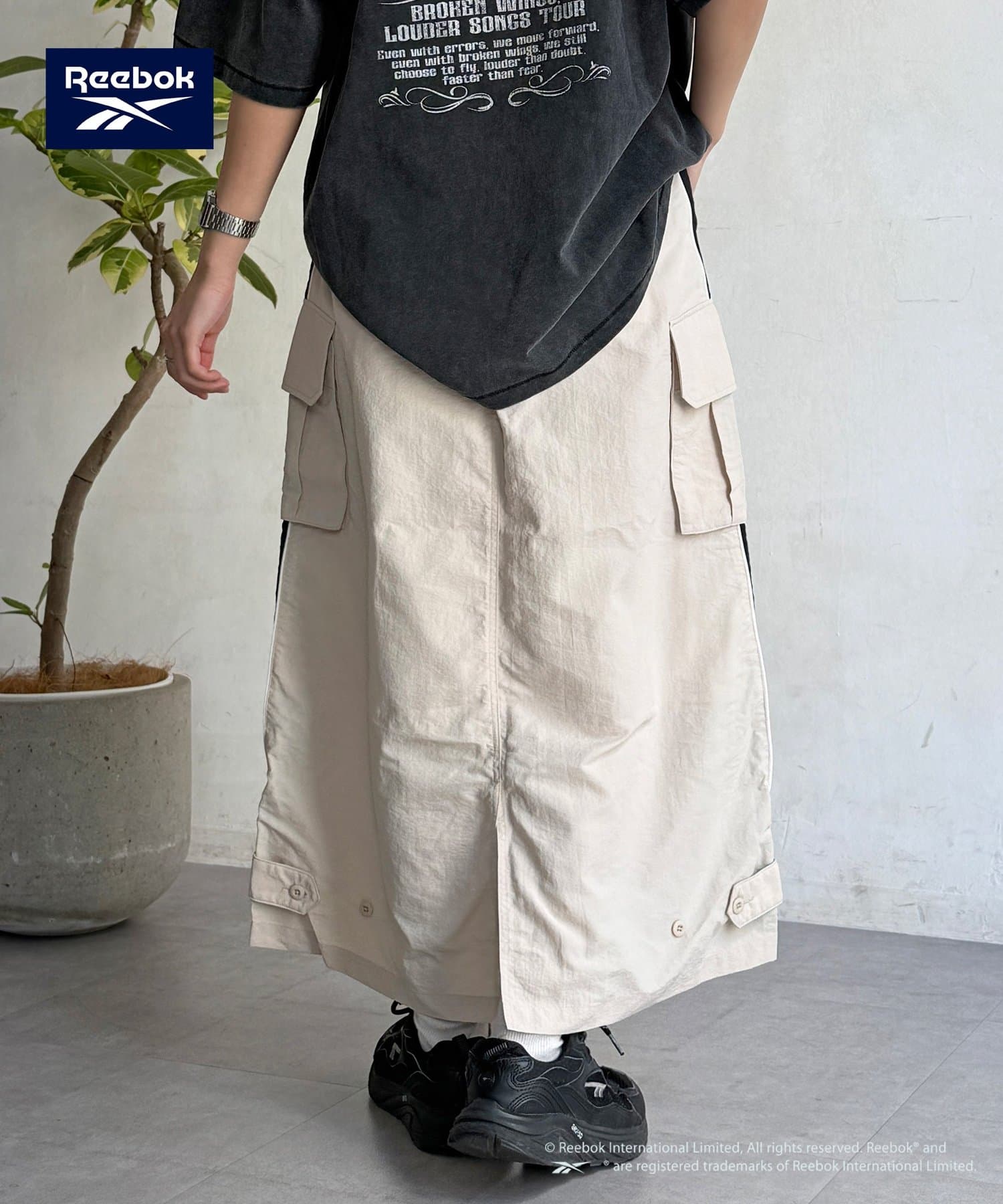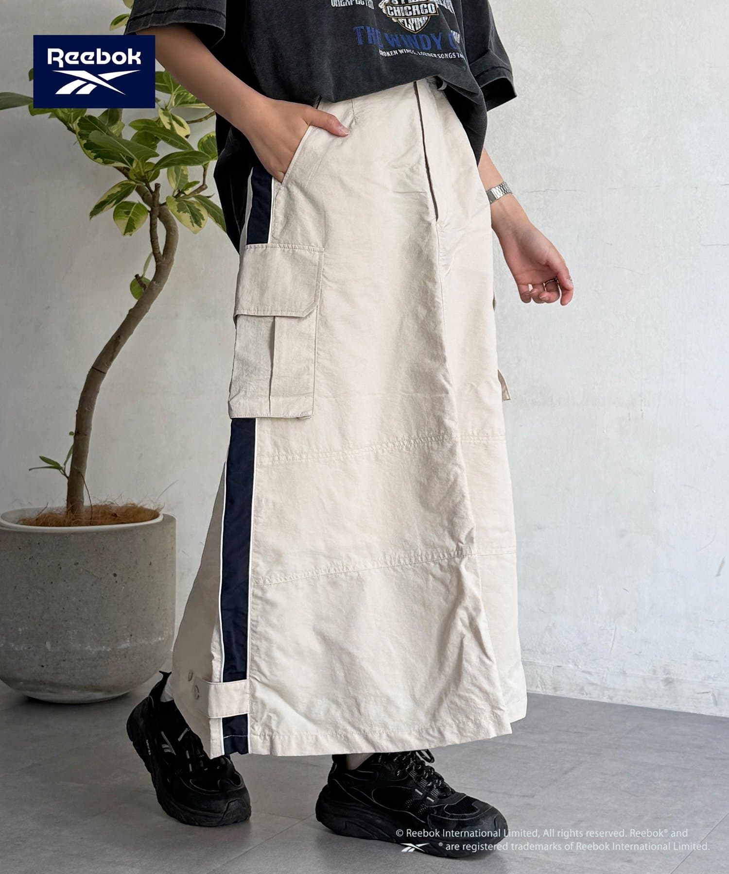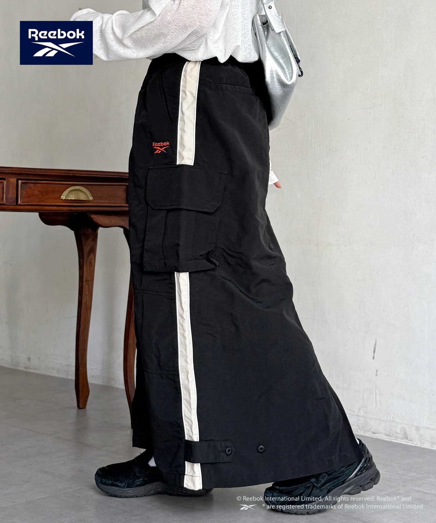 【Reebok】から、トレンド感溢れるナイロン素材のカーゴスカートが登場しました。