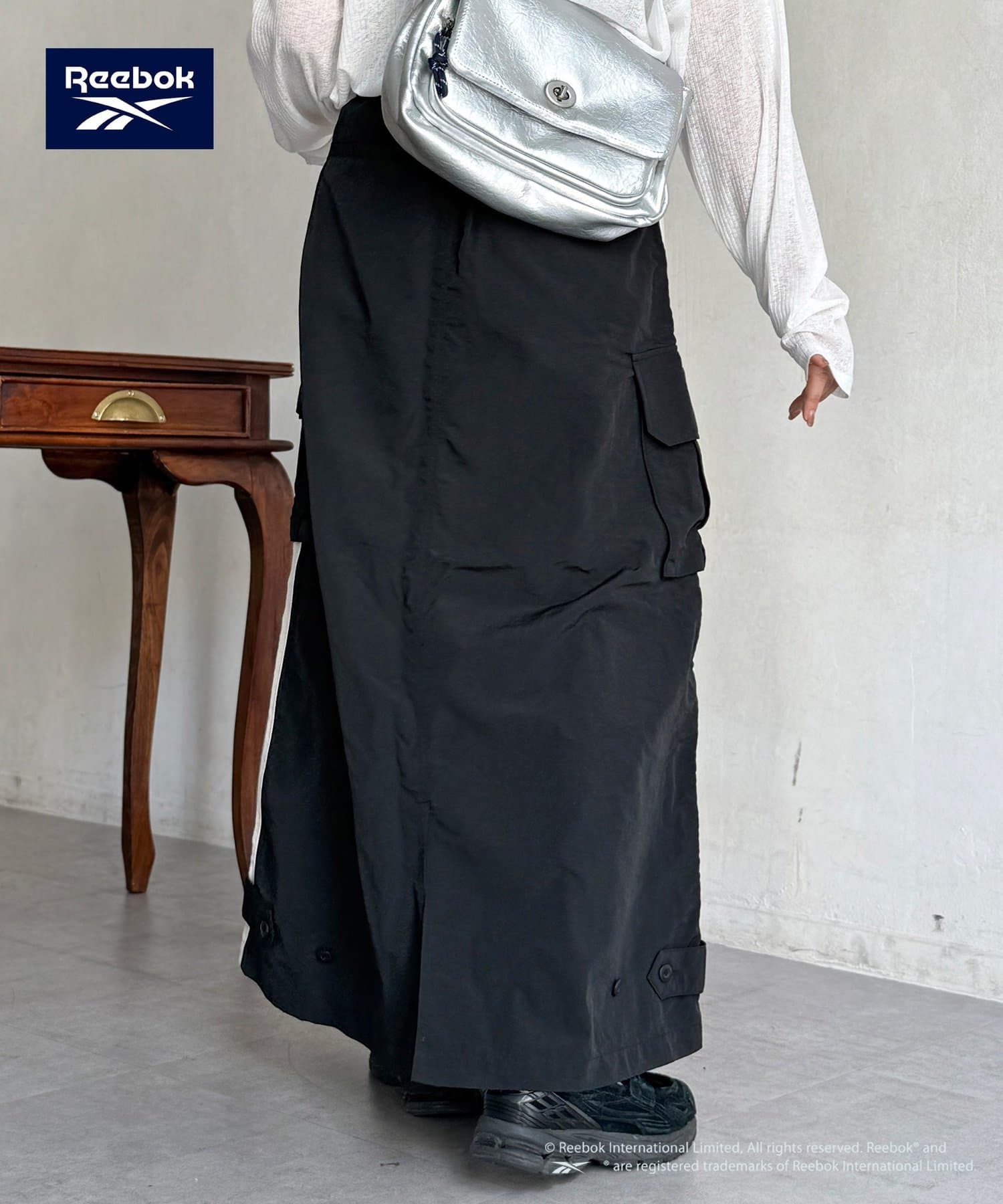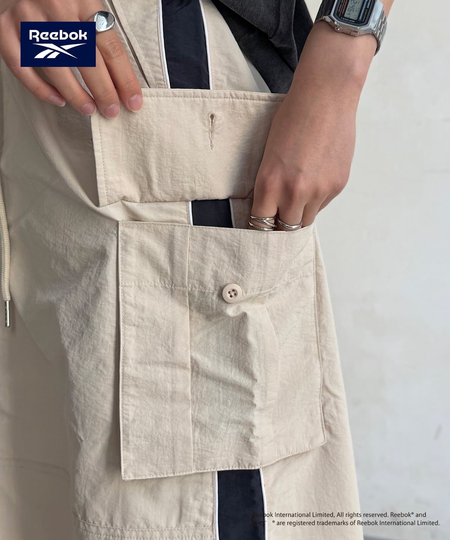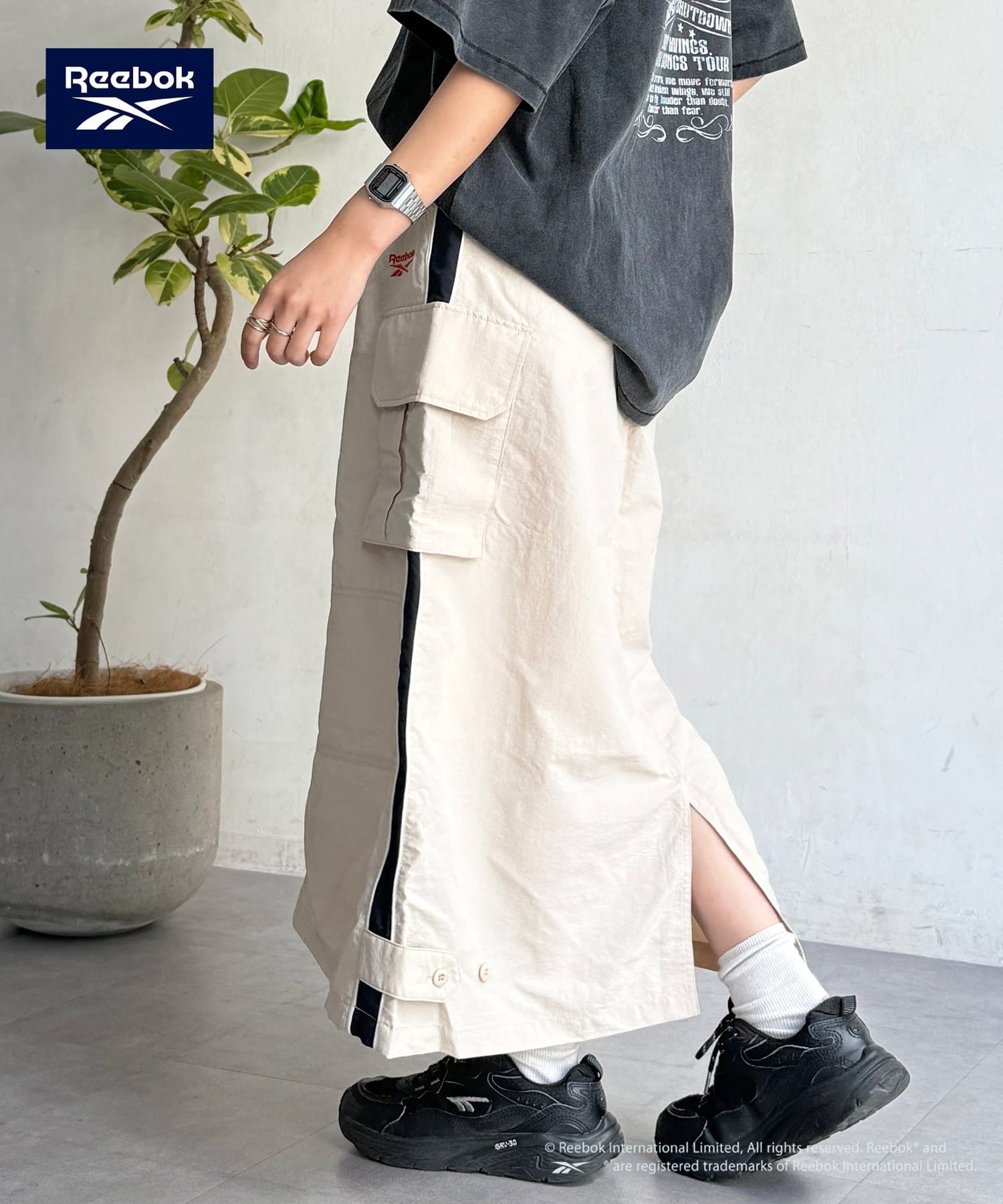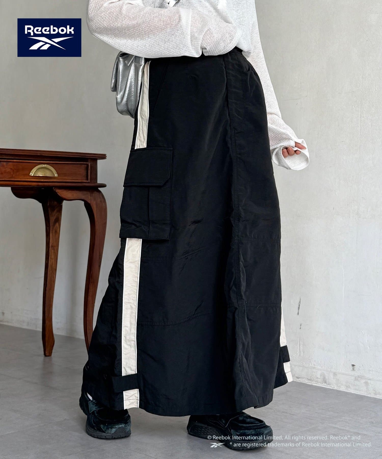 【Reebok】から、トレンド感溢れるナイロン素材のカーゴスカートが登場しました。