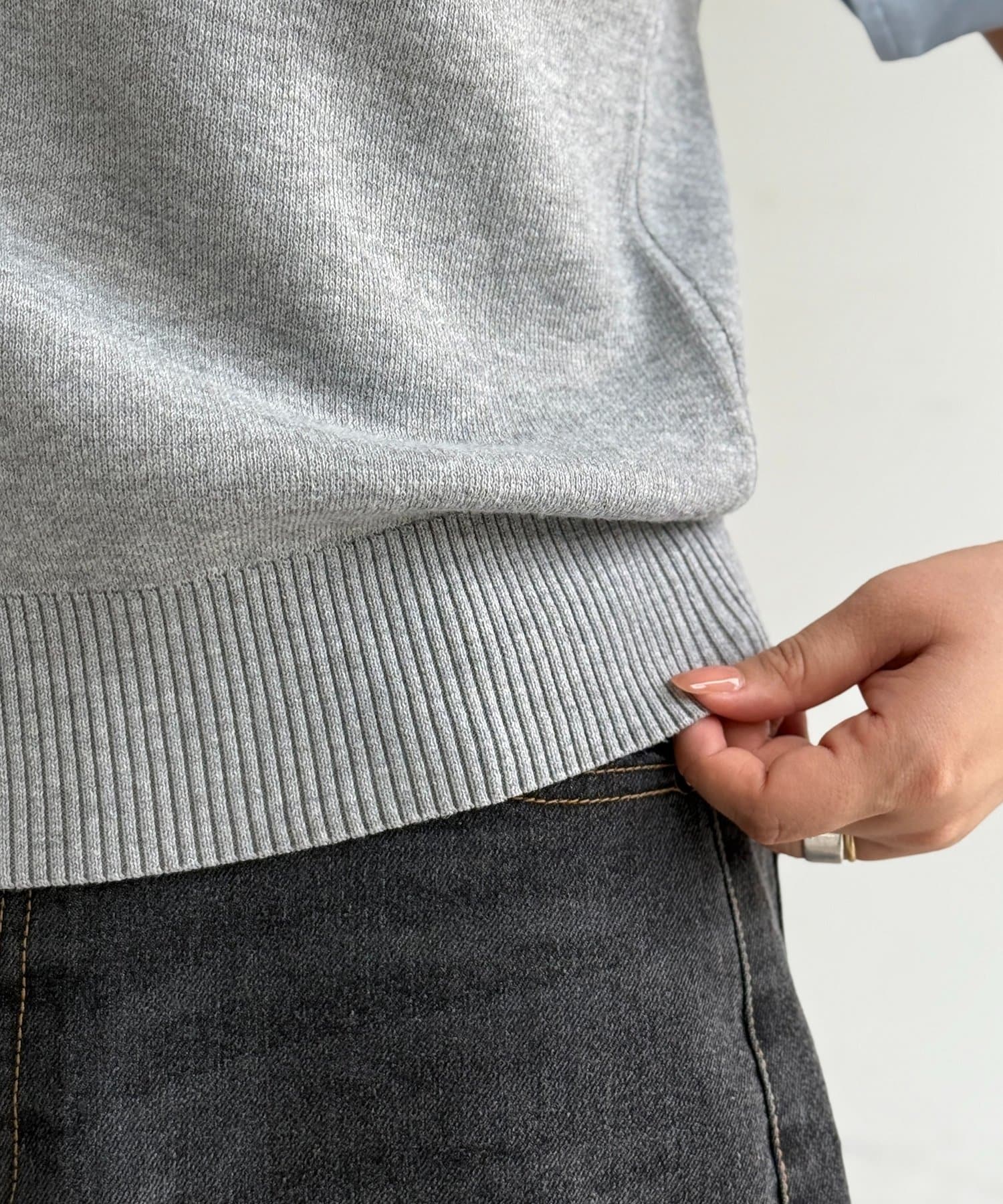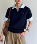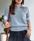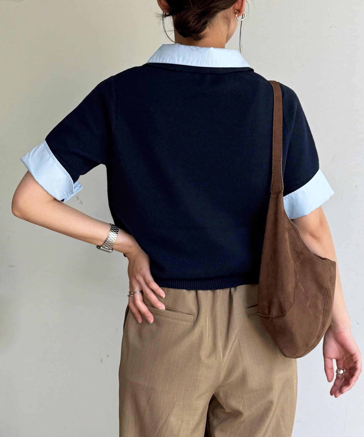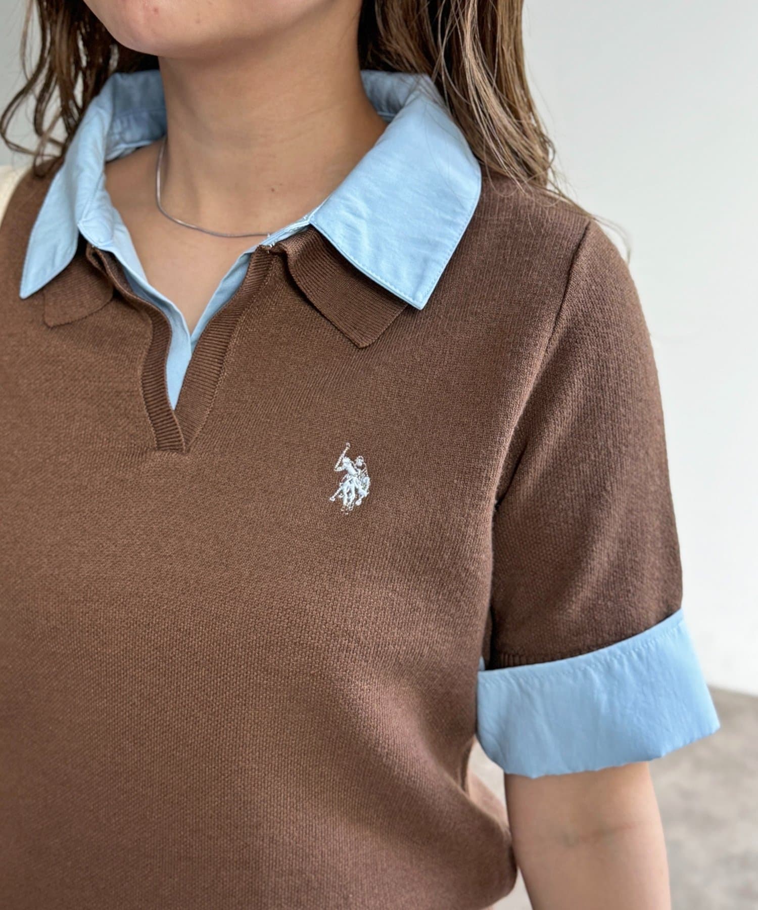 トレンド感のあるポロニットとフェイクレイヤードで、いつものコーデをアップデート◎