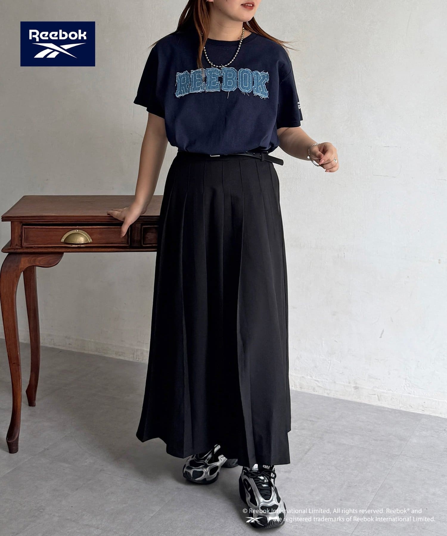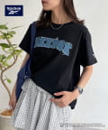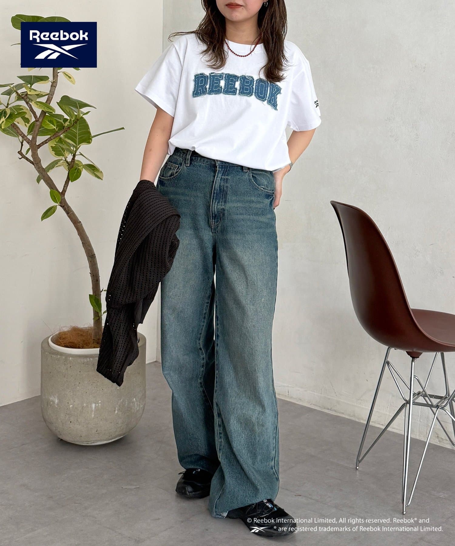 Reebokのロゴをカットオフデニムのワッペンで表現した、遊び心あふれるTシャツです◎