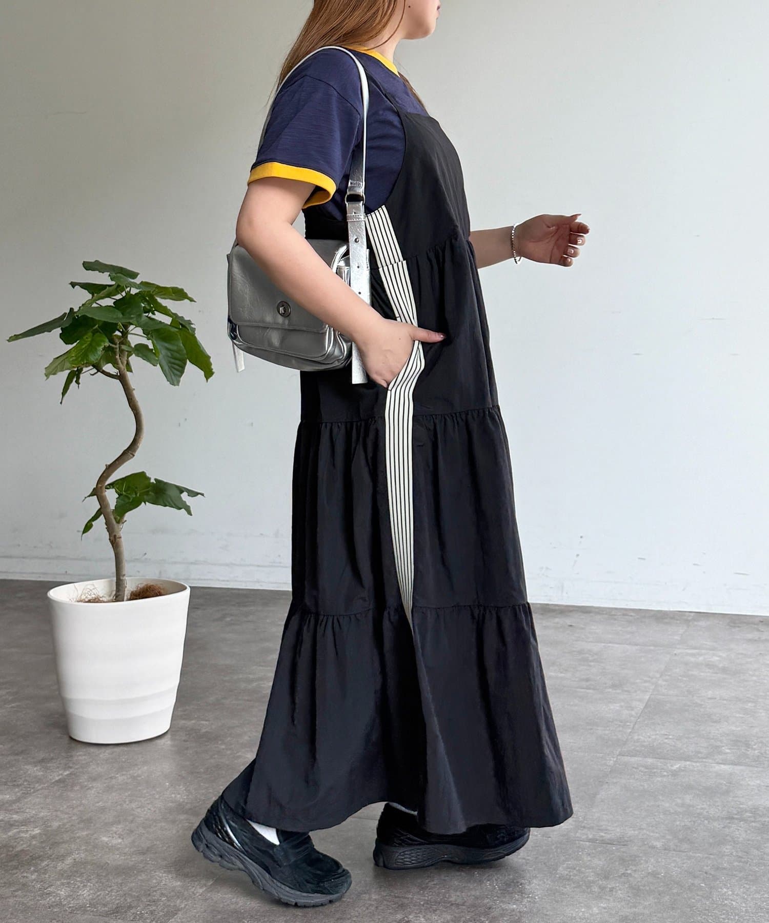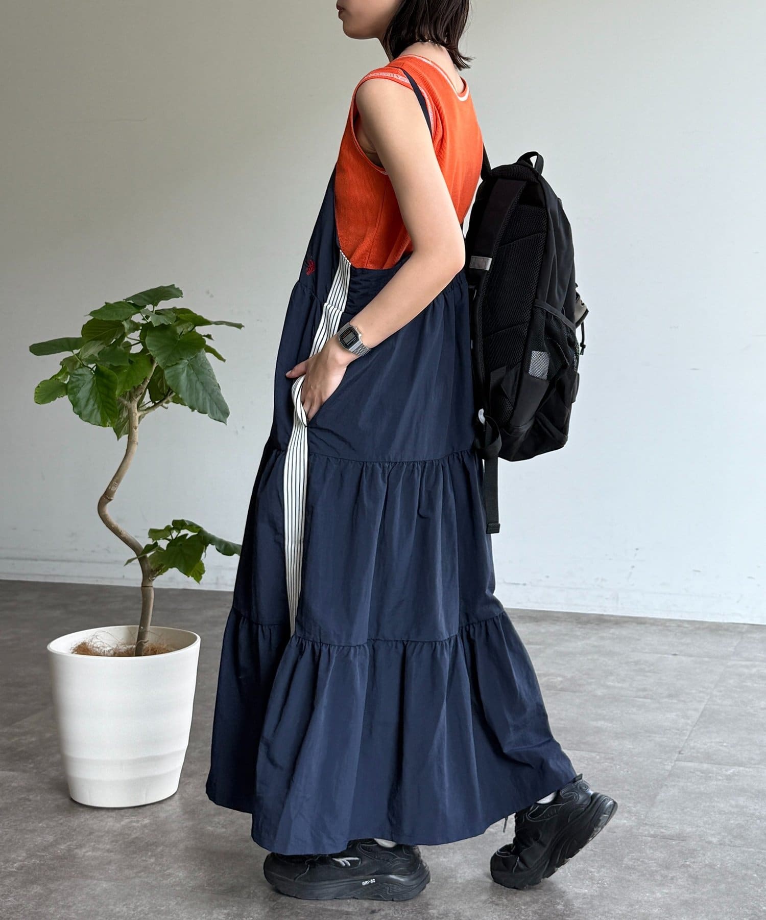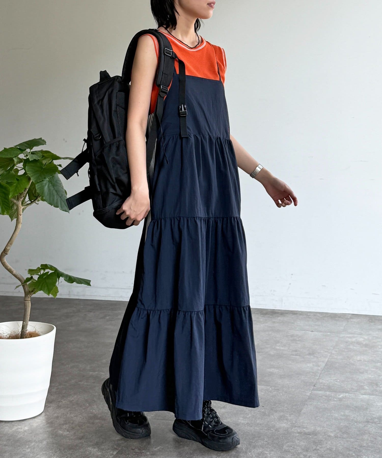 一枚で旬顔に!スポーティーMIXが叶うティアードキャミワンピ
