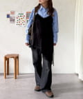 ・シャツやブラウスに重ねて、スラックス合わせで大人っぽいコーデに