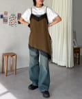アシンメトリーな裾のデザインが、動くたびに揺れて軽やかな印象を与えます。
