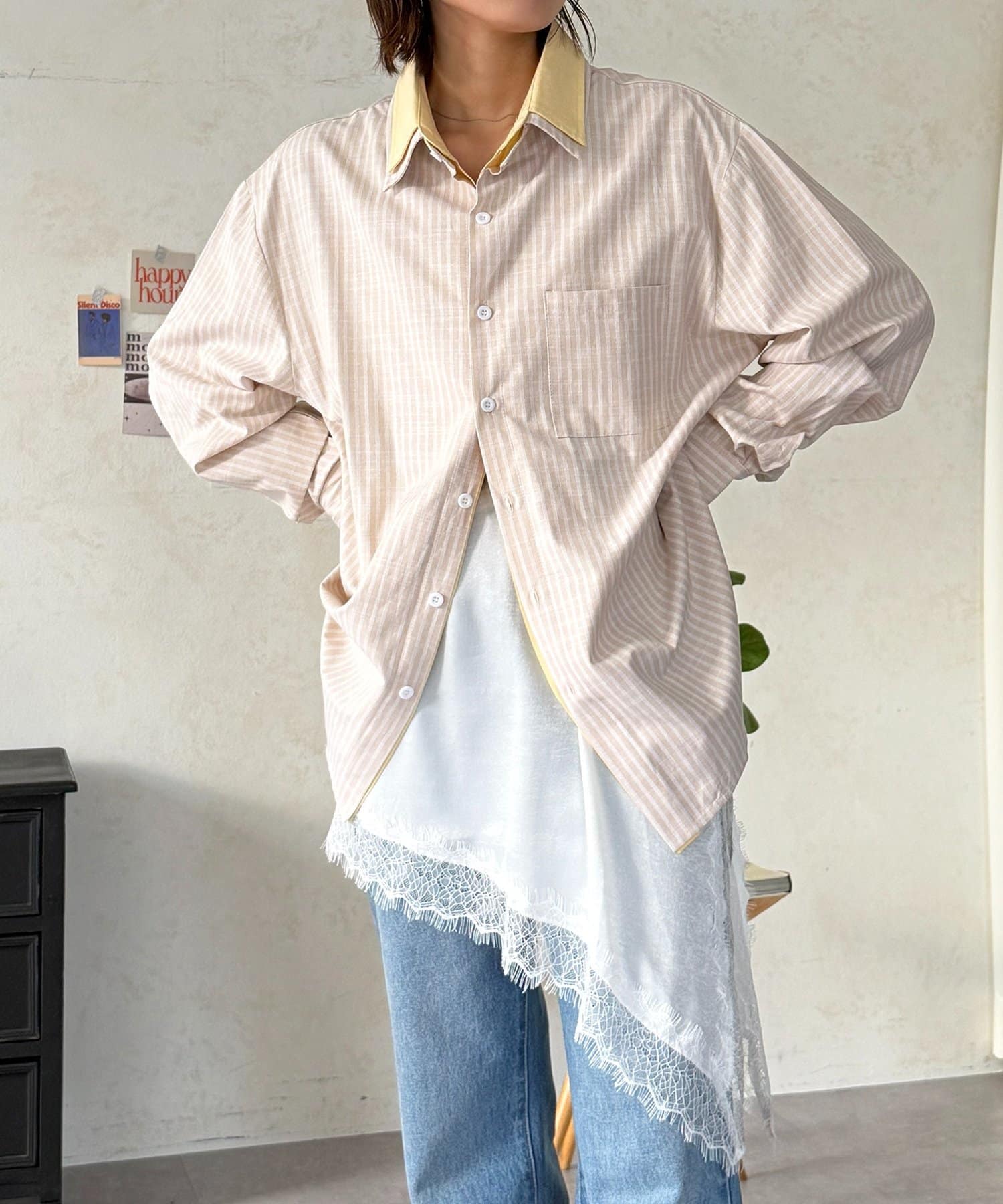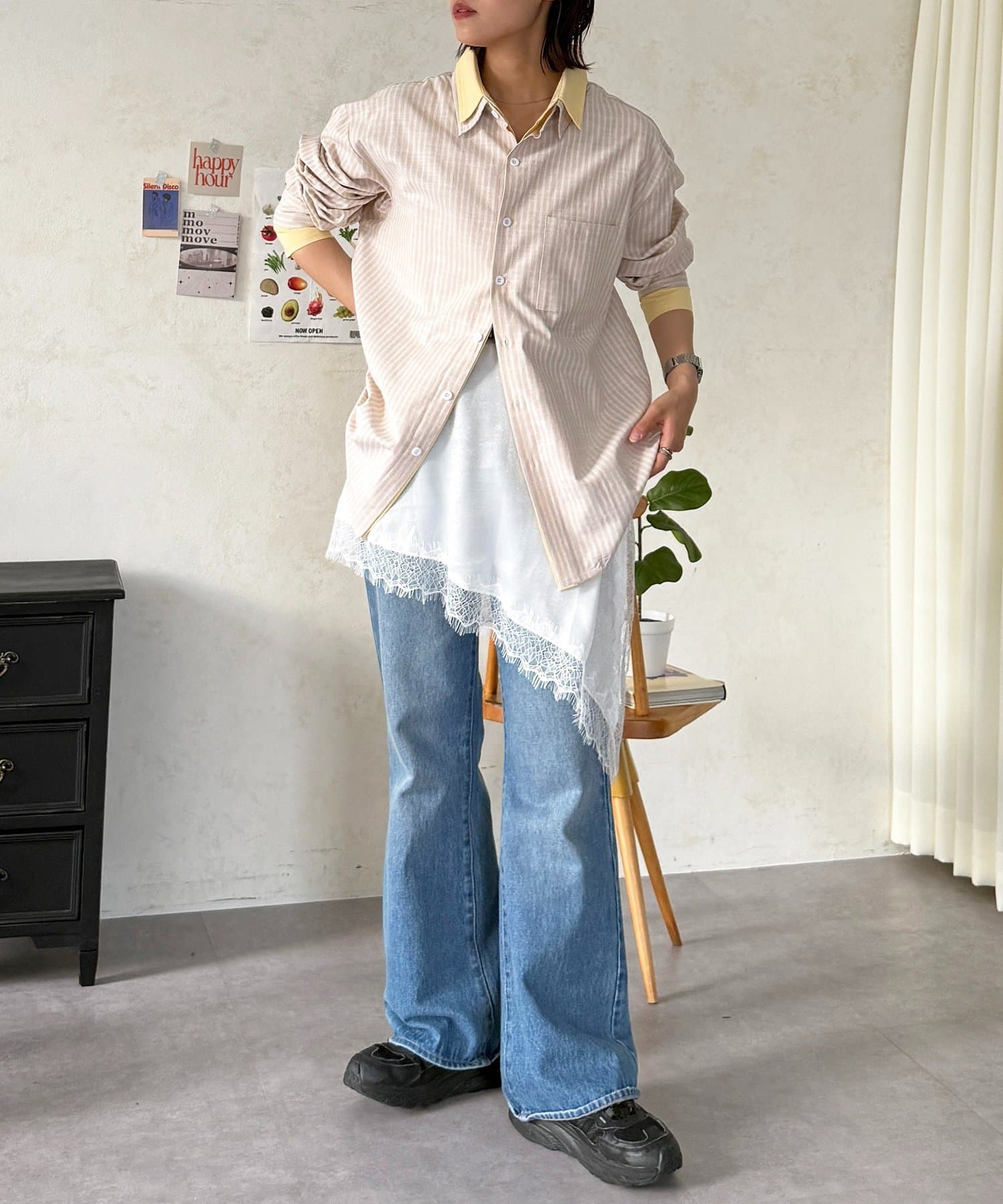・Tシャツとデニムのシンプルなスタイルの上から重ねるだけで、一気におしゃれ上級者に