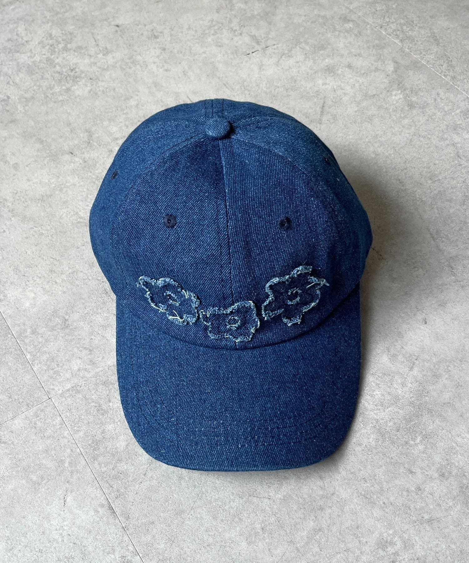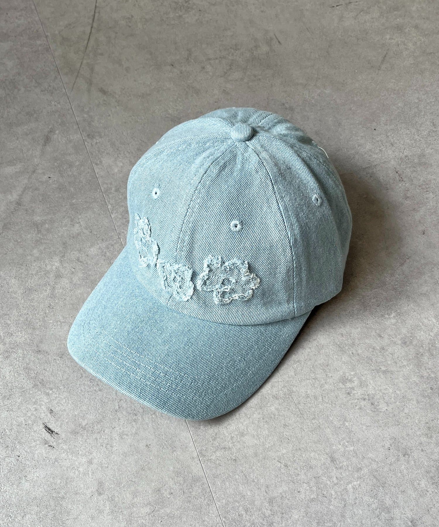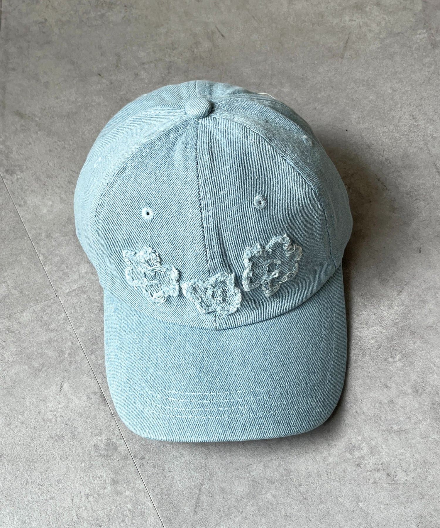 デニムフラワーアップリケキャップ
