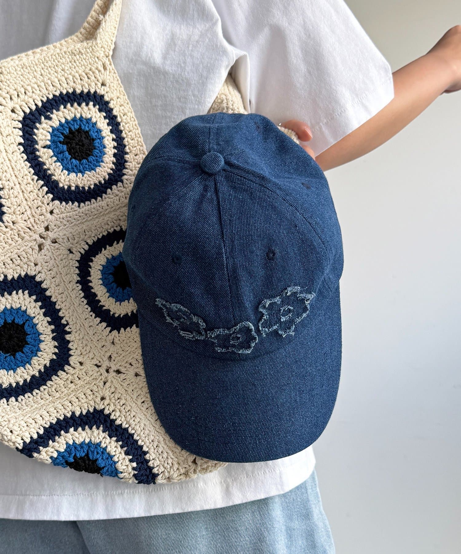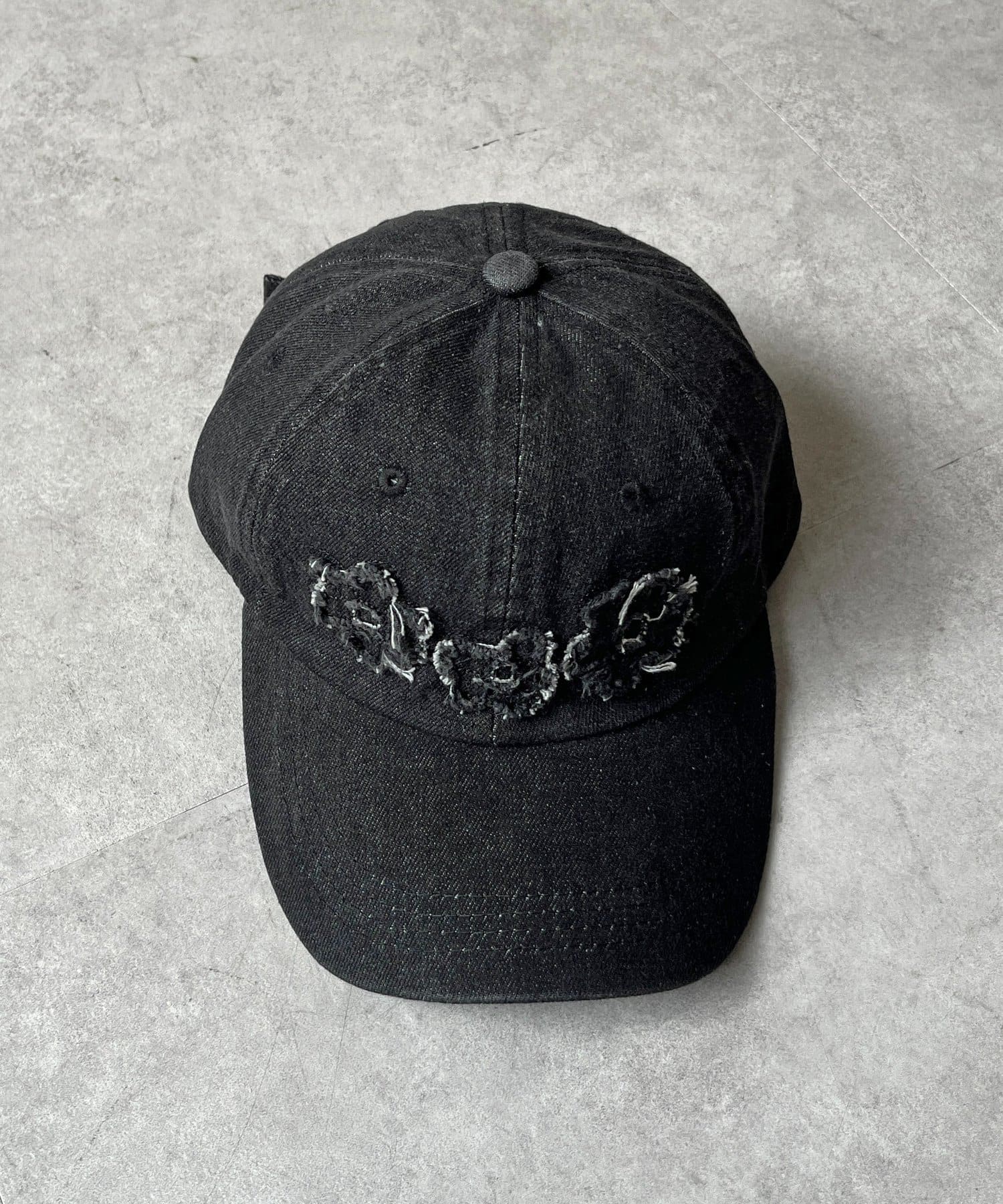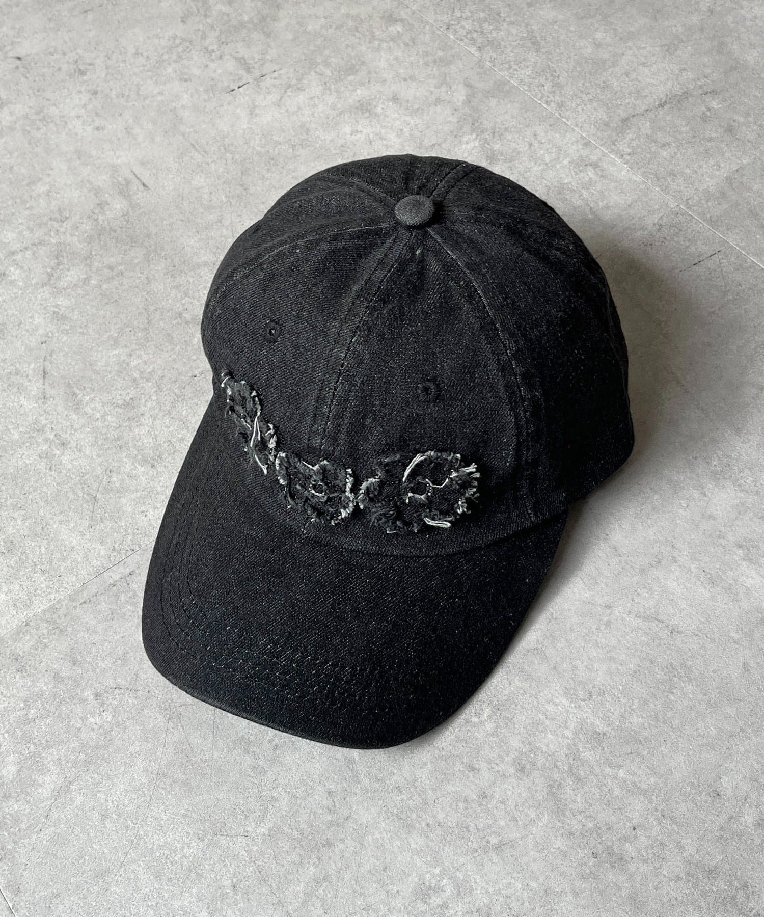 デニムフラワーアップリケキャップ