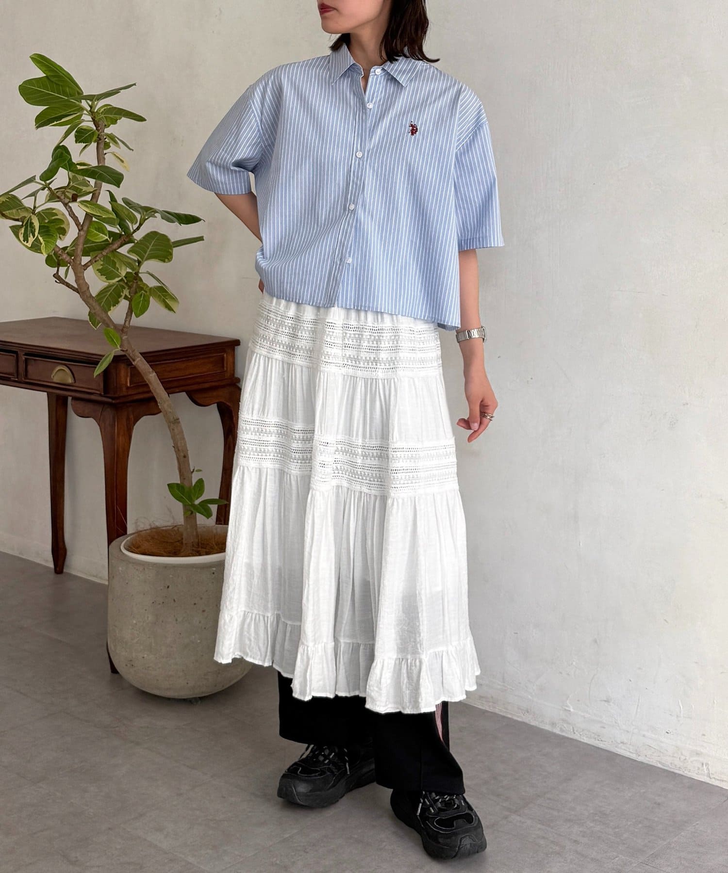 トレンドのクロップド丈は、合わせるボトムスを選ばず、着るだけでスタイルアップを叶えてくれます◎